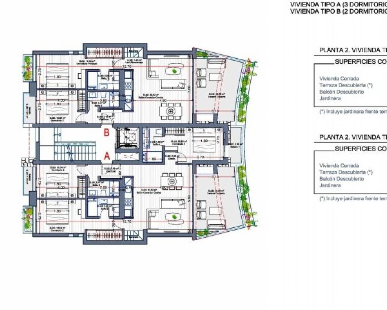 NEU GEBAUTE WOHNANLAGE IM LA MANGA CLUB RESORT Neubau einer exklusiven Wohnanlage mit 42 Apartments, ideal für den Eigengebrauch oder als Investition in einem der berühmten La Manga Club Resorts. Die modernen, lichtdurchfluteten Wohnungen bieten einen atemberaubenden Blick auf das Mar Menor, und auf den großzügigen Terrassen und dem Gemeinschaftspool können Sie die mediterrane Sonne in vollen Zügen genießen. Es handelt sich um die letzte zentrale Neubausiedlung in La Manga Club, nur 5 Gehminuten von allen Geschäften und Restaurants entfernt. Sportrechte sind inbegriffen und jedes Haus verfügt über einen Abstellraum. Einflügelige Innentüren von 210x82,5x4 cm aus weiß vorlackierter MDF-Platte mit horizontalen Schlitzen alle 50 cm. Vorgefertigter Einbauschrank mit Schiebetüren, aus MDF-Platte, weiß vorlackiert. In den Badezimmern: Fliesen aus Feinsteinzeug, Größe 60 x 30 cm, auf einem Untergrund aus laminierten Gipskarton-Innenwänden. In den Küchen Verkleidung mit Feinsteinzeugfliesen im Format 60 x 30 cm auf einem Untergrund aus laminierten Gipskartonwänden. Aerothermische Heizungsanlage, Klimaanlage und Warmwasseraufbereitung. Hocheffiziente Gebläsekonvektoren. Mechanisch kontrollierte Belüftung DOUBLE FLOW. Gepanzerter Eingangstürblock. Weiße Oberfläche. Sicherheitsklasse 3. Faltbares Metalltor für den Zugang von Fahrzeugen. Manuell zu öffnendes einseitiges Metalltor für den Zugang von Fußgängern. La Manga Club ist eines der führenden Sport- und Freizeitzentren in Europa. Umgeben von Naturparks und unberührten Stränden, bietet die privilegierte Lage an der spanischen Mittelmeerküste exklusive Ferien- und Wohnunterkünfte. Der 1972 gegründete La Manga Club ist eine herzliche, sichere und lebendige Gemeinde, die mit ihrem vielfältigen und hervorragenden Freizeitangebot seit langem Familien und Golfliebhaber anzieht. La Manga Club genießt eine ausgezeichnete Fluganbindung. Die lokalen Flughäfen von Corvera (nur 50 km entfernt) und Alicante (weniger als 100 km entfernt) bieten regelmäßige Flüge ins übrige Europa an, was die An- und Abreise vom Ferienort erleichtert.