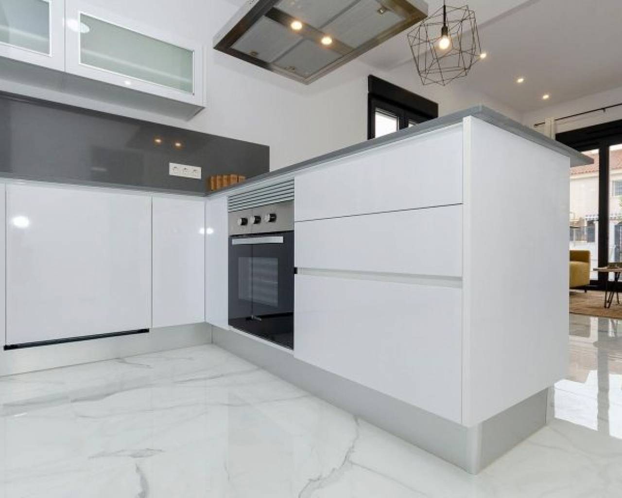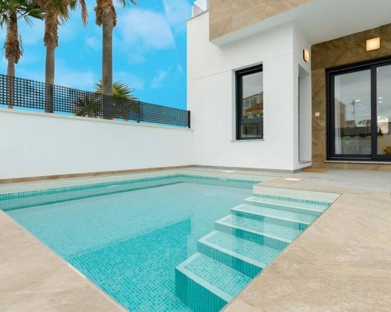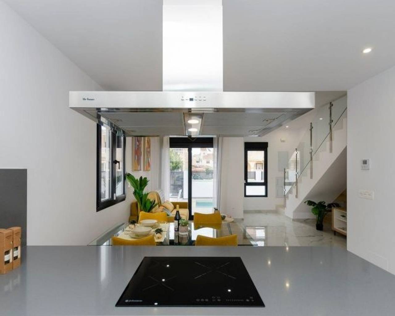 NEU GEBAUTE VILLEN IN TORREVIEJA Neubau Villen in Torreta, Torrevieja. Schöne New Build Villen bauen über 2 Etagen mit 3 Schlafzimmern, 3 Bädern, offene Küche mit Wohnbereich, Einbauschränke, Terrasse und private Solarium. Villa comming mit Möbeln und Klimaanlage, hat Garten mit privatem Pool und Parkplatz auf dem Grundstück. Torrevieja ist eine spanische Stadt in der Provinz Alicante, an der Costa Blanca. Sie ist bekannt für ihr typisch mediterranes Klima und ihre Küstenlinie. Entlang der Sandstrände gibt es Strandpromenaden mit Ferienanlagen. Das kleine Meeres- und Salzmuseum beherbergt Ausstellungen über die Fischerei- und Salzgeschichte der Stadt. Im Landesinneren befindet sich der Naturpark Lagunas de La Mata-Torrevieja mit Wanderwegen und zwei salzhaltigen Lagunen, von denen eine rosa und die andere grün ist. Der Flughafen Alicante ist 40 Minuten und der Flughafen Murcia etwa 1 Stunde entfernt.