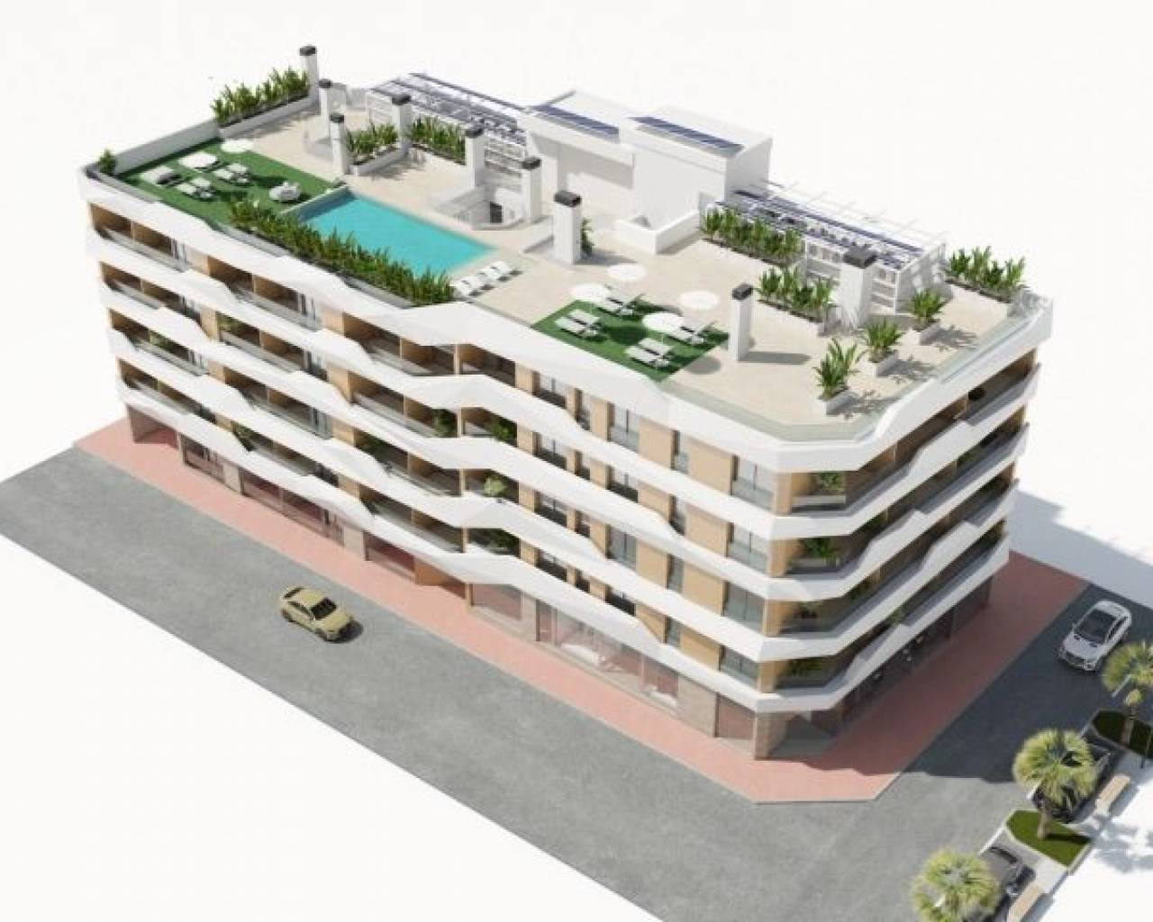 NEUBAU WOHNUNGEN IN GUARDAMAR DEL SEGURA Neubau von Wohnungen und Penthäusern in Guardamar del Segura. Dieses herausragende Gebäude ist dank seiner Nähe zum Strand und einer breiten Palette von Dienstleistungen die perfekte Wahl. Zu den Einrichtungen gehören ein Swimmingpool und eine Sonnenterrasse auf dem Dach, die den Bewohnern einen Raum zum Entspannen und Genießen bieten. Moderne Wohnungen mit 2 und 3 Schlafzimmern, 2 Bädern, einem hellen Wohn-Esszimmer mit integrierter Küche und einer gemütlichen Terrasse. Alle Wohnungen werden mit einer Klimaanlage und einer Hausautomation ausgestattet sein, die es den Bewohnern ermöglicht, verschiedene Aspekte der Wohnung zu steuern und zu automatisieren und so für Komfort und Energieeffizienz zu sorgen. Die Küche ist mit hochwertigen Geräten wie Backofen, Geschirrspüler, Kühl- und Gefrierschrank, Dunstabzugshaube und Induktionskochfeld ausgestattet und bietet somit einen funktionalen und modernen Raum zum Kochen und für gemeinsame Mahlzeiten. Darüber hinaus besteht die Möglichkeit, einen Parkplatz und einen Abstellraum im selben Gebäude zu erwerben, was den Bewohnern mehr Komfort und Stauraum bietet. Die Wohnanlage befindet sich in einer privilegierten Lage, in der Nähe des Strandes und umgeben von einer Vielzahl von Dienstleistungen und Annehmlichkeiten wie Restaurants, Geschäften, Supermärkten und Freizeiteinrichtungen. Guardamar del Segura, bekannt für seine schönen, feinen Sandstrände und seine natürliche Umgebung, bietet einen ruhigen und entspannten Lebensstil, ohne auf die notwendigen Einrichtungen in unmittelbarer Nähe verzichten zu müssen.