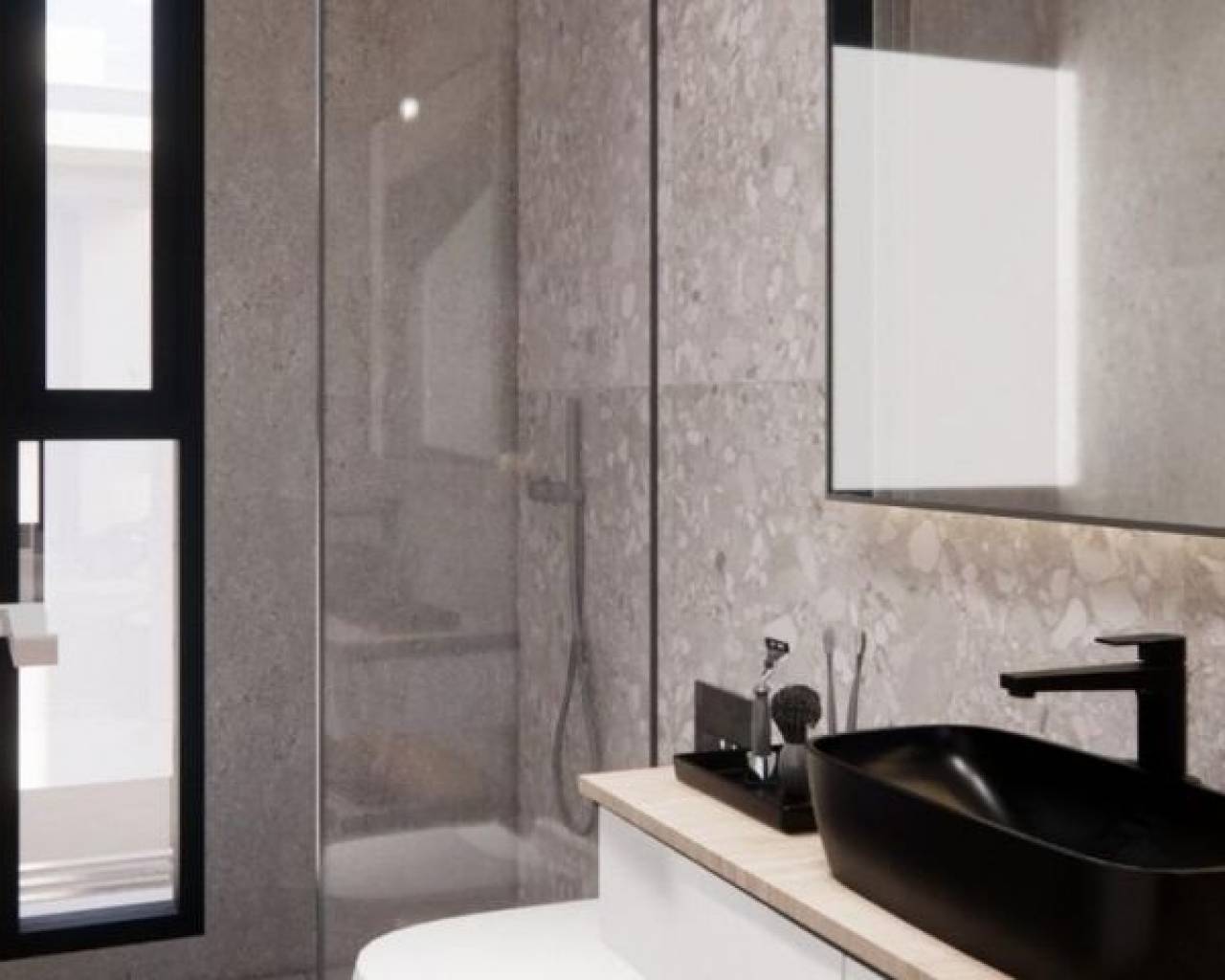 NEUBAU-VILLEN IN PRIVATER GARTENANLAGE IN DER PROVINZ MURCIA Neubauvillen in privater, geschützter Anlage in der Region Murcia, umgeben von hervorragenden Golfplätzen und nur 10 Minuten von den Sandstränden des Mar Menor entfernt. Positioniert auf einer privilegierten Lage, zweite Zeile der Lagune mit weißem Sand und türkisfarbenem Wasser. Nur wenige Schritte vom Haupteingang entfernt, präsentieren wir diese herrlichen Villen mit 3 Schlafzimmern. Diese Luxusvillen bieten eine harmonische Mischung aus moderner Eleganz und Raffinesse und sind nach den höchsten Standards ausgestattet. Der Hauptwohnbereich geht in den Garten und den Poolbereich über und schafft eine perfekte Atmosphäre für Ruhe und Schönheit. Der offene Grundriss verbindet das Wohnzimmer, den Essbereich mit der modernen Küche und schafft so einen nahtlosen Übergang, um Gäste zu unterhalten oder einen schönen ruhigen Abend zu genießen. Die Küche ist voll ausgestattet mit den neuesten Geräten und Materialien. Das dritte Schlafzimmer im Erdgeschoss kann als Arbeitszimmer oder als privater Arbeitsbereich genutzt werden, um eine perfekte Work-Life-Balance zu schaffen. Die große Sonnenterrasse bietet eine Vielzahl von Möglichkeiten zum Entspannen, Essen im Freien oder einfach nur zum Sonnenbaden und Genießen der großartigen Aussicht auf die Lagune und darüber hinaus. Darüber hinaus bieten diese herrlichen Villen ein spektakuläres Untergeschoss von über 100 m2 mit einem englischen Innenhof, der viel Grün und natürliches Licht in diesen Mehrzweckraum bringt. Mehrzweckbereich, der als Fitnessraum, Kinoraum oder zur Unterhaltung genutzt werden kann. Das Haus befindet sich in einer privaten, bewachten Anlage mit einem Haupteingang und 24 Stunden Sicherheitsdienst. Die Anlage ist um eine beeindruckende 126.000 m2 große Grünfläche herum angelegt. Sie umfasst Wander- und Radwege, Sportanlagen, Paddel- und Tennisplätze, einen Minigolfplatz, Gärten, Hundeparks, Freizeitbereiche und ein Clubhaus.... Ebenfalls im zentralen Bereich befindet sich das Juwel des Resorts, ein kristallklarer künstlicher See mit einer Wasserfläche von fast 17.000 m2, umgeben von weißen Sandstränden und Palmen, der ein Stück Karibik in die Region Murcia bringt. Es gibt 2 Inseln im See, eine davon mit einer eigenen Bar, außerdem gibt es „Strand-Chiringuitos“ rund um den See. Die Anlage ist strategisch günstig gelegen, weniger als 4 km vom Strand und der Stadt Los Alcázares entfernt, wo man verschiedene Wassersportarten ausüben kann, umgeben von mehreren Golfplätzen und der Stadt Cartagena, die weniger als 15 Autominuten und 22 km vom Flughafen Murcia entfernt ist, so dass ein breites kulturelles, gastronomisches und sportliches Angebot in Reichweite ist.