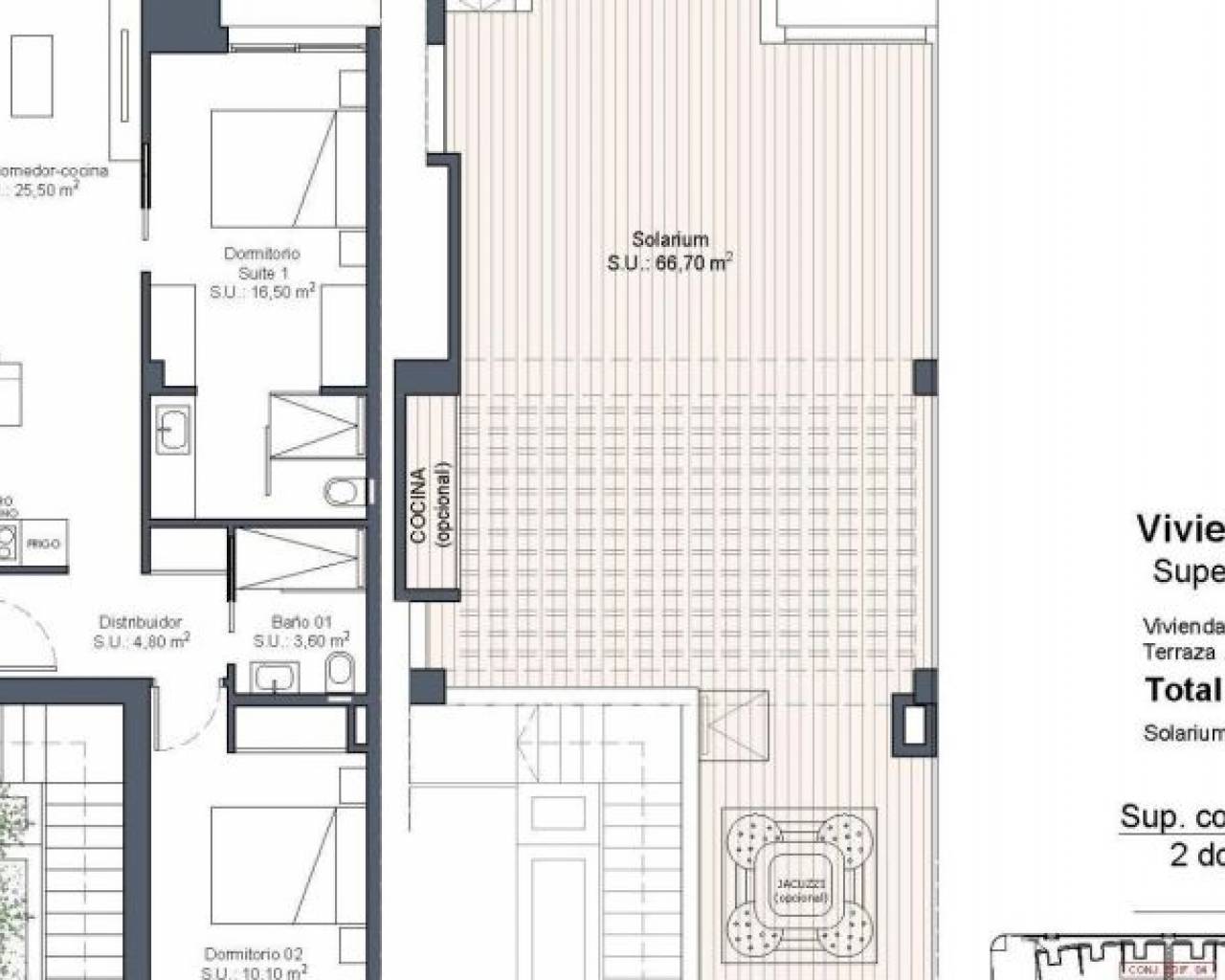 2 % Rabatt oder ein gleichwertiges Geschenk auf diese Aktion, gültig nur bei Lisa Frain Real Estate. Kaufen Sie Ihr Neubauhaus bei uns und sparen Sie! Exklusive Neubauvillen in Lo Marabú, Ciudad Quesada: modernes Wohnen im Herzen der Costa Blanca. Willkommen in Lo Marabú , einem exklusiven Wohngebiet im begehrten Ciudad Quesada . Hier finden Sie 80 luxuriöse Neubauhäuser, die als Off-Plan-Häuser verfügbar sind. Diese modernen Villen mit 2 und 3 Schlafzimmern vereinen topaktuelles Design mit höchster Verarbeitungsqualität und gewährleisten maximalen Komfort und Energieeffizienz. Diese ideal gelegenen Apartments im Bungalowstil bieten den idealen Lebensstil mit geräumigen Terrassen und einer harmonischen Balance aus modernen Annehmlichkeiten und natürlicher Schönheit. Modernes Design und durchdachte Funktionen Jedes Apartment wurde sorgfältig gestaltet und bietet moderne Räume und erstklassige Annehmlichkeiten. Diese Dachgeschosswohnung verfügt über zwei Schlafzimmer und zwei Badezimmer. Es verfügt über eine große Terrasse neben dem Wohnzimmer und ein großes privates Solarium auf dem Dach mit Vorinstallation für einen Whirlpool und eine Außendusche . Der Luxus Ihres Apartments erstreckt sich auch auf die Gemeinschaftsbereiche, wo Sie den wunderschönen Gemeinschaftspool inmitten üppiger Gärten genießen können. High-End-Funktionen: Große Aluminium-Schiebefenster mit thermischer Trennung für mehr Energieeffizienz. Motorisierte Jalousien für mehr Komfort und Privatsphäre. Climalit-Doppelverglasung für hervorragende Wärme- und Schalldämmung. Gepanzerte Zugangstüren mit Hochsicherheitsschlössern für zusätzliche Sicherheit. Voll ausgestattete Küchen mit hochwertigen Geräten . Elegante Badezimmer mit modernen Möbeln, Spiegeln und Duschwänden. 150-l-Aerothermie-Warmwassersystem zur Förderung der Energieeffizienz. Komplette Klimaanlage (warm/kalt) für ganzjährigen Komfort. Vorinstallierte Beleuchtung in allen Räumen. Zu jedem Haus gehört ein Parkplatz . Dank der Doppelfassadenkonstruktion profitieren diese Häuser von einer natürlichen Querlüftung , die den Innenraum in den wärmeren Monaten kühl hält und den Bedarf an übermäßiger Klimatisierung reduziert. Erstklassige Lage in Ciudad Quesada Lo Marabú liegt ideal im beliebten Viertel Ciudad Quesada . Diese erstklassige Lage bietet das Beste aus beiden Welten: eine Oase der Ruhe mit Zugang zu erstklassigen Annehmlichkeiten. Die Strände von Guardamar del Segura und Torrevieja sind nur 10 km entfernt (15 Autominuten). Ideal zum Sonnenbaden, für Wassersport und zum Essen am Meer. Nur 38 km (35 Minuten mit dem Auto) vom Flughafen Alicante-Elche (ALC) und 65 km (50 Minuten) vom Flughafen Murcia-Corvera (RMU) entfernt . Weniger als 5 km entfernt liegen renommierte Golfplätze , ideal für Golfliebhaber. Nur wenige Minuten von Einkaufszentren, Restaurants und Unterhaltungsmöglichkeiten entfernt. Hervorragende Anbindung an die Autobahnen AP-7 und N-332, die Sie mit der gesamten Region Costa Blanca verbinden. Eine ideale Investition für einen mediterranen Lebensstil Dank ihrer außergewöhnlichen Lage, des modernen Designs und des unvergleichlichen Komforts eignen sich diese Häuser in Lo Marabú ideal zum ganzjährigen Wohnen, als Ferienhaus oder als langfristige Investition. Diese Anlage bietet Ihnen die Möglichkeit, den mediterranen Lebensstil in vollen Zügen zu erleben, umgeben von natürlicher Schönheit und in der Nähe der wichtigsten Sehenswürdigkeiten. Verpassen Sie nicht diese exklusive Gelegenheit. Kontaktieren Sie uns noch heute, um weitere Informationen zu erhalten oder einen Besichtigungstermin für Ihr Traumhaus in Ciudad Quesada zu vereinbaren.