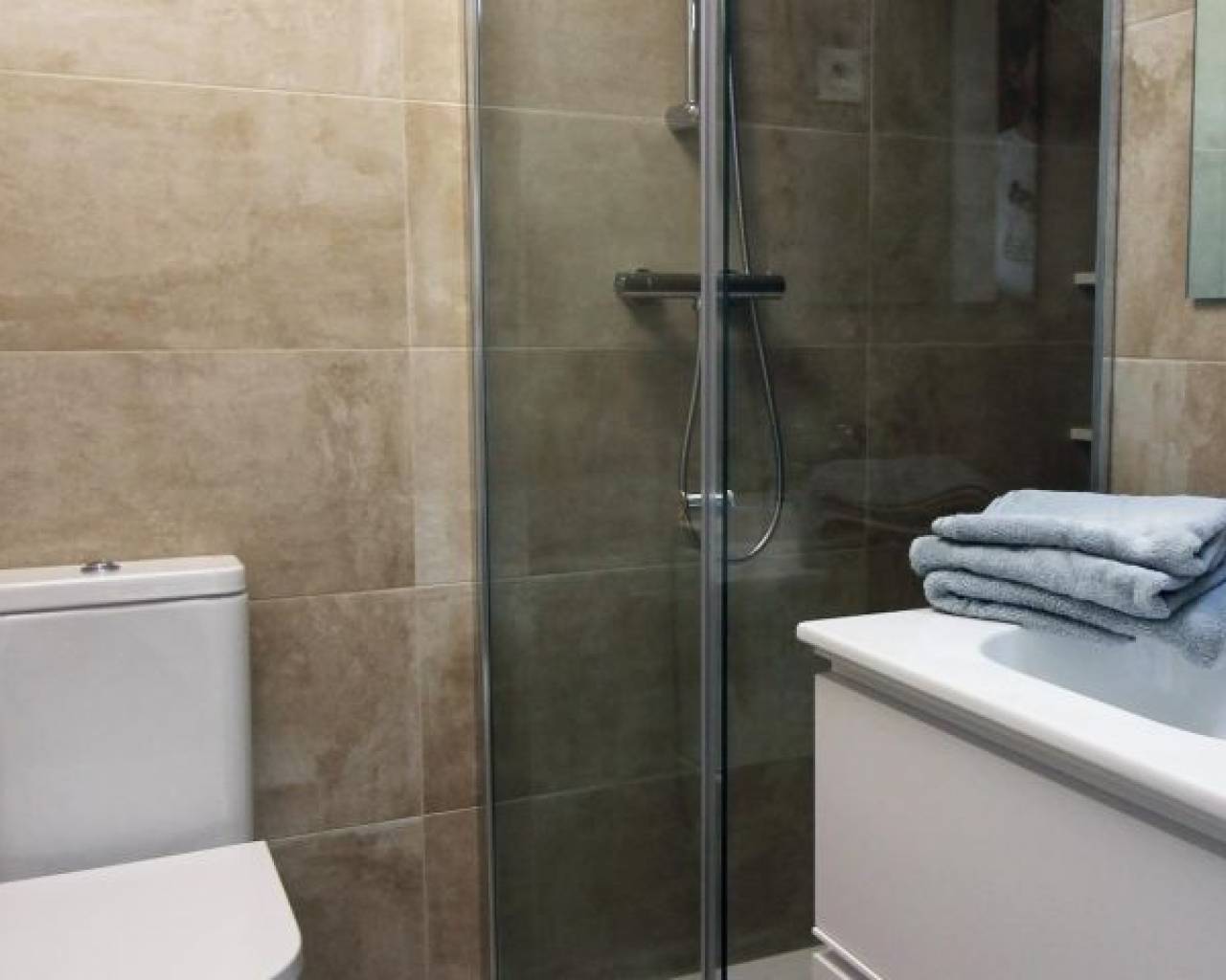 Moderne Reihenhäuser und Doppelhaushälften in Pilar de la Horadada Entdecken Sie diese exklusive Wohnanlage mit nur sechs modernen Doppelhaushälften und Reihenhäusern in der ruhigen Stadt Pilar de la Horadada an der Südspitze der Costa Blanca. Diese Neubauten mit moderner Architektur und hochwertiger Ausstattung bieten eine perfekte Mischung aus Komfort und Stil in einer begehrten Lage. Geräumige Grundrisse mit drei und vier Schlafzimmern Jedes Haus verfügt über großzügige Wohnbereiche mit einer offenen Küche und einem Wohnzimmer, die so gestaltet sind, dass sie viel Tageslicht hereinlassen. Wählen Sie zwischen Grundrissen mit drei oder vier Schlafzimmern und je nach Modell zwei oder drei Badezimmern. Die Grundrisse im Erdgeschoss umfassen zwei Terrassen: eine vordere Terrasse mit Platz für einen privaten Parkplatz und eine hintere Terrasse mit direktem Zugang zum Gemeinschaftspool. Im ersten Stock befindet sich eine zusätzliche Terrasse neben den Schlafzimmern, während im Obergeschoss eine Dachterrasse mit Panoramablick und einem idealen Platz für Unterhaltung im Freien bietet. Hochwertige Innenausstattung Die Innenräume sind mit hochwertigen Materialien ausgestattet, darunter glatte Putzwände, Porzellanfliesenböden und Einbauschränke in jedem Schlafzimmer. Die offenen Küchen sind komplett mit modernen Einbauschränken ausgestattet. Zu den weiteren Annehmlichkeiten gehören die Vorinstallation für eine Klimaanlage und aerothermische Systeme für energieeffiziente Warmwasserbereitung. Gemeinschaftseinrichtungen und Privatparkplatz Die Bewohner genießen einen gepflegten Gemeinschaftspool, der sich perfekt zum Entspannen an sonnigen Tagen eignet. Jedes Haus verfügt über einen privaten Parkplatz auf dem Grundstück, der Sicherheit und Komfort gewährleistet. Pilar de la Horadada: Traditioneller Charme an der Costa Blanca Pilar de la Horadada ist eine charmante spanische Stadt, die für ihre einladende Atmosphäre und ihre traditionelle Architektur bekannt ist. Das Stadtzentrum ist nur einen kurzen Spaziergang entfernt, wo Sie Supermärkte, lokale Geschäfte, Restaurants, Bars und malerische Plätze finden. Genießen Sie einen gemütlichen Spaziergang entlang der Hauptstraße, probieren Sie authentische mediterrane Küche oder erkunden Sie Kunsthandwerksboutiquen. Nähe zu Stränden und Flughäfen Erleben Sie das Beste des Lebens an der Küste mit den feinen Sandstränden von Torre de la Horadada und Mil Palmeras, die nur 5 Autominuten (ca. 2 km) von Ihrem neuen Zuhause entfernt sind. Diese Strände bieten klares Wasser, goldenen Sand und eine lebhafte Promenade mit Cafés und Restaurants mit Meerblick. Für eine gute Anbindung ist der Flughafen Corvera (Murcia) ca. 40 km (40 Minuten mit dem Auto) und der Flughafen Alicante ca. 55 km (55 Minuten mit dem Auto) entfernt. Darüber hinaus befindet sich das Einkaufszentrum La Zenia Boulevard in 15 km (15 Minuten) Entfernung von der Wohnanlage und bietet eine große Auswahl an Geschäften, Restaurants und Unterhaltungsmöglichkeiten. Sichern Sie sich noch heute Ihr neues Zuhause Verpassen Sie nicht diese Gelegenheit, eine brandneue Doppelhaushälfte oder ein Reihenhaus in Pilar de la Horadada zu erwerben. Mit ihrem modernen Design, der hochwertigen Ausstattung und der erstklassigen Lage in der Nähe von Stränden, Geschäften und Dienstleistungen eignen sich diese Immobilien ideal als Dauerwohnsitz, Ferienhaus oder Kapitalanlage. Kontaktieren Sie uns jetzt für weitere Informationen und um einen Besichtigungstermin zu vereinbaren.