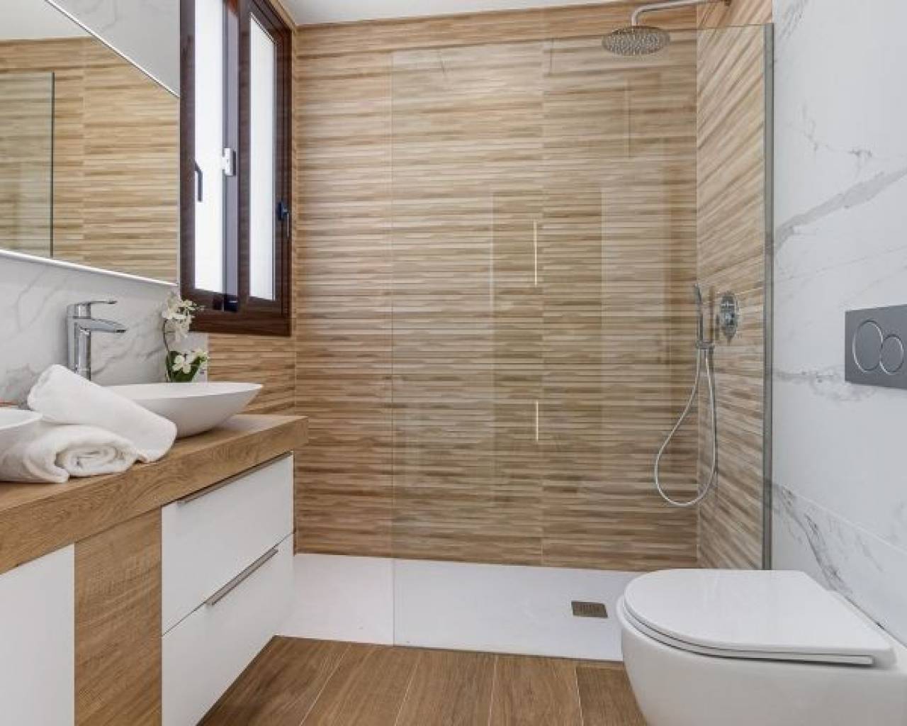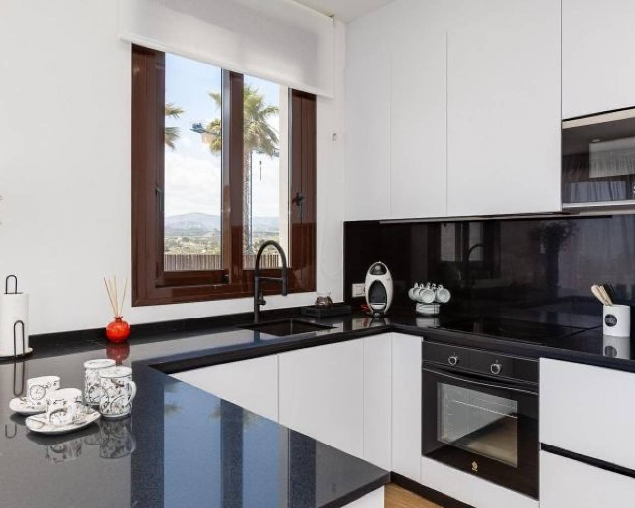 NEU GEBAUTE VILLEN IN BALCON DE FINESTRAT Neue moderne Villen in Balcon de Finestrat. Großzügige und helle Villen mit 3 Schlafzimmern und 2 Bädern, offener Küche mit Wohn-Essbereich, schöner Terrasse, privatem Garten mit dem Pool und Parkplatz. Die Kombination von Holz und Naturstein macht das Haus modern und rustikal zugleich. Die Villen liegen 10 Minuten von Benidorm und nur 2 km von Finestrat entfernt. Die Fahrt nach Tierra Mitica, wo Sie eine schöne Zeit mit Ihrer Familie verbringen können, dauert nur 6 Minuten. Diese Lage macht es eine gute Wahl für ein Ferienhaus. Finestrat liegt in der Region Marina Baixa an der Costa Blanca, in der Nähe des benachbarten Benidorm und etwa 40 Kilometer von der Stadt Alicante und dem internationalen Flughafen entfernt. Das Dorf liegt am Berghang des Puig Campana und bietet einen schönen Blick auf die Berge, die Küste und das Mittelmeer. Benidorm ist nur fünf Autominuten von den Grundstücken entfernt und bietet alle Dienstleistungen, die Sie benötigen, wie Geschäfte, Bars, Restaurants, Supermärkte, Banken, Apotheken und mehrere private internationale Schulen. In der Nähe befinden sich die Strände von Levante, Poniente und Cala de Finestrat, die mit einer Länge von mehr als 6 km zu den besten in Europa gehören und von der Europäischen Union mit der Blauen Flagge ausgezeichnet wurden. Alle Freizeitangebote wie die Themenparks Aqua Natura, Terra Mítica, Terra Natura, Aqualandia und Mundomar, die Golfplätze Sierra Cortina und Villaitana, Wandern und Klettern auf dem Puig Campana in einer unvergleichlichen natürlichen Umgebung oder Wassersport.