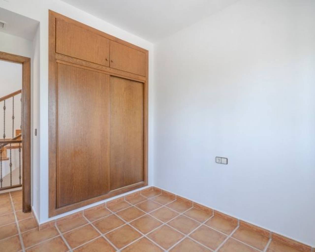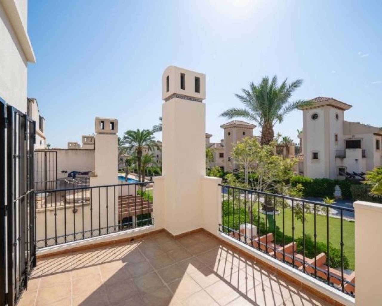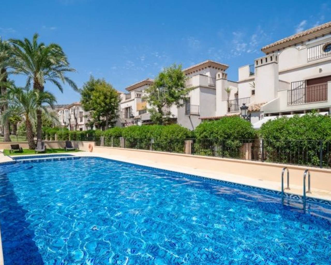 Reihenhaus im Wohnkomplex "Paradise Golf" Dieses charmante Reihenhaus befindet sich in der exklusiven Wohnanlage "Paradise Golf" und ist bezugsfertig. Es verfügt über einen Vorgarten mit Parkplatz sowie eine gemütliche hintere Veranda mit Grill, die direkten Zugang zum Wohnzimmer bietet. Im Erdgeschoss befinden sich ein großzügiges Wohnzimmer mit Kamin, eine separate Küche mit Hauswirtschaftsraum, ein Schlafzimmer mit Einbauschrank und ein Badezimmer mit Dusche. Im ersten Obergeschoss gibt es zwei helle Schlafzimmer mit Einbauschränken – eines mit Balkon und das andere mit einer schönen privaten Terrasse – sowie ein voll ausgestattetes Badezimmer. Im obersten Stockwerk befindet sich eine sonnige Dachterrasse mit freiem Ausblick, ideal zum Entspannen oder Sonnenbaden. Die Wohnanlage verfügt über einen Gemeinschaftspool. Das Haus wurde kürzlich gestrichen und befindet sich in hervorragendem Zustand. Wird unmöbliert verkauft.