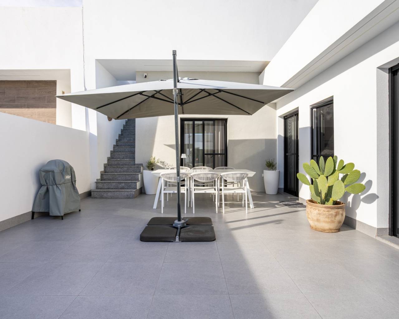 Diese charmante freistehende Villa bietet die perfekte Balance aus Komfort, Privatsphäre und mediterranem Lebensstil. Sie befindet sich in einer ruhigen Wohngegend von Torre-Pacheco, nur wenige Minuten von allen Annehmlichkeiten entfernt. Das Anwesen steht auf einem 151,71 m² großen Privatgrundstück und verfügt über 85 m² Wohnfläche auf einer Ebene. Dadurch ist es praktisch, barrierefrei und pflegeleicht. Dank der Ostausrichtung profitiert die Villa von viel Tageslicht und lichtdurchfluteten Räumen. Im Inneren befinden sich drei geräumige Schlafzimmer, alle mit Einbauschränken, und zwei moderne Badezimmer, eines davon en suite zum Hauptschlafzimmer. Zusätzlich gibt es eine Waschküche und einen weiteren, diskreten Abstellraum. Die offene Küche geht fließend in den Wohn- und Essbereich über und schafft so einen einladenden und funktionalen Raum, ideal für den Alltag und zum Bewirten von Gästen. Die Immobilie ist in exzellentem Zustand, sofort bezugsfertig und wird komplett möbliert verkauft, inklusive Haushaltsgeräten und Klimaanlage für ganzjährigen Komfort. Diese Villa besticht vor allem durch ihren Außenbereich. Das Anwesen verfügt über einen privaten Swimmingpool, umgeben von einem großzügigen Garten – ideal zum Entspannen, Sonnenbaden oder für Mahlzeiten im Freien. Eine überdachte Veranda bietet einen schattigen Sitzplatz, während Terrasse und Solarium zusätzlichen Platz zum Sonnenbaden, für gesellige Stunden oder einfach zum Entspannen mit freiem Blick und Privatsphäre bieten. Im Obergeschoss des Solariums befindet sich ein schattiger Bereich sowie eine Außenküche, perfekt für Grillabende. Zum Haus gehören außerdem ein privater Parkplatz auf dem Grundstück und eine Gegensprechanlage für zusätzliche Sicherheit. Erstklassige LageStrände: 20 MinutenInternationaler Flughafen Murcia: 15 MinutenFreizeiteinrichtungen, Geschäfte & Restaurants: 5 MinutenGolfplätze: 5 Minuten Diese Immobilie eignet sich dank ihrer exzellenten Lage, des großzügigen Außenbereichs und des bezugsfertigen Zustands ideal als Hauptwohnsitz, Ferienhaus oder Kapitalanlage. Eine fantastische Gelegenheit, den Lebensstil der Costa Cálida mit Komfort, Sonne und Privatsphäre zu genießen.
