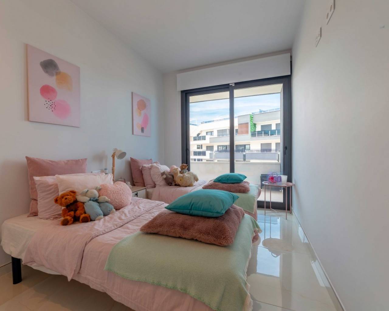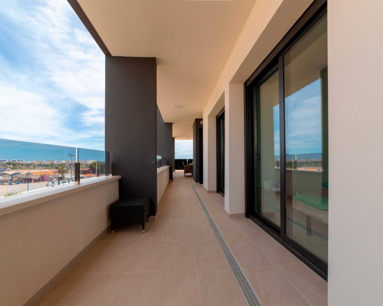 Die geräumige Wohnung, die erst im November 2024 fertiggestellt wurde, ist kaum genutzt und befindet sich daher in nahezu neuwertigem Zustand. Sie verfügt über drei großzügige Schlafzimmer, die alle direkten Zugang zur 48 m² großen Terrasse bieten, sowie zwei geschmackvoll eingerichtete Badezimmer mit Fußbodenheizung. Der offene Wohn- und Küchenbereich schafft eine helle und einladende Atmosphäre und bietet durch Schiebefenster direkten Zugang zur großen Terrasse mit Meerblick. Die Küche ist mit hochwertigen Geräten ausgestattet. Angrenzend an die Küche befindet sich ein separater Hauswirtschaftsraum mit Heizkessel und Waschmaschine. Die Wohnung wird unmöbliert verkauft, eine Übernahme ist verhandelbar. Diese Immobilie verfügt über zwei Tiefgaragenstellplätze und einen geräumigen Abstellraum. Die Garage ist bequem mit dem Aufzug erreichbar, der sich nur wenige Meter vom Eingang entfernt befindet. Der Gemeinschaftsbereich umfasst wunderschöne Grünflächen mit Springbrunnen, Palmen und einem Swimmingpool, ein Fitnessstudio mit Sauna, einen Kinderspielplatz und einen Grillplatz. Die Wohnung liegt nur wenige Gehminuten von einer großen Auswahl an Geschäften, Restaurants, Bars und Stränden entfernt. In unmittelbarer Nähe befinden sich außerdem zahlreiche Freizeitmöglichkeiten, drei große Golfplätze sowie eines der größten Einkaufszentren Europas, der „Zenia Boulevard“. Orihuela Costa ist eine der beliebtesten Gegenden der Costa Blanca und hat das ganze Jahr über viele Einwohner und Besucher.
