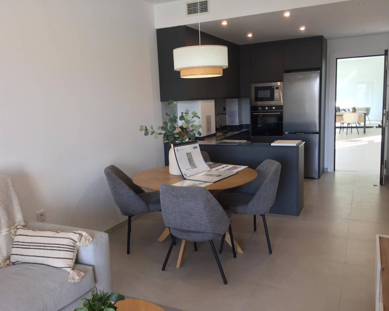 Schöne Wohnung zum Verkauf  , nur  700 m  vom Strand La Mata entfernt. Ein idealer Ort , um Ihr neues Zuhause zu genießen, Luxushäuser mit innovativem und sorgfältigem Design, entworfen für den Kunden und mit einer privilegierten Lage, um den besten Service genießen zu können. Die Urbanisation ist komplett eingezäunt, mit Rasenflächen und mediterranen Gärten, Zwei Swimmingpools für Erwachsene und einer für Kinder, Fitnessraum zwischen den beiden Pools. Wohnung von 90,87 m² im  Erdgeschoss, verteilt auf ein geräumiges Wohnzimmer , das an eine schöne offene Küche mit Frühstückstheke angeschlossen ist, Zugang zu einer überdachten Terrasse von 17,28 m² mit Waschküche, zwei Doppelzimmer mit Einbauschränken, eines davon en suite mit eigenem Bad und einem separaten Badezimmer. Alle Häuser verfügen über große, nach Südosten ausgerichtete Frontterrassen mit Meerblick und frontalem Blick auf die Gärten und Swimmingpools der Anlage.