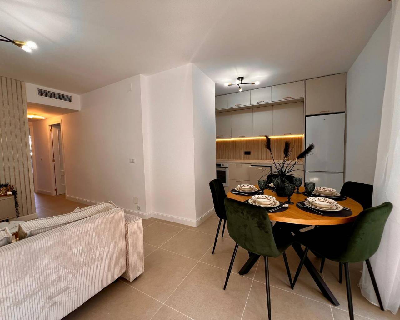 Attraktive Wohnung in La Zenia, Orihuela Entdecken Sie die Ruhe und den Komfort in dieser charmanten Wohnung, die sich in der begehrten Gegend von La Zenia in Orihuela, Alicante, befindet. Mit drei gemütlichen Schlafzimmern und einem eleganten Badezimmer ist dieses Zuhause der perfekte Rückzugsort für Familien oder für diejenigen, die eine friedliche Umgebung in der Nähe des Meeres suchen. Geräumige Aufteilung Diese Wohnung besticht durch ihre funktionale und gemütliche Aufteilung. Mit einer Nutzfläche von 86 m² ist jeder Winkel darauf ausgelegt, einen komfortablen und praktischen Raum zu bieten. Die Schlafzimmer sind hell und bieten Komfort und laden zu Momenten der Ruhe und Entspannung ein. Wärme und Komfort Das zentrale Klimaanlagensystem und die Heizung garantieren ein angenehmes Ambiente das ganze Jahr über und ermöglichen es, die Temperatur nach Ihren Vorlieben einzustellen. Die Südausrichtung maximiert den Eintritt von natürlichem Licht und schafft ein warmes und lebhaftes Zuhause. Offene Küche und moderne Annehmlichkeiten Die offene Küche, ideal für ein modernes und dynamisches Leben, fügt sich perfekt in das Wohnzimmer ein und wird zum Herzen dieses Zuhauses. Ausgestattet mit inkludierten Möbeln, ist dieser Raum bereit, um köstliche Mahlzeiten und unvergessliche Momente mit Freunden und Familie zu genießen. Dienstleistungen und Sicherheit Die Immobilie bietet verschiedene Annehmlichkeiten, die die Lebensqualität verbessern, darunter: Parkplatz für Ihre Bequemlichkeit. Abstellraum für zusätzlichen Stauraum. Fenster mit Doppelverglasung, die Isolierung und Sicherheit bieten. Sicherheitstür für Ihre Ruhe. Umgebung und Erreichbarkeit Die Wohnung liegt in einer Außenanlage mit guten Verkehrsanbindungen und ist nur wenige Gehminuten von den Stränden und den notwendigen Dienstleistungen entfernt. La Zenia ist bekannt für ihr lebhaftes Ambiente, ausgezeichnete Restaurants und Geschäfte – alles, was man benötigt, um einen entspannten und komfortablen Lebensstil zu genießen. Diese Wohnung in La Zenia verbindet Funktionalität, Komfort und ein attraktives Umfeld. Verpassen Sie nicht die Gelegenheit, sie zu besichtigen und ihr Potenzial als Ihr neues Zuhause zu entdecken.