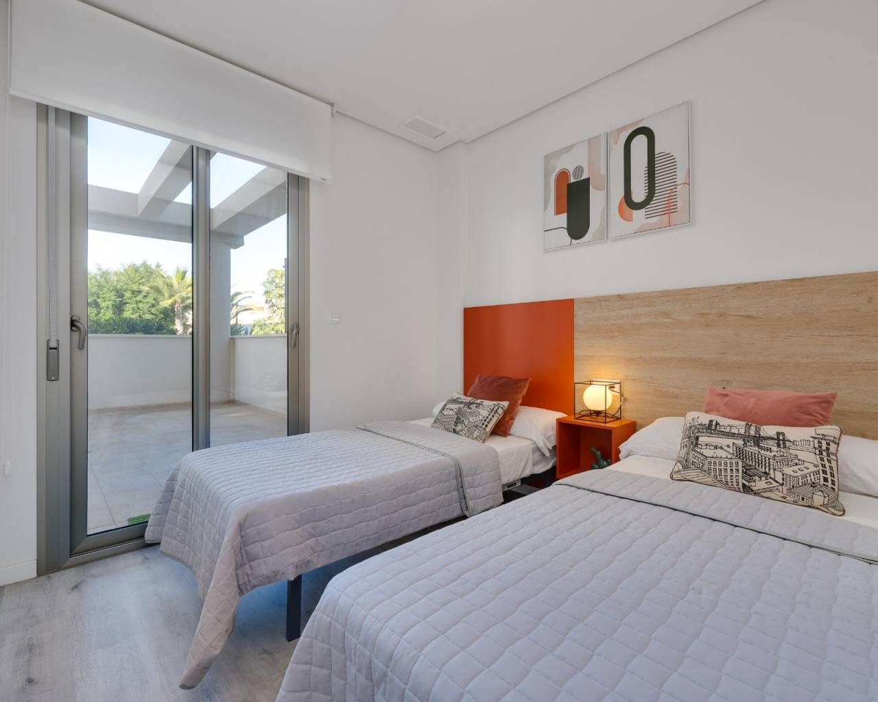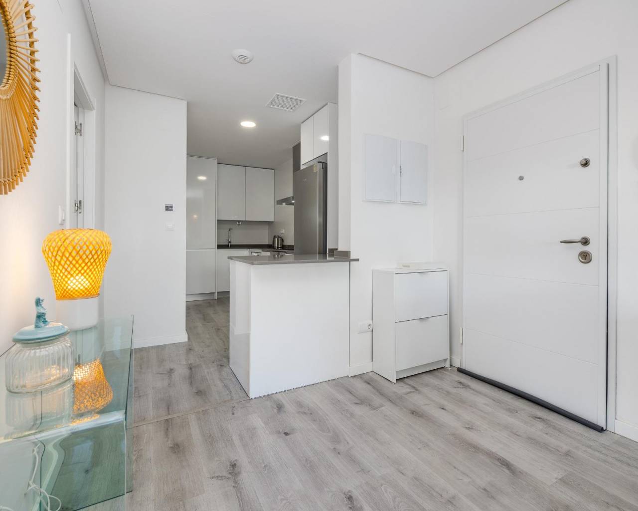 Gemütliche Wohnung in Villamartín, Orihuela Entdecken Sie diese charmante Wohnung in der sonnigen Gegend von Villamartín in Orihuela, Alicante. Mit einem modernen und einladenden Design ist diese Immobilie das ideale Zuhause für diejenigen, die Komfort und Stil in einer privilegierten Umgebung suchen. Ihre Südostausrichtung garantiert den ganzen Tag über reichlich Tageslicht und schafft eine warme und einladende Atmosphäre. Aufteilung und Räume Diese Wohnung verfügt über zwei geräumige Schlafzimmer und zwei Badezimmer, was sie zu einem perfekten Raum für Familien oder Paare macht. Die offene Gestaltung der amerikanischen Küche harmoniert mit dem Wohnzimmer und bietet eine ideale Umgebung, um mit Freunden und geliebten Menschen unvergessliche Momente zu genießen. Annehmlichkeiten und Merkmale Heizung und Klimaanlage: Ausgestattet mit einer Klimaanlage (Kühlen/Heizen) und Luftheizung, die das ganze Jahr über eine angenehme Temperatur gewährleistet. Gemeinschaftspool: Genießen Sie die Sommermonate im Gemeinschaftspool, einem perfekten Ort zum Entspannen und Erfrischen. Sicherheit und Komfort: Die Immobilie umfasst eine Sicherheitstür, doppelt verglaste Fenster und eine Garage, die den Bewohnern Ruhe und Komfort bietet. Outdoor-Terrasse: Ein Außenbereich, in dem Sie die Aussicht und das mediterrane Klima genießen können, ideal, um die Umgebung zu betrachten. Gute Anbindung: Die Lage bietet hervorragende Verbindungen, die den Zugang zu Einkaufsbereichen, Restaurants und lokalen Dienstleistungen erleichtern. Beschreibung der Umgebung Villamartín ist bekannt für seine ruhige und entspannte Atmosphäre, ideal für diejenigen, die dem Trubel des städtischen Lebens entfliehen möchten. In der Nähe wunderschöner Strände und Naturschutzgebiete können die Bewohner ein bereicherndes Leben im Freien genießen. Die Gemeinschaft bietet eine Vielzahl von Freizeitaktivitäten sowie ein reges Sozialleben, was diesen Ort zum idealen Raum zum Leben macht. Diese Wohnung mit 79 m² Wohnfläche kombiniert Modernität und Komfort in einer der begehrtesten Lagen an der Costa Blanca. Mit ihrem attraktiven Design und hochwertiger Ausstattung ist diese Immobilie nicht nur eine Investition in Eigentum, sondern auch in einen Lebensstil voller Möglichkeiten. Verpassen Sie nicht die Gelegenheit, Ihr neues Zuhause in Villamartín zu entdecken, wo Lebensqualität und Schönheit der Umgebung in perfekter Harmonie vereint sind.