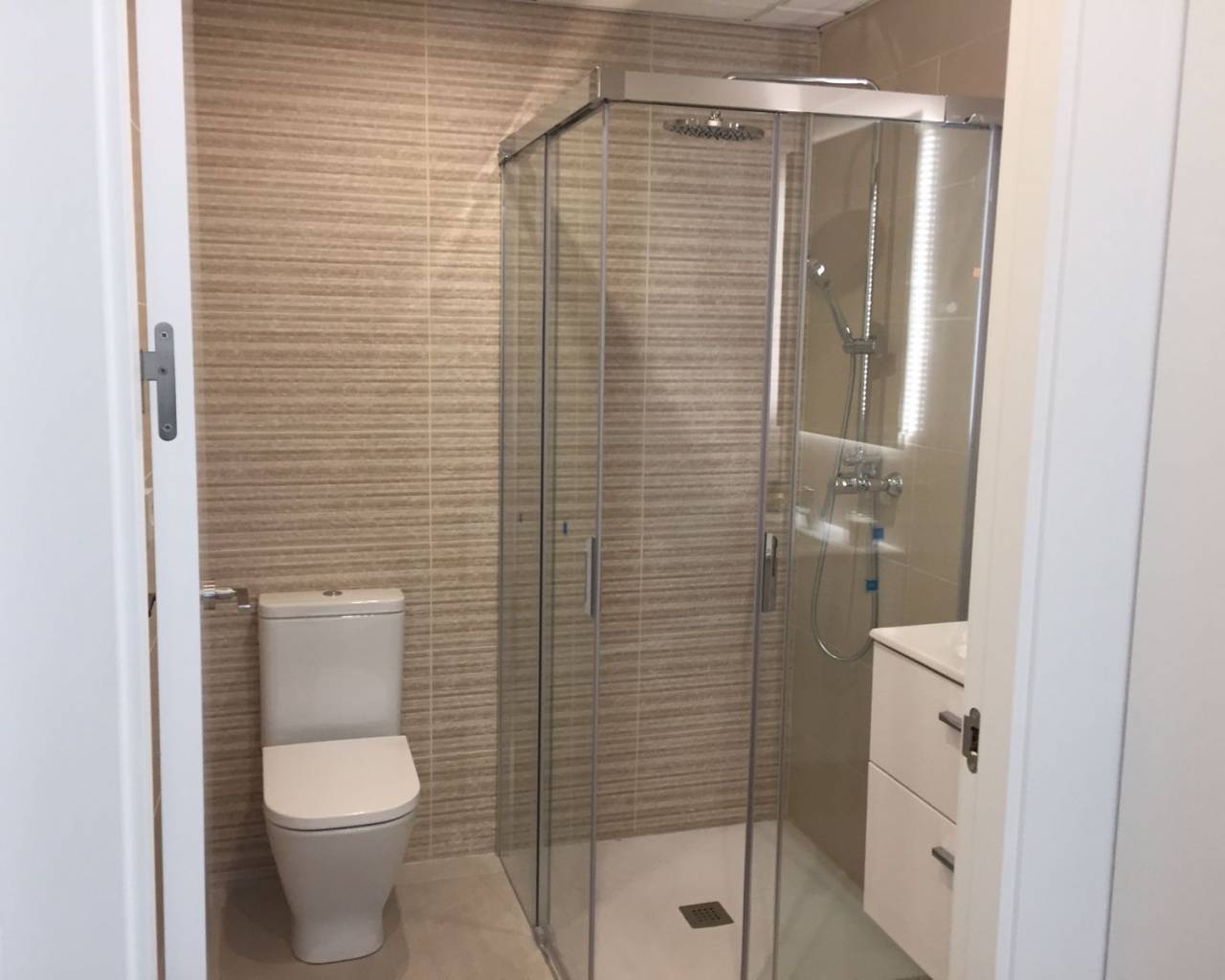 Schöne Wohnung zum Verkauf , nur 700 m vom Strand La Mata entfernt. Ein idealer Ort , um Ihr neues Zuhause zu genießen, Luxushäuser mit innovativem und sorgfältigem Design, entworfen für den Kunden und mit einer privilegierten Lage, um den besten Service genießen zu können. Die Urbanisation ist komplett eingezäunt, mit Rasenflächen und mediterranen Gärten, Zwei Swimmingpools für Erwachsene und einer für Kinder, Fitnessraum zwischen den beiden Pools. Wohnung von 90,87 m² im Erdgeschoss, verteilt auf ein geräumiges Wohnzimmer , das an eine schöne offene Küche mit Frühstückstheke angeschlossen ist, Zugang zu einer überdachten Terrasse von 17,28 m² mit Waschküche, zwei Doppelzimmer mit Einbauschränken, eines davon en suite mit eigenem Bad und einem separaten Badezimmer. Alle Häuser verfügen über große, nach Südosten ausgerichtete Frontterrassen mit Meerblick und frontalem Blick auf die Gärten und Swimmingpools der Anlage.