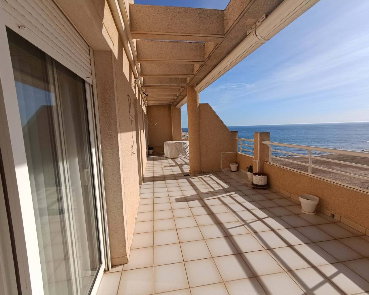 Willkommen in diesem herrlichen Penthouse mit atemberaubender Aussicht und vier Schlafzimmern. Dieses Penthouse befindet sich an der Hauptstraße in La Mata, so dass im Grunde alle Dienstleistungen nur einen kurzen Spaziergang entfernt sind. Die Wohnung verfügt über vier Schlafzimmer, zwei Badezimmer, eine separate Küche, ein geräumiges und helles Wohnzimmer und eine riesige Südterrasse mit Meerblick. Mit dem Anwesen ist ein Garagenplatz inbegriffen. La Mata ist eine kleine Küstenstadt in der Provinz Alicante in der Autonomen Gemeinschaft Valencia, Spanien. Es liegt an der Costa Blanca, genauer gesagt in der Gemeinde Torrevieja. La Mata ist bekannt für seine schönen Sandstrände, das angenehme mediterrane Klima und die entspannte Atmosphäre. Die Stadt ist bei Touristen und Einheimischen gleichermaßen beliebt, vor allem in den Sommermonaten, wenn Besucher an ihre Ufer strömen. Die Hauptattraktion von La Mata ist der weitläufige Strand Playa de La Mata, der sich über mehrere Kilometer entlang der Küste erstreckt. Der Strand bietet goldenen Sand, klares Wasser und eine Reihe von Annehmlichkeiten wie Strandbars, Restaurants und Wassersportmöglichkeiten. Neben dem Strand verfügt La Mata über ein charmantes Stadtzentrum mit einer Auswahl an Geschäften, Restaurants und Cafés. Es bewahrt ein traditionelles spanisches Flair mit engen Gassen, weiß getünchten Gebäuden und einem entspannten Ambiente. Es gibt auch einen wöchentlichen Straßenmarkt, auf dem Einheimische und Besucher frische Produkte, Kleidung und andere Waren kaufen können. Naturliebhaber werden den nahe gelegenen Naturpark "Parque Natural de La Mata y Torrevieja" zu schätzen wissen. Es ist ein Schutzgebiet mit Salzseen und Sümpfen, das als Lebensraum für verschiedene Vogelarten, darunter Flamingos, dient. Der Park bietet Wander- und Radwege, Picknickplätze und Beobachtungspunkte zur Vogelbeobachtung. Insgesamt ist La Mata ein ruhiges Reiseziel für diejenigen, die einen erholsamen Strandurlaub oder einen ruhigen Kurzurlaub suchen. Es kombiniert natürliche Schönheit, spanischen Charme und ein langsameres Lebenstempo, was es zu einer attraktiven Wahl für Besucher macht, die sich entspannen und die Mittelmeerküste genießen möchten.