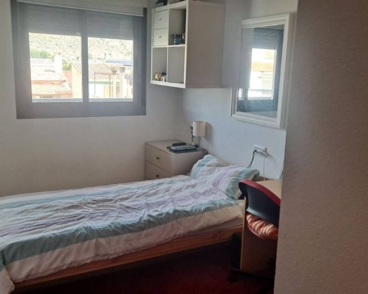 Piso en venta en Hondón de las Nieves con ascensor y semi-nuevo con tres dormitorios y dos baños, salón y cocina independiente, suelo de gres puertas de roble y ventanas de aluminio, galería, preinstalación de aire acondicionado.