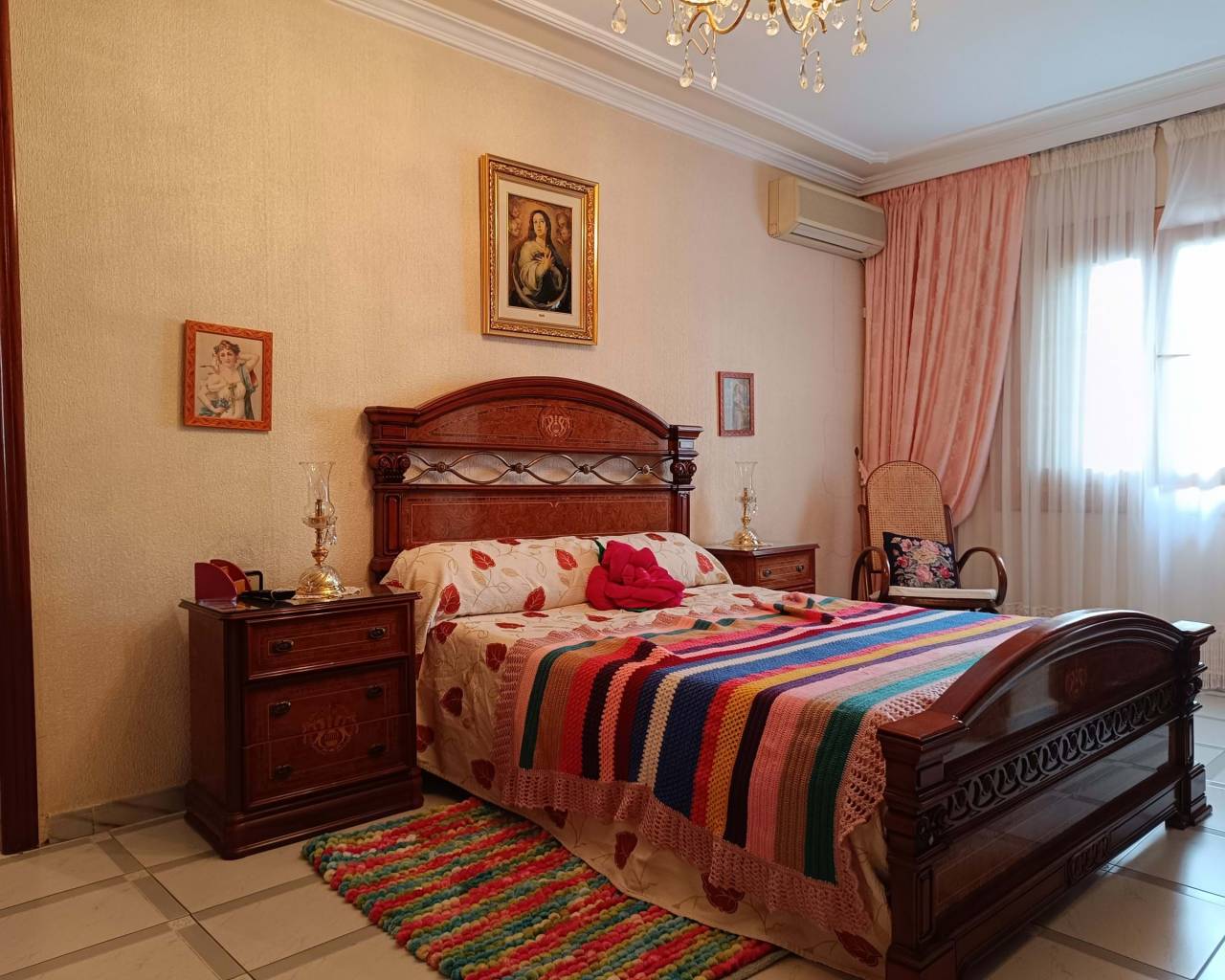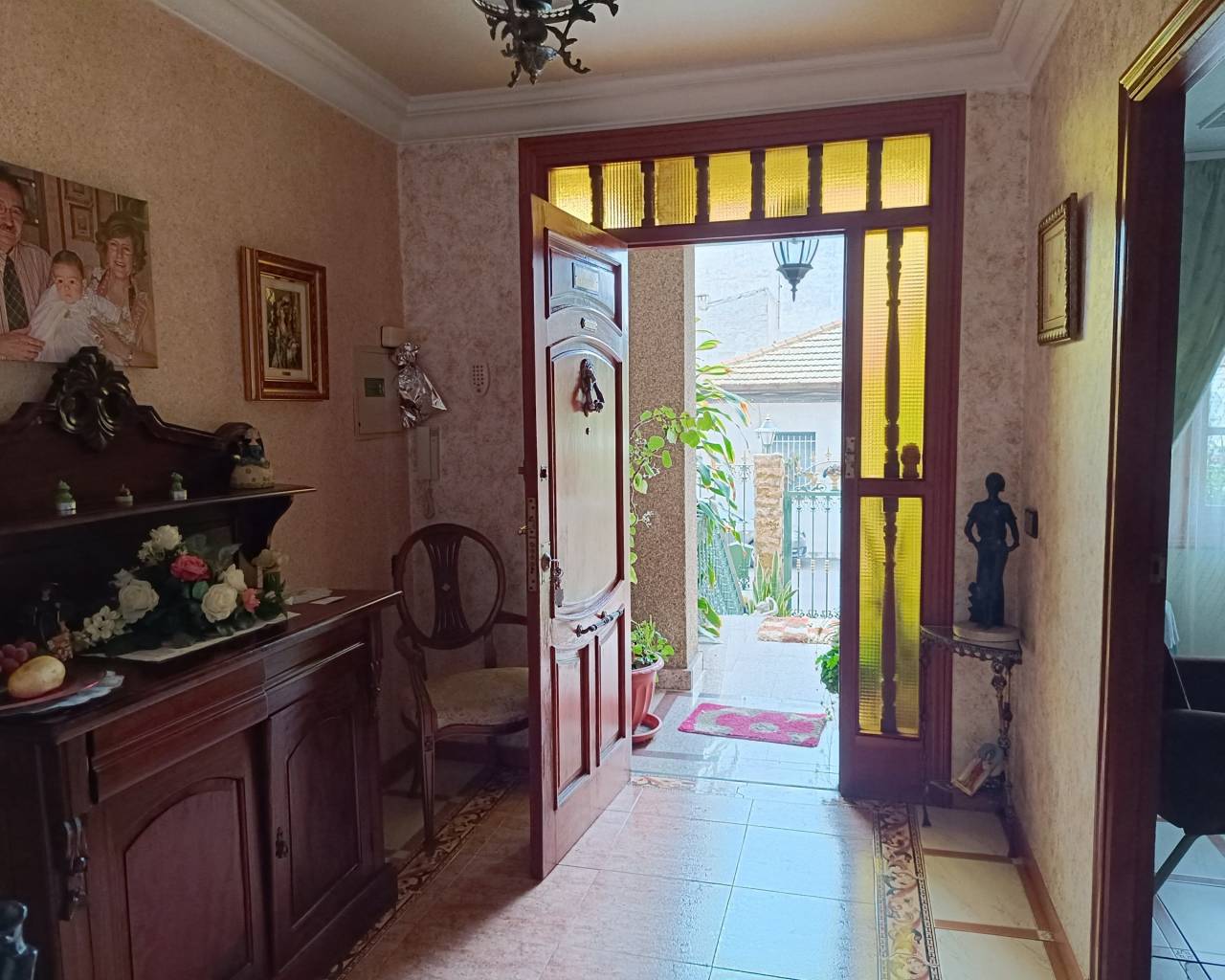 Hermosa villa adosada en el centro de Almoradí. La villa se encuentra muy céntrica y a un paso de cualquier servicio. La villa hace esquina a dos calles principales de Almoradí centro. A la entrada de la parcela te encuentras un jardín maduro donde puedes disfrutar de sol y del jardín. Subiendo una pequeña escalera llegamos a un recibidor que distribuye la planta baja en una sala de estar, una cocina independiente, un baño con ducha y una habitación habilitada como pequeño taller. En la planta 1ª encontramos 2 dormitorios simples, un baño que se quitó para usarlo como trastero pero todas las instalaciones de agua y desagües están instalados, 1 dormitorio principal con un vestidor y baño En-Suite, un dormitorio habilitado como vestidor y todos los dormitorios tiene su propia ventana al exterior. En la planta 2ª encontramos 2 habitaciones que se puede convertir en dormitorios o sala de juegos y una terraza (solárium). Abajo en el semi-sótano hay 2 habitaciones y plaza para aparcar varios coches.