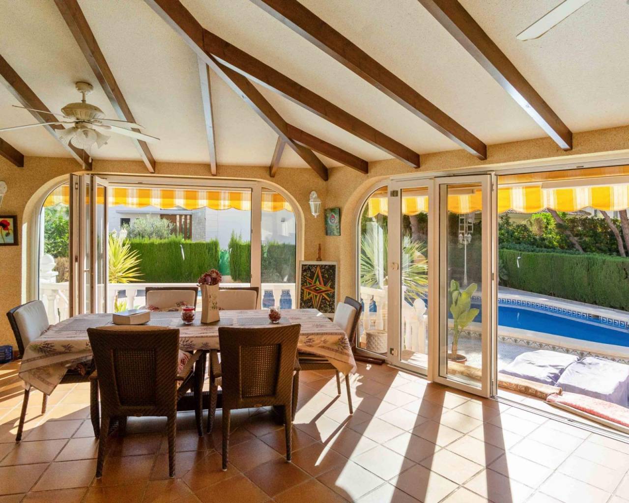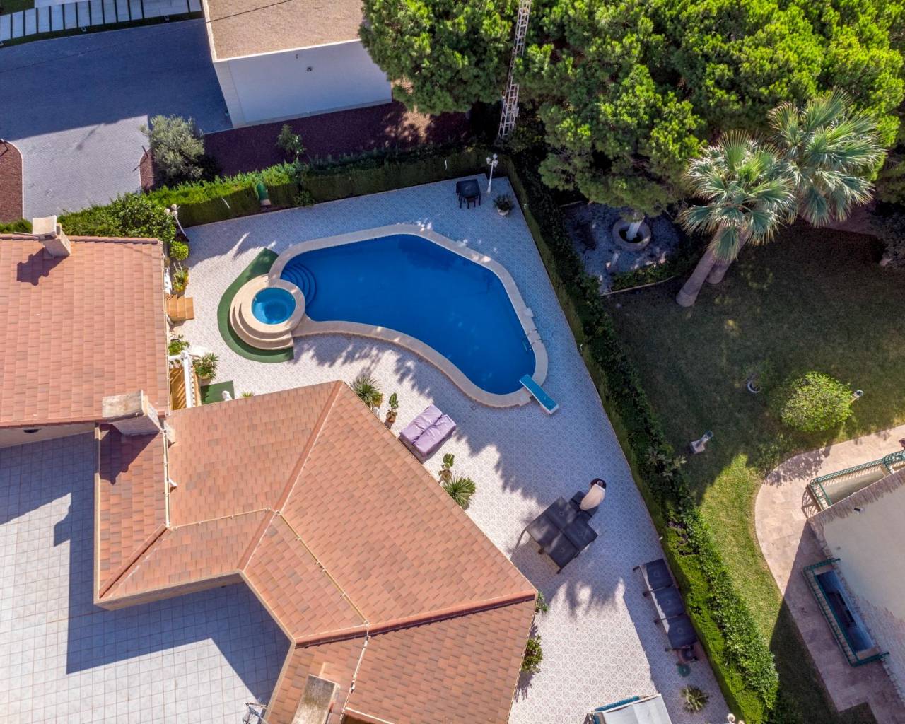 Esta espléndida villa independiente de 300 m² está convenientemente ubicada a solo 3 minutos a pie de las hermosas playas de Cabo Roig y su puerto deportivo. Situada en una generosa parcela de 1425m2, la propiedad cuenta con 3 amplios dormitorios, además de 4 baños, gimnasio y sauna con sus propios baños.~El amplio salón cuenta con zona de comedor y una acogedora chimenea, complementada con una cocina equipada con lavadero.~Lo más destacado de la propiedad es su amplio jardín privado y numerosas terrazas que rodean la residencia. Las comodidades al aire libre incluyen una zona de barbacoa, pérgola para cenar al aire libre, garaje y una piscina privada de generosas dimensiones.~La propiedad se ofrece a la venta completamente amueblada, proporcionando una solución llave en mano para posibles compradores.~~Cabo Roig, situado a 10 kilómetros al sur de Torrevieja en la Costa Blanca sur, ofrece una ciudad encantadora con avenidas bordeadas de palmeras y jardines que ofrecen vistas pintorescas del Mediterráneo hacia la península de La Manga y el Mar Menor. Las encantadoras playas aumentan el atractivo de este lugar, y el casco antiguo de Cabo Roig es conocido por sus amplias avenidas y su encantador ambiente.~~Convenientemente ubicado, Cabo Roig está a menos de una hora en coche del aeropuerto de Alicante y aproximadamente a 30 minutos del aeropuerto de Murcia San Javier. Los entusiastas del golf apreciarán la proximidad a numerosos campos de campeonato, incluidos los tres campos de Villamartín, y también se puede acceder fácilmente al famoso complejo de golf La Manga.~~La playa de Cabo Roig, a menudo conocida como la playa de invierno, ofrece una variedad de deportes acuáticos, como Paddle Sup, Kayak, motos acuáticas y alquiler de embarcaciones. La música en vivo en los chiringuitos realza el ambiente vibrante. Las opciones gastronómicas recomendadas incluyen La Bahía y Stella Maris, conocidas por sus menús amplios y de alta calidad.~La propiedad está cerca de la zona de Agua Marina, ofreciendo una variada selección de restaurantes, bares, un mercado con mercadillo todos los jueves, un centro de salud, farmacias, cafeterías y heladerías.~~Contáctenos para más información.