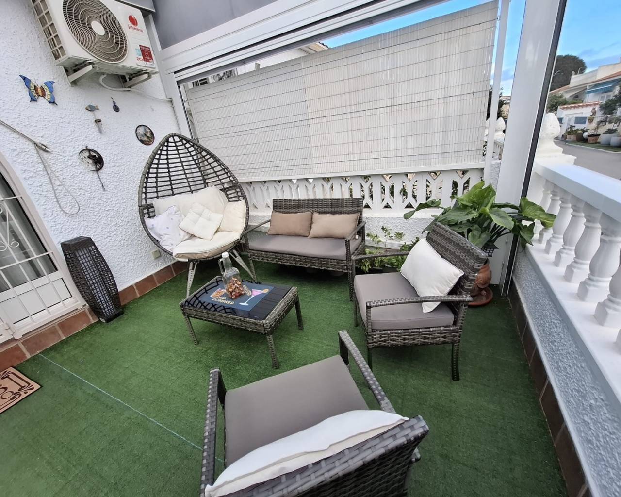 Encantador bungalow en un tranquilo complejo residencial. Completamente reformado y amueblado, dispone de una amplia terraza cubierta donde poder disfrutar de la naturaleza todo el año.