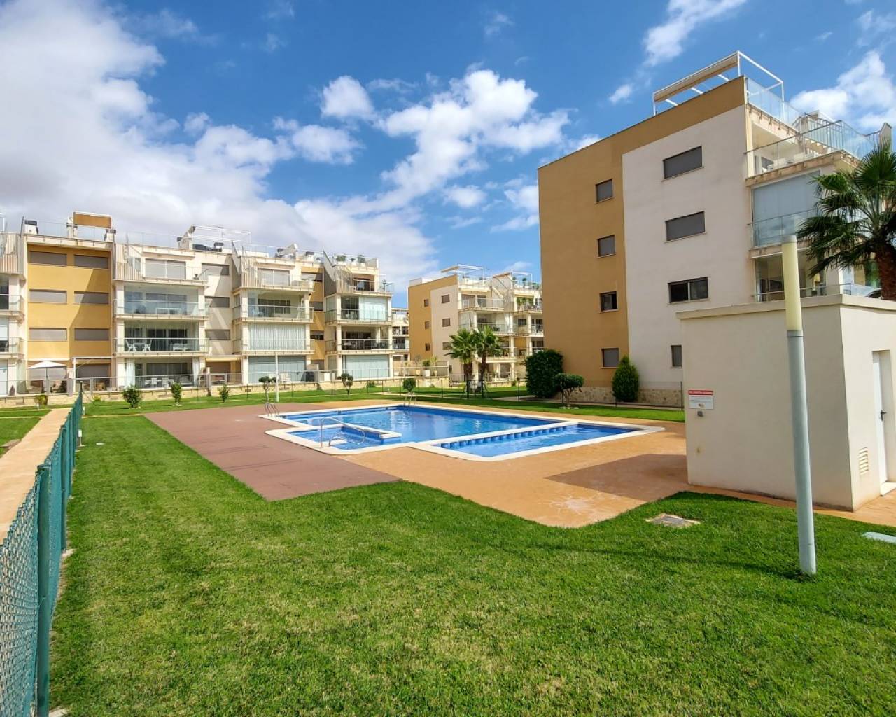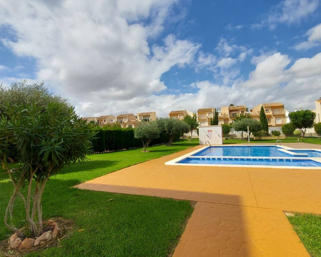 Los proyectos residenciales Villamartín Gardens 1 y 2 están ubicados en la nueva zona residencial de El Barranco, Villamartín (provincia de Alicante), sur de la Costa Blanca. Una ubicación tranquila pero muy cerca de todos los servicios, del Centro Comercial Zenia Boulevard, de las playas de Orihuela Costa y de los campos de golf de Villamartín, Las Ramblas, Campoamor y Las Colinas. Tenemos en Villamartin Gardens 1, Calle Vainilla, una planta baja llave en mano de 3 dormitorios, 2 baños. Salón, cocina y 2 terrazas muy grandes. Sol todo el día. Residencial completamente terminada y cerrada. Amplios jardines con césped natural y 3 piscinas (1 cubierta y climatizada en invierno). Residencial Villamartín Gardens se define por 3 características principales: CALIDAD, ESPACIO, LUZ El Conjunto Residencial Villamartín Gardens está situado en El Barranco, Villamartín, Orihuela Costa. Esta zona pertenece al municipio de Orihuela, en la provincia de Alicante, en la Costa Blanca sur. Villamartín goza de una ubicación privilegiada, muy cerca de todos los servicios. Destacan los campos de golf (Villamartín, Las Ramblas, Campoamor y Las Colinas), las playas con Bandera Azul de Orihuela y el centro comercial Zenia Boulevard, con 150 tiendas. Gracias a sus excelentes comunicaciones, Villamartín te invita a explorar otros destinos: Torrevieja, Orihuela, Elche, Alicante, Cartagena, Murcia... Villamartín te ofrece todo lo necesario para disfrutar de la vida en cualquier estación, con más de 320 días de sol al año. AHORA INCLUIMOS Electrodomésticos, instalación completa de aire acondicionado LG por conductos en toda la vivienda, plaza de garaje y trastero en el sótano.
