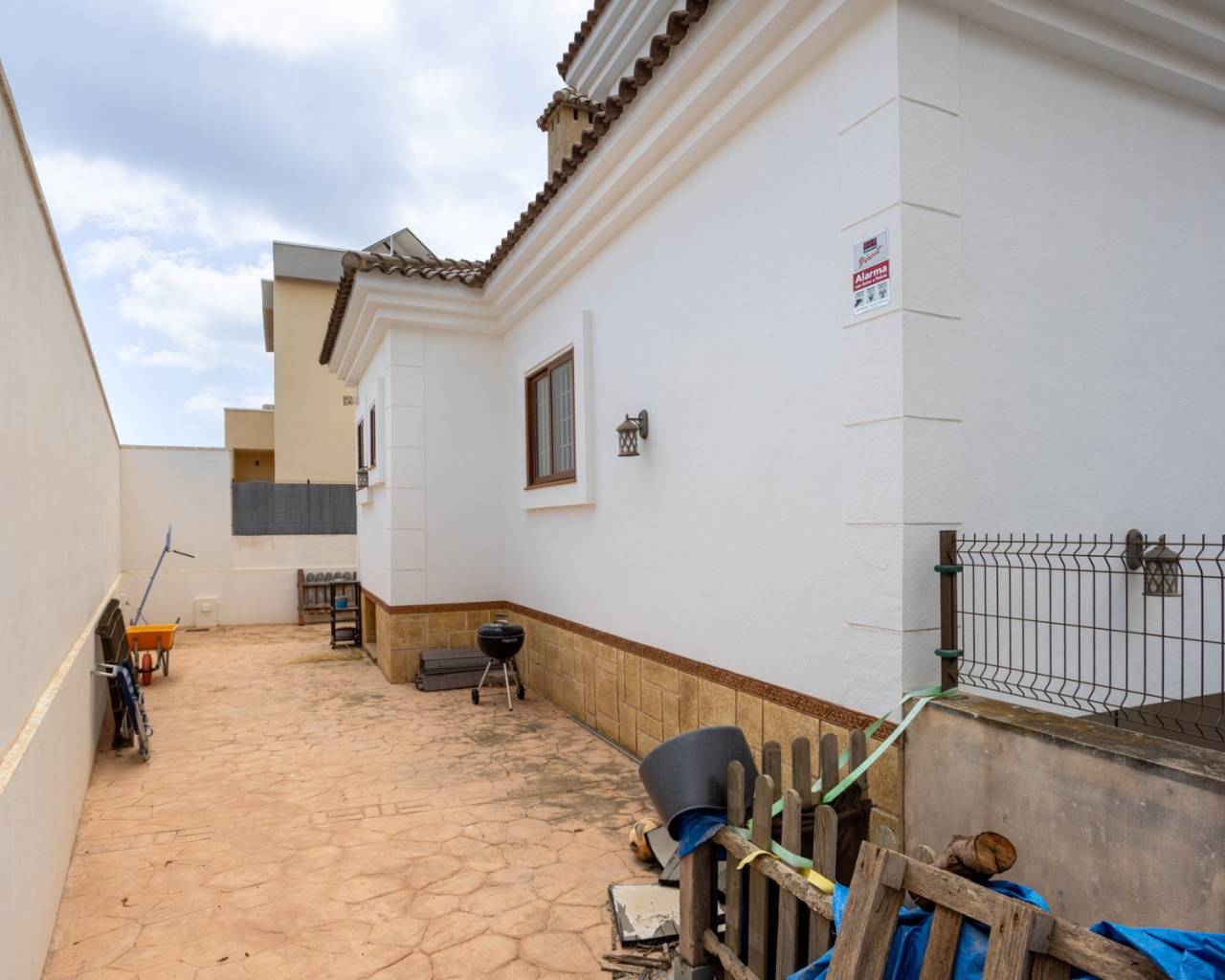 Exclusiva villa independiente en Los Montesinos: espacio, confort y estilo mediterráneo Presentamos esta hermosa casa en la tranquila zona residencial de Los Montesinos, una ubicación ideal para quienes buscan calidad de vida, privacidad y cercanía a todos los servicios esenciales. Esta propiedad de 417 m², ubicada en una espaciosa parcela de 532 m², ofrece espacio, funcionalidad y comodidad en cada rincón. Al entrar en la casa, le recibe un cuidado jardín mediterráneo que rodea toda la propiedad. Las amplias zonas exteriores le invitan a relajarse y disfrutar del sol durante todo el año. La piscina privada, perfectamente integrada en el paisaje, es el lugar perfecto para refrescarse en verano o relajarse en la terraza a la sombra y en el jardín. El interior de la casa impresiona por su distribución práctica y luminosa. En la planta baja, un amplio salón con comedor y chimenea es ideal para reuniones familiares o tardes de socialización. El acceso directo al porche cubierto y a la terraza crea una conexión natural entre el interior y el exterior. La espaciosa cocina independiente está equipada con electrodomésticos modernos y es ideal tanto para el día a día como para cocinar en casa. La casa ofrece cuatro dormitorios amplios y luminosos, ideales para familias o quienes buscan habitaciones de invitados, oficinas o espacios multifuncionales. Tres baños cuentan con grifería de alta calidad que combina estilo y funcionalidad. El espacioso sótano ofrece un espacio versátil y puede utilizarse como sala de juegos, gimnasio, bodega o incluso como sala de estar independiente. La propiedad también cuenta con un garaje privado y vallado con espacio para un coche y espacio de almacenamiento adicional. La casa está completamente amueblada y equipada con aire acondicionado en varias estancias, puerta de seguridad y portero automático. Está lista para entrar a vivir de inmediato, sin necesidad de reformas. Su orientación suroeste garantiza luz natural durante casi todo el día, creando un ambiente cálido y agradable en cada estancia. Situada a tan solo 15 minutos en coche de las playas de la Costa Blanca, a 40 minutos del Aeropuerto de Alicante, y a minutos de supermercados, restaurantes, centros de ocio, y campos de golf, esta propiedad ofrece todo lo necesario para convertirla en su vivienda ideal o una excelente inversión para alquiler turístico o vacacional. Si buscas una vivienda exclusiva y llena de carácter que puedas disfrutar desde el primer momento, esta villa en Los Montesinos es sin duda una oportunidad que no puedes dejar pasar.