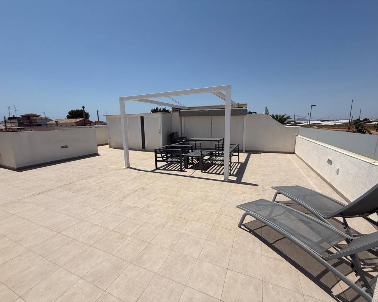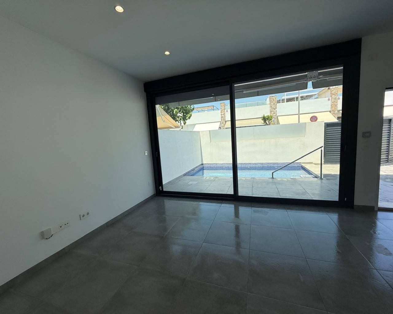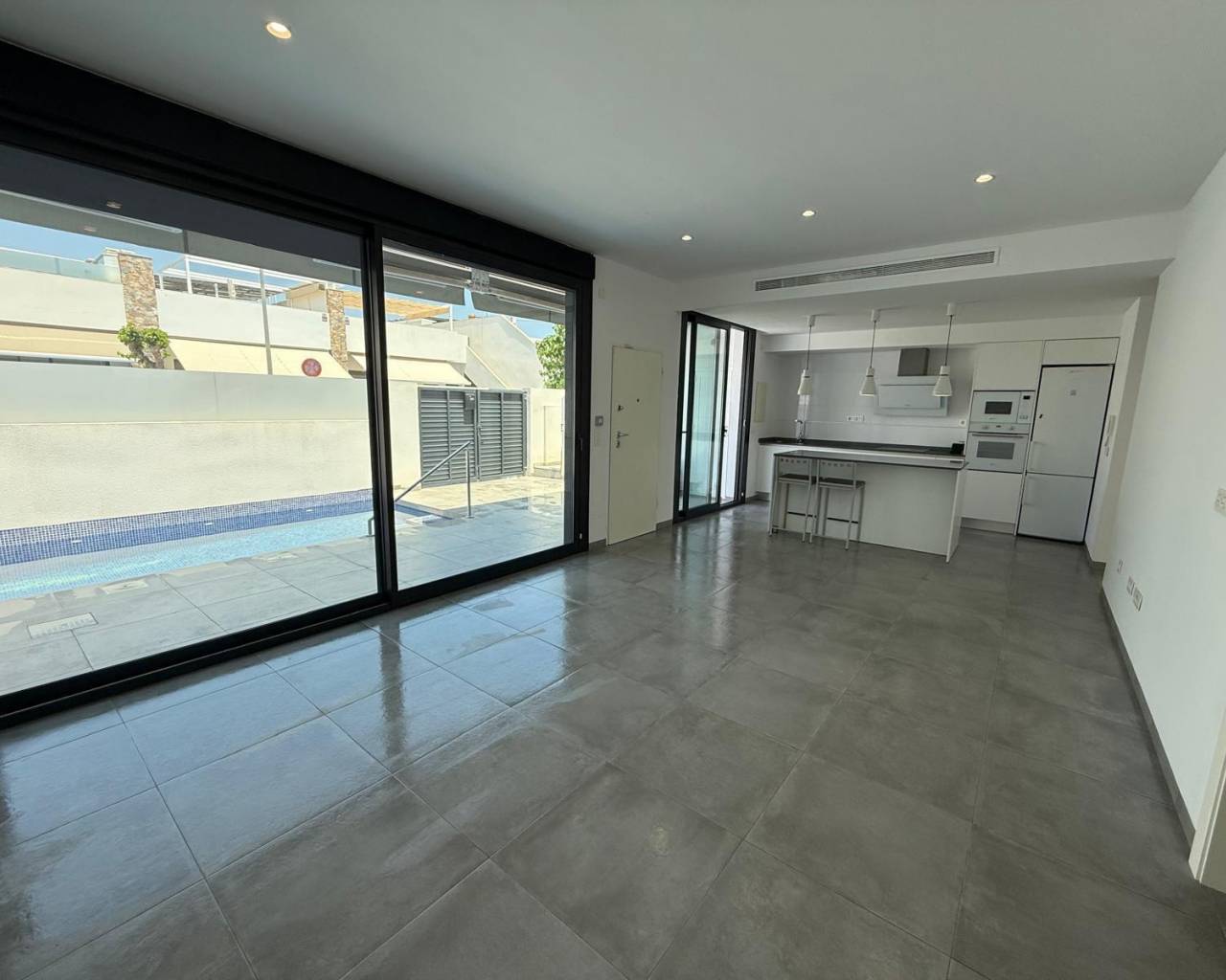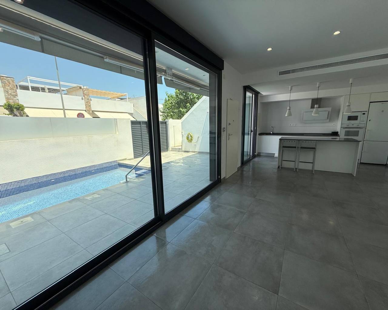 ¿Sueña con una casa moderna con piscina privada, cerca tanto del centro de la ciudad como de la playa? Esta impresionante villa adosada, construida en 2019, cuenta con una ubicación perfecta orientada al sur en la popular zona de Pilar de la Horadada, a poca distancia a pie del centro de la ciudad y a solo un corto trayecto en coche de la hermosa playa de Las Higuericas.La propiedad cuenta con 3 dormitorios y 2 baños, ambos equipados con calefacción por suelo radiante, así como un amplio y luminoso salón con cocina abierta.Una de las características más destacadas de la casa es la impresionante terraza en la azotea, ideal para tomar el sol, celebrar reuniones sociales o simplemente disfrutar de las vistas. La terraza está equipada con una ducha, preinstalación para un jacuzzi, una cocina exterior, una pérgola para dar sombra y un trastero. En el exterior, encontrará una piscina privada. Además, hay mucho espacio al aire libre en la planta baja.Pilar de la Horadada es una encantadora localidad costera de la provincia de Alicante. Situada en el sur de la Costa Blanca, cuenta con hermosas playas de arena, un clima mediterráneo y un rico patrimonio histórico. La localidad ofrece una mezcla de comodidades modernas y cultura tradicional española, con animados mercados, fiestas locales y un pintoresco casco antiguo. Su proximidad al Mar Menor y a los parques naturales la convierte en un destino ideal para practicar actividades al aire libre como senderismo, ciclismo y deportes acuáticos. Tanto si busca relajación como aventura, Pilar de la Horadada es una escapada perfecta.Para más información +34 635 130 717