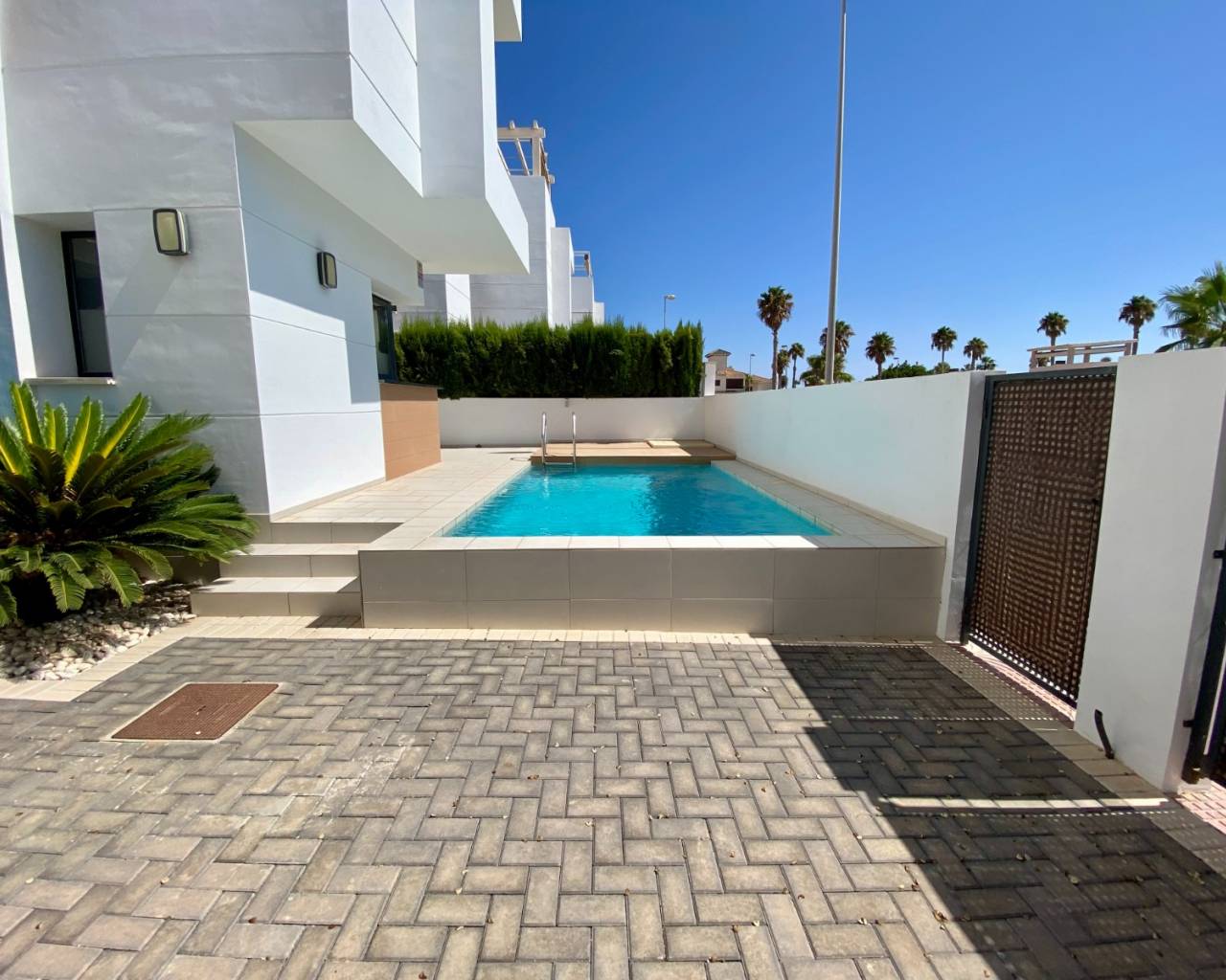 Impresionante villa independiente de 3 dormitorios en Doña Pepa, Ciudad Quesada Ubicada en la codiciada zona de Doña Pepa en Rojales, Ciudad Quesada, esta hermosa villa independiente ofrece la combinación perfecta de comodidad, espacio y practicidad. Construida con altos estándares de calidad en 2017, la propiedad presume de un diseño moderno y acabados de alta calidad. Ubicada en una comunidad tranquila y bien cuidada, la villa cuenta con 3 amplios dormitorios y 3 baños modernos , lo que la hace ideal para familias o para quienes disfrutan de recibir visitas. La sala de estar de techos altos crea un ambiente amplio y luminoso, con grandes ventanales que inundan el espacio de luz natural. En el exterior, encontrará su propia piscina privada , aparcamiento privado fuera de la carretera y una amplia terraza soleada, perfecta para disfrutar del estilo de vida mediterráneo. La villa se encuentra en una parcela completamente independiente, lo que ofrece privacidad y tranquilidad. Disfrute de fácil acceso a pie a servicios locales , tiendas, restaurantes y cafeterías. La playa está a solo 10-12 minutos en coche , mientras que el aeropuerto de Alicante está a unos 30 minutos , lo que convierte a esta casa en una excelente opción tanto para vivir a tiempo completo como para disfrutar de unas vacaciones. Esta es una oportunidad única de poseer una villa construida con calidad en una de las ubicaciones más deseables de Ciudad Quesada : contáctenos hoy para concertar su visita.