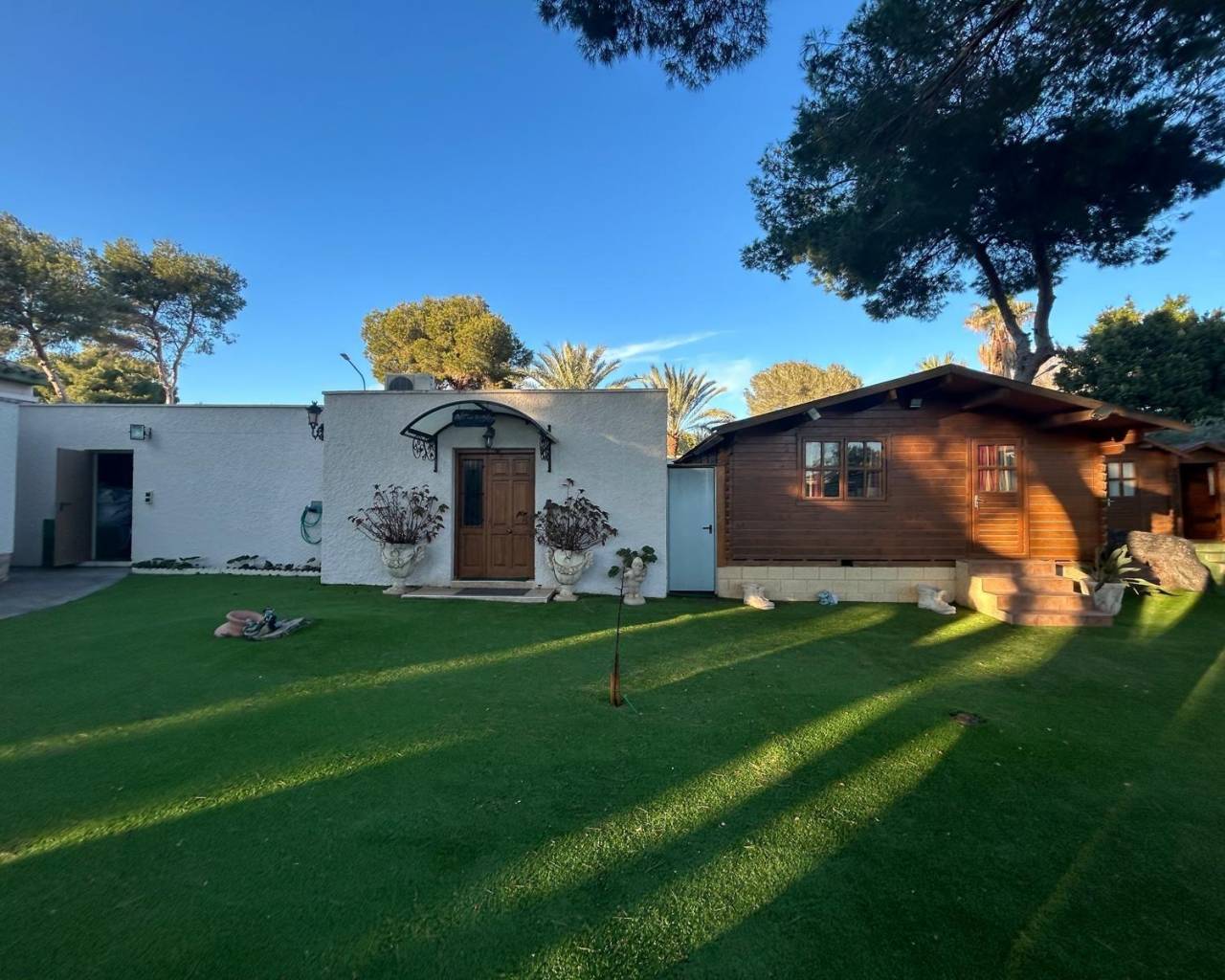 Acogedor chalet situado en una de las zonas más bonitas de Orihuela Costa, en Dehesa de Campoamor. La vivienda de unos 200m2 construida sobre la parcela de casi 1500m2 está a menos de 900m de las preciosas playas de Campoamor, a poca distancia caminando hasta la zona donde se encuentran las pistas de tenis y pádel, el supermercado, la farmacia, varios bares y restaurantes y otros servicios. El chalet construido en planta baja, encontraremos un total de 3 habitaciones y 2 baños, la habitación principal con baño en suite y un gran vestidor. Salón comedor con chimenea, grande cocina independiente, patio trasero con acceso a la zona del lavadero y un bonito porche delantero de unos 20m2. En el bien arreglado y cuidado jardín encontramos una gran piscina (15x4) privada con la cubierta transparente corredera, gimnasio con jacuzzy y sauna finlandesa, una casita de madera para invitados con un pequeño salón, 2 habitaciones y baño, y otras dos casas de madera, una con el baño que da servicio al jardín y la piscina y un trastero. Cuenta también con garaje privado para varios vehículos y zona de barbacoa en el patio trasero de la casa. Se vende amueblada y equipada.