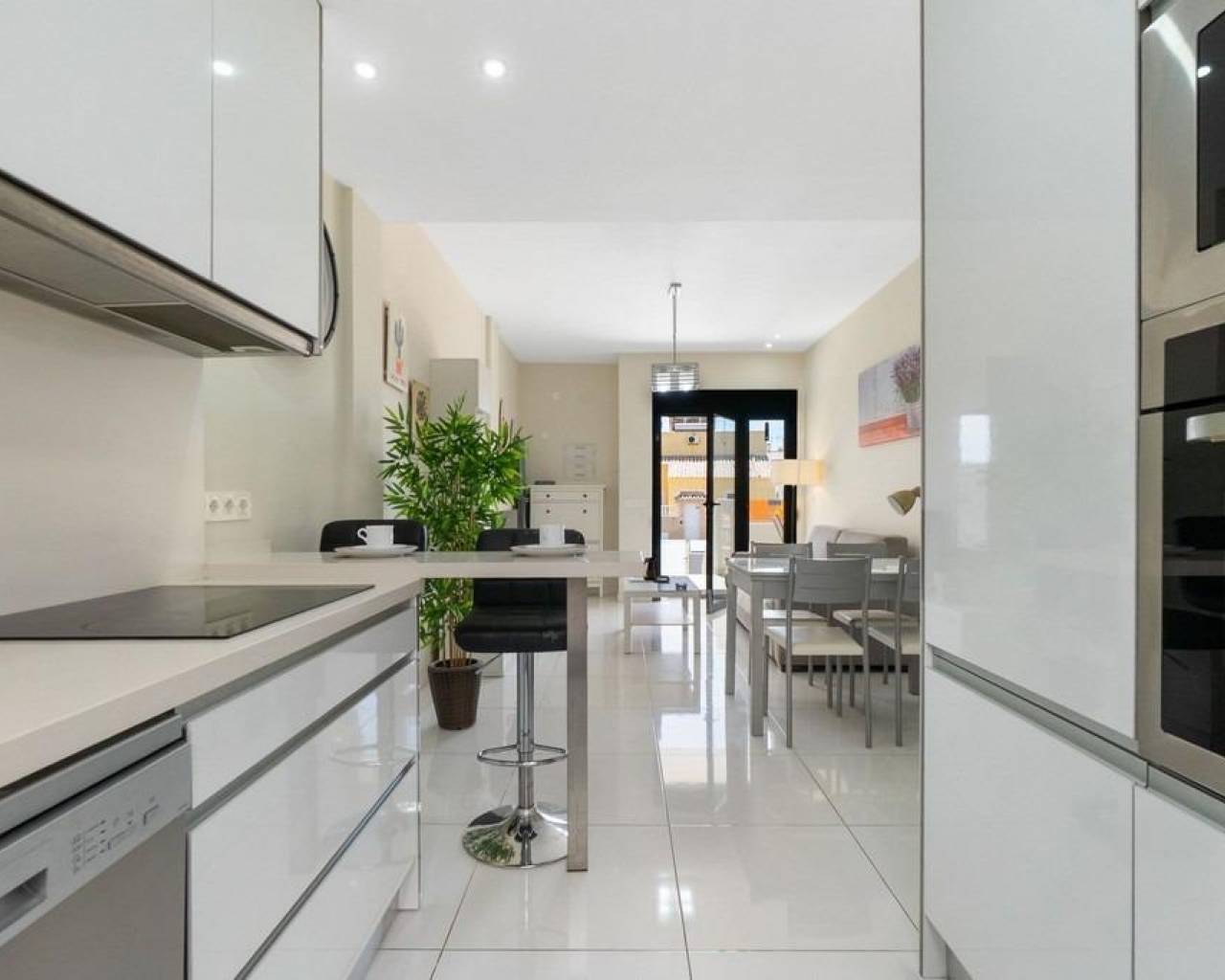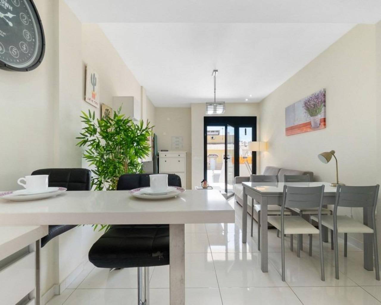 Tu oasis privado al sol.~~Imagina despertar cada día en un bungalow moderno en planta baja, con orientación sur para disfrutar de luz y calidez todo el año. Vive el confort de dos dormitorios en suite, un amplio salón-comedor con cocina americana y espacios pensados para tu bienestar: porche, patio trasero y piscina privada para refrescarte cuando quieras. La vivienda dispone de licencia turística.~~~Se entrega amueblado con un estilo moderno y equipado con aire acondicionado centralizado frío-calor, persianas eléctricas y mucho más. Además, tendrás acceso a piscina comunitaria con zonas verdes para relajarte o compartir con amigos y familia. Ubicación inmejorable: a solo unos pasos de centro comercial, supermercado y todos los servicios que necesitas. También hay un parking comunitario exterior donde poder aparcar el coche cómodamente.~~Listo para entrar a vivir y disfrutar. ¡Tu nuevo hogar en el Mediterráneo te está esperando!