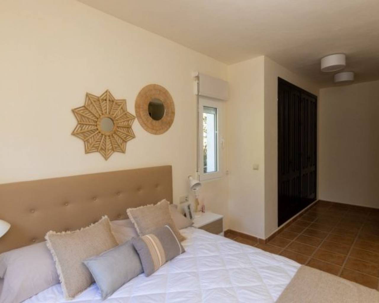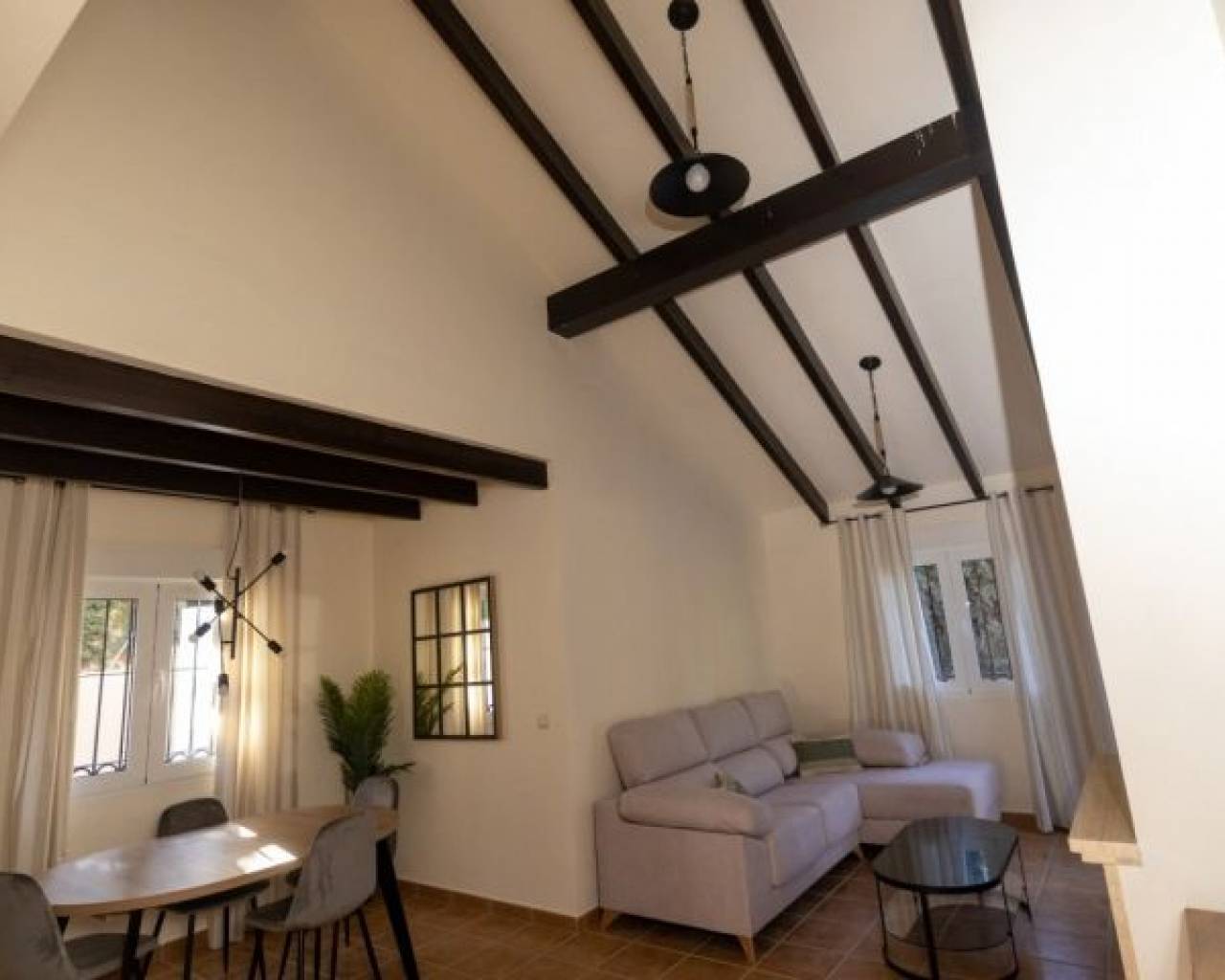 VILLA LLAVE EN MANO EN FUENTE ALAMO, MURCIA Residencial de adosados, villas independientes y pareados en Fuente Álamo, Murcia. Hay siete modelos diferentes de casas para elegir, diseñados para adaptarse al gusto de todos. Diseños rústicos combinados con materiales de primera calidad y un enfoque en el espacio de vida cómodo hay algo para todos. Los residentes de esta comunidad privada de hermosas y amplias casas también podrán disfrutar de sus propios jardines y piscinas comunitarias. Esta villa de diseño inusual tiene 3 dormitorios y 2 baños, cocina independiente, salón con puertas de patio que dan al porche cubierto. Hay opciones para una piscina privada con un coste adicional. Fuente Álamo de Murcia es una localidad y municipio de la Región de Murcia, en el sur de España. Está situada a 22 km al noroeste de Cartagena y a 35 km al suroeste de Murcia. La ciudad se encuentra en la cuenca del Mar Menor, rodeada por las sierras de Algarrobo, Los Gómez, Los Victorias y el Carrascoy. El agua de estas montañas fluye hacia la Rambla de Fuente Álamo y luego hacia el Mar Menor. Fuente Álamo se encuentra a 30 minutos del aeropuerto de Murcia - Corvera.
