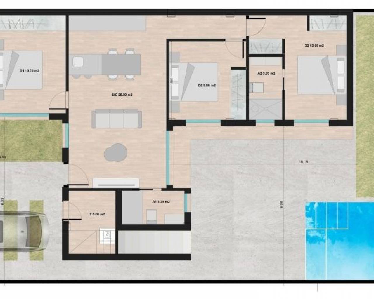 VILLAS PAREADAS DE OBRA NUEVA EN ROLDAN Villas pareadas de obra nueva de 3 dormitorios con aparcamiento en la parte delantera, paredes de piedra, piscina privada trasera, amplio solarium en la azotea y un trastero en Roldán, Torre-Pacheco. Las villas están diseñadas en un nivel con techo elevado a la zona de la cocina, cada villa cuenta con envolvente terraza / zonas de sol en la planta baja y un gran solarium privado en el primer piso para disfrutar de horas de sol, durante todo el año. 3 dormitorios (el principal en suite) y cuarto de baño familiar independiente... diseñadas con un estilo 'eco' contemporáneo y un concepto de planta abierta, que comprende una cocina equipada y un salón-comedor, un trastero en la parte delantera y un patio de verano privado. Las villas están equipadas con una piscina privada trasera con ducha exterior, solarium, zonas de terraza, cocina y baños totalmente equipados con espejo led, armarios forrados con cajones, iluminación interior/exterior, aire acondicionado preinstalado. Las paredes en ángulo y el revestimiento de piedra de la fachada y la escalera hacen que esta villa destaque por su estilo. La urbanización está situada en una zona residencial de Roldán, rodeada de servicios, parques, instalaciones deportivas, dos campos de golf y a sólo 12 minutos de las impresionantes playas del Mediterráneo y el Mar Menor. Se trata de una selecta urbanización de estilo exclusivo, con sólo 20 villas contemporáneas de una sola planta, todas ellas con parcelas de gran tamaño, piscina privada y solárium en la azotea. Roldán en sí es un pueblo tradicional con todos los servicios locales que pueda necesitar, incluyendo supermercados, restaurantes, bares, clínica de salud, farmacia, estación de policía, gasolinera, mecánicos, dentistas, médicos y mucho más. Los cercanos campos de golf de La Torre y Terrazas son de fácil acceso, el aeropuerto de Corvera está a 15 minutos y las playas del Mar Menor a sólo 20 minutos en coche.
