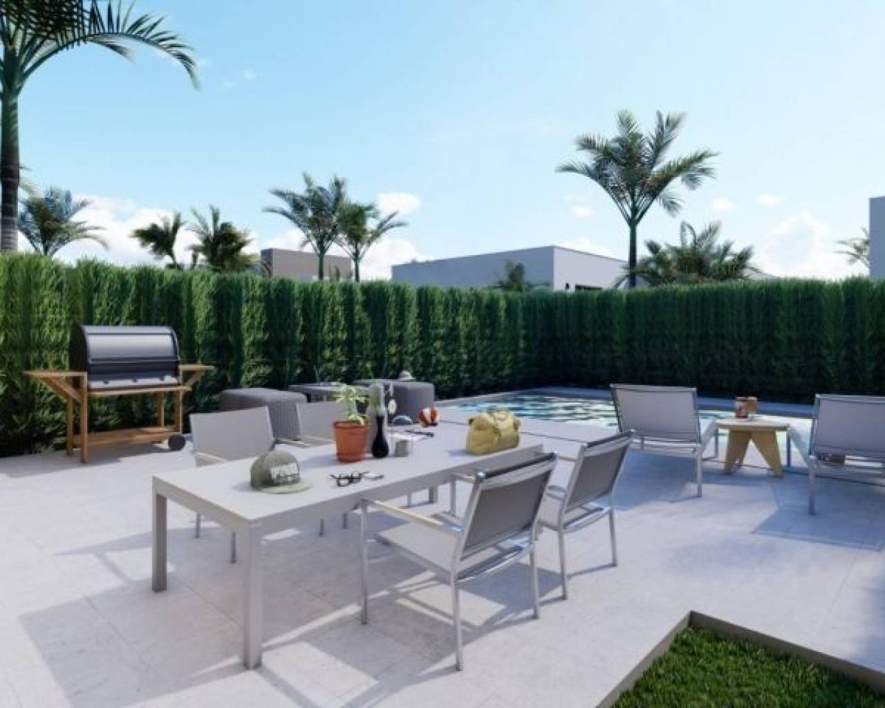 VILLAS DE OBRA NUEVA EN LOS URRUTIAS, MURCIA Villa moderna de nueva construcción a 200m de la playa. El luminosa villa de una planta dispone de 2 dormitorios y 2 baños. El salón da acceso a la terraza con piscina privada de 6m x 3m. La cocina abierta está totalmente equipada con electrodomésticos y menaje estándar. La villa también dispone de un sistema de aire acondicionado (frío/calor) y viene completamente amueblada con cortinas y ropa de cama. El equilibrio entre precio, calidad y ubicación hace que la casa sea ideal como inversión para alquilar. OBLIGATORIO PONER EN ALQUILER VACACIONAL! Este proyecto a pequeña escala es la combinación ideal de propiedad vacacional y de inversión. Si busca tranquilidad y quiere estar a menos de 200 metros de la playa y del paseo marítimo, esta es su ubicación. El proyecto está situado en Estrella de Mar, una urbanización idílica a las afueras del tranquilo pueblo pesquero de Los Urrutias, en el Mar Menor. En esta urbanización encontrará varios restaurantes, un supermercado y bares. Y todos los demás servicios están disponibles en las inmediaciones (iglesia, farmacia, periódicos y mucho más). Urbanización situada a 43 km de Murcia, 16 km de Cartagena y a sólo 10 minutos en coche de Los Alcázares, un típico pueblo costero español donde hay actividad tanto en invierno como en verano. Los Urrutias es un municipio de la comunidad autónoma de Murcia y está situado en la Costa Cálida con vistas a La Manga, la estrecha franja de tierra (22 km de longitud y hasta 1,5 km de anchura) que separa el Mar Menor de las aguas abiertas del Mediterráneo.
