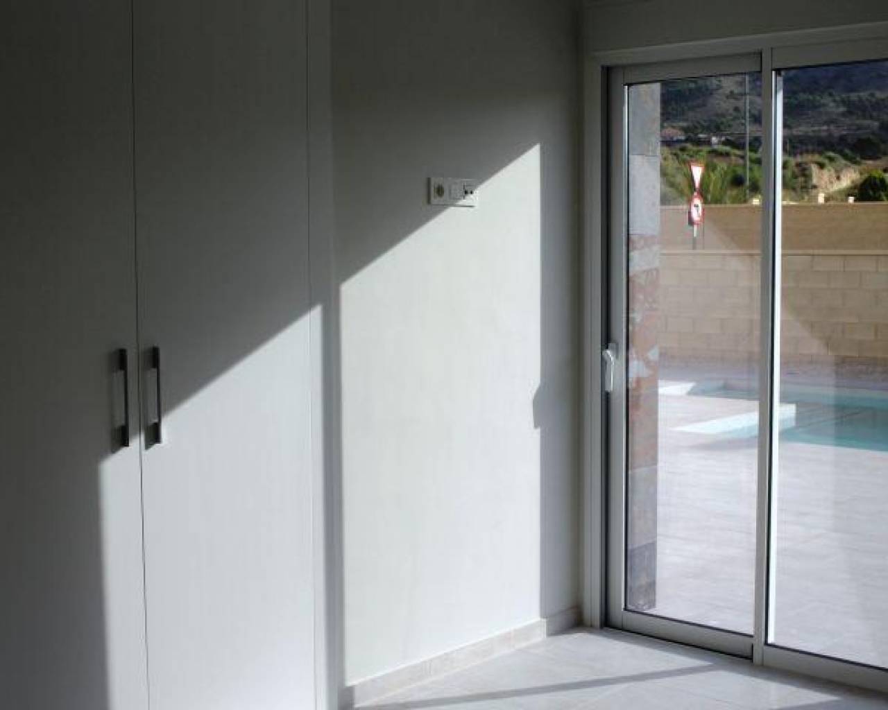 VILLA ENTRE MAR Y MONTAÑA Fantastico Chalet de Obra nueva construido sobre una parcela de 500m2 en La Romana. El chalet tiene una superficie construida de 134.45m2, en una sola planta, con un porche de 18.75m2, un salón-comedor-cocina de 39.80m2, 3 dormitorios, 2 baños, una galería. Incluido en el precio: Electrodomésticos: vitrocerámica, horno, extractor, lavavajillas, frigorífico y lavadora. Aire acondicionado con bomba de calor, instalación + máquina Baños con mueble de baño con espejo, mampara y grifería Cocina con muebles blancos y granito nacional Led interior en toda la vivienda y en el porche Doble acristalamiento, puertas interiores y armarios empotrados blancos. Pavimento alrededor de la vivienda y piscina y zona de aparcamiento de vehículo, grava, céspes y plantas. Puerta de vehículos puerta automática y puerta peatonal. Piscina Si buscas un entorno tranquilo, cerca de pueblos tipicos españoles, rodeado de montañas y a unos 30 minutos del mar, esta es tu casa!