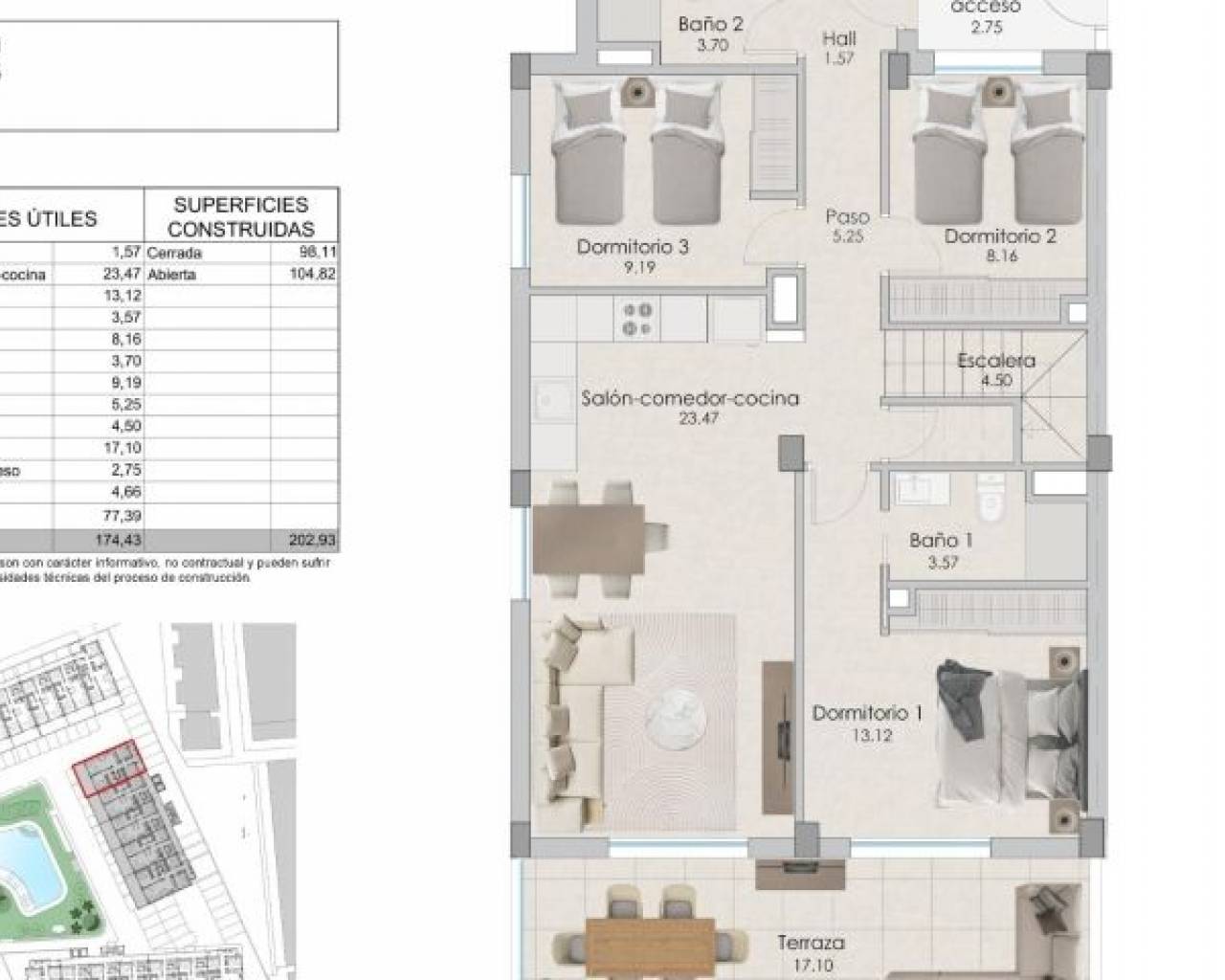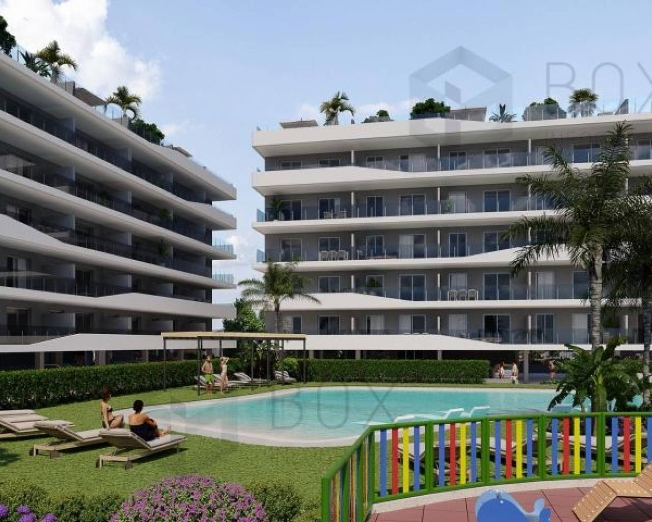 COMPLEJO RESIDENCIAL DE OBRA NUEVA EN SANTA POLA Moderno complejo residencial cerrado compuesto por 3 bloques de apartamentos con amplias zonas comunes ajardinadas que incluyen piscina con camas de agua, parque infantil, pérgola y aparcamiento para bicicletas. El residencial dispone de apartamentos de 3 y 2 dormitorios, ambos tipos incluyen 2 baños completos, cocina americana con salón comedor, armarios empotrados, terraza, plaza de garaje. Disponen de jardín común , piscina con entrada tipo playa, equipada con duchas y una gran pérgola de madera. Dispone de zonas ajardinadas con palmeras y vegetación, todas ellas iluminadas. En la parte central de la piscina hay una zona menos profunda donde se encuentran las camas de agua. El municipio de Santa Pola está situado en la popular Costa Blanca, en el Mediterráneo, al sur de Alicante y en la comarca del Bajo Vinalopó. La ciudad se encuentra en una posición geográfica envidiable, rodeada de paisajes naturales y con un microclima especial, que ofrece un clima suave durante todo el año. Su núcleo urbano está delimitado por el Castillo Fortaleza y el puerto al este y oeste, y limita con el Parque Natural de las Salinas de Santa Pola y la Sierra y Cabo de Santa Pola, un antiguo arrecife hoy caracterizado por sus frondosos pinos de ribera. Santa Pola se encuentra a 21 km. de Alicante, capital de provincia con excelentes infraestructuras y a 15 km. del Aeropuerto internacional "Elche-Alicante".