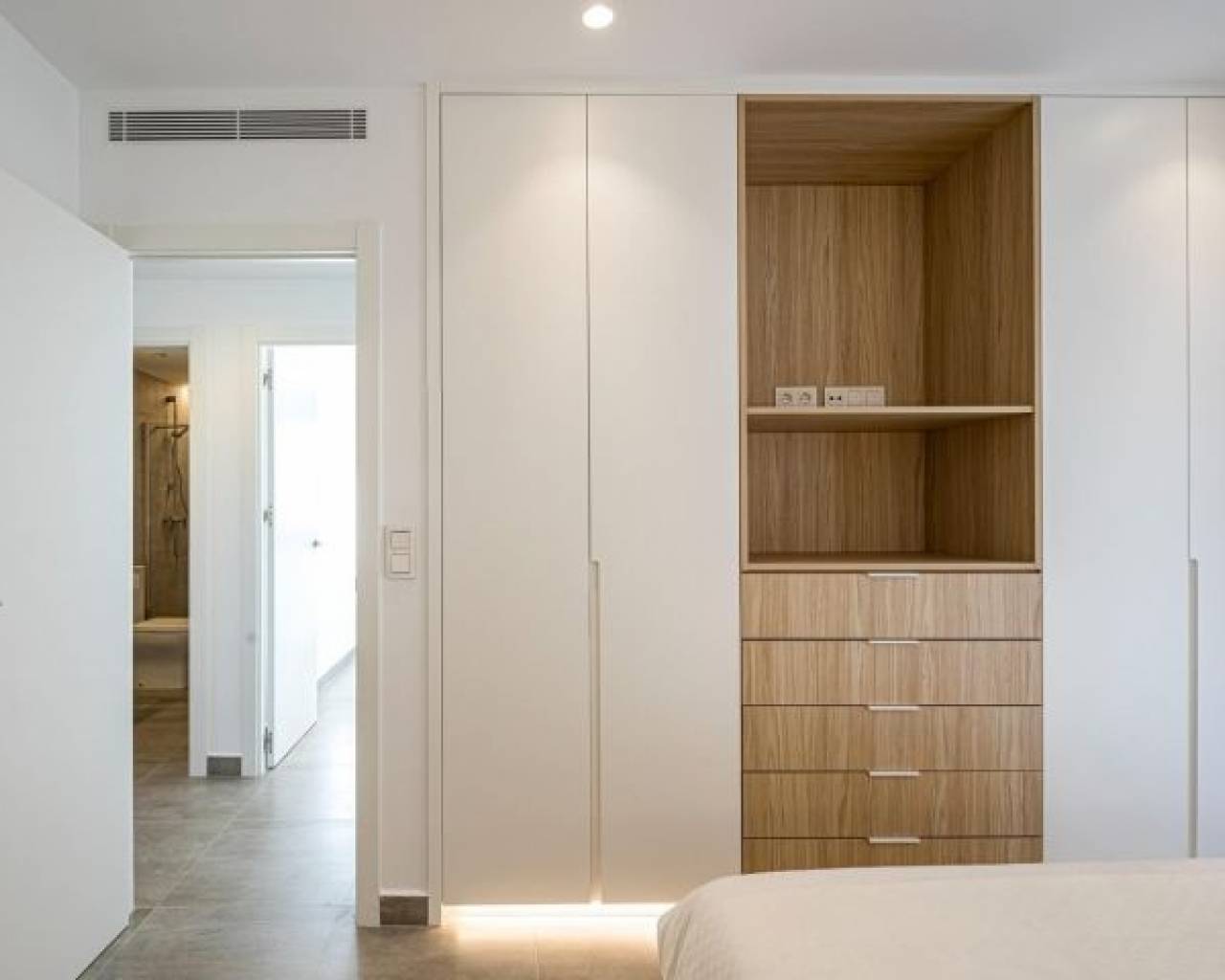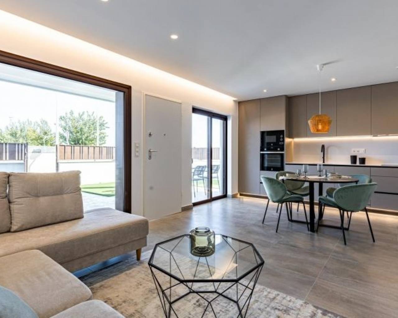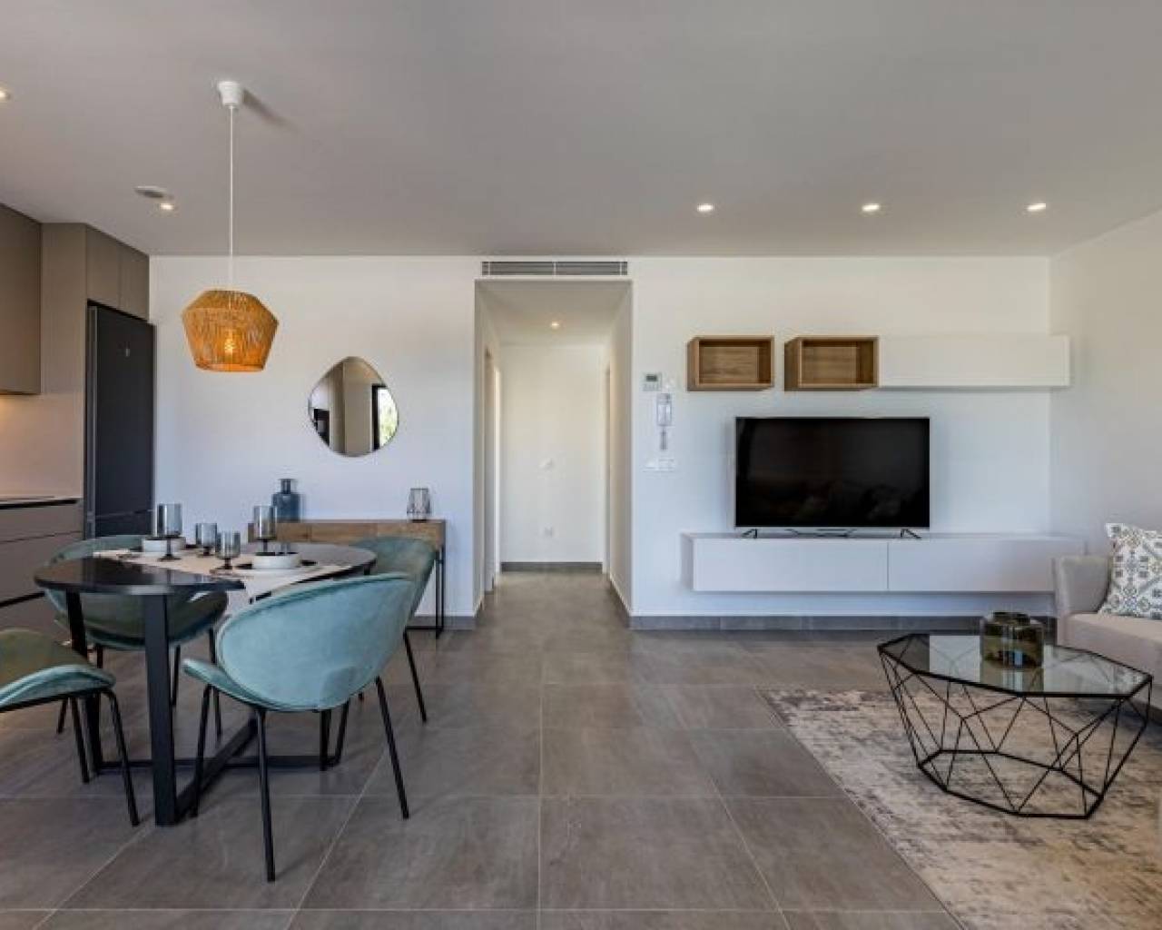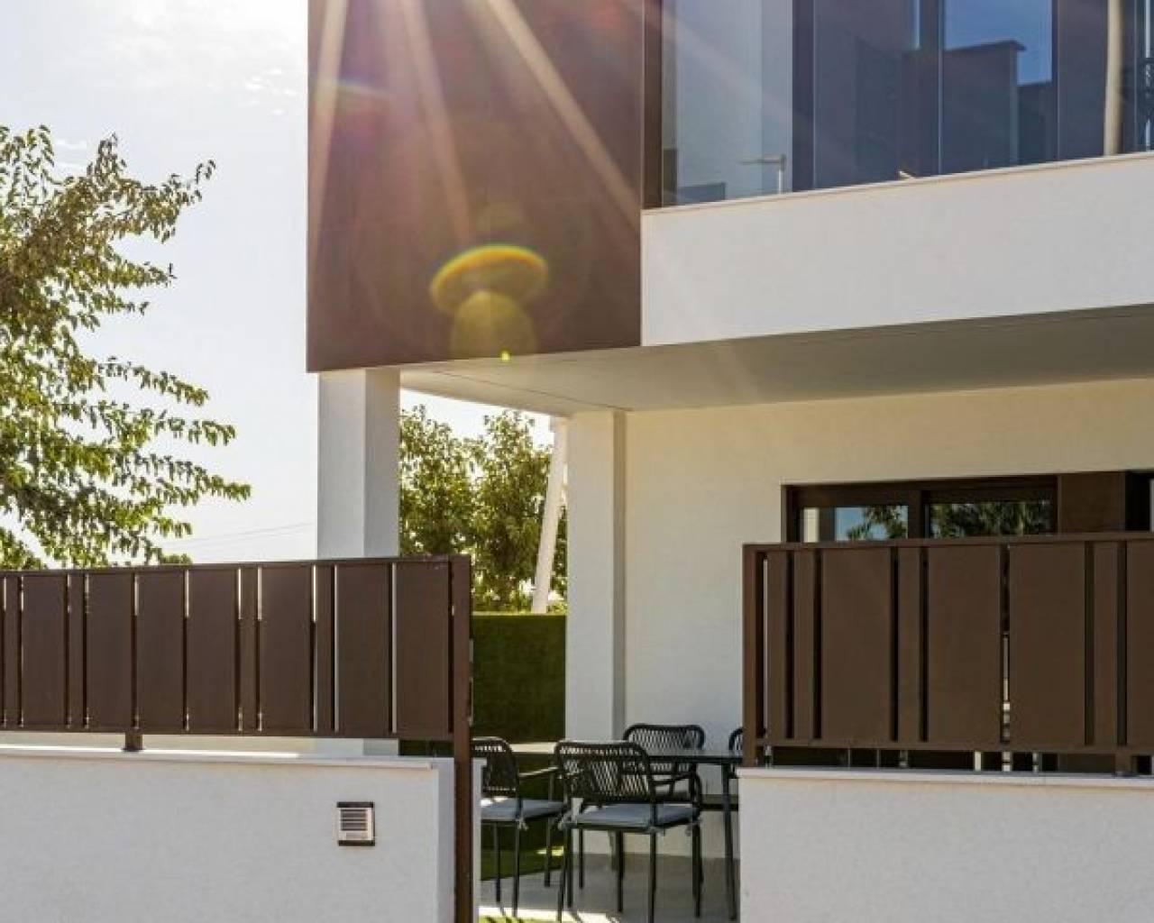 RESIDENCIAL DE OBRA NUEVA DE APARTAMENTOS BUNGALOW EN PILAR DE LA HORADADA Obra Nueva un exclusivo residencial compuesto por 22 apartamentos bungalow de primera calidad con acabados PORCELANOSA en Pilar de la Horadada. Modernos bungalows de 2 dormitorios, 2 baños, cocina americana con salón, armarios empotrados. Las viviendas de planta baja disponen de un amplio jardín acabado en césped artificial y en la planta superior disfrutará del sol todo el año en la terraza y solarium, así como de la zona comunitaria con piscina y una cómoda plaza de aparcamiento. Pilar de la Horadada es un típico pueblo español en la parte más meridional de la Costa Blanca. La gran calle principal tiene supermercados, muchas tiendas, restaurantes y bares y algunas plazas encantadoras. Las hermosas playas de Torre de la Horadada y Mil Palmeras con paseo marítimo de arena fina está a sólo 5 minutos. Los aeropuertos de Corvera (Murcia) y Alicante están respectivamente a 40 y 55 minutos.