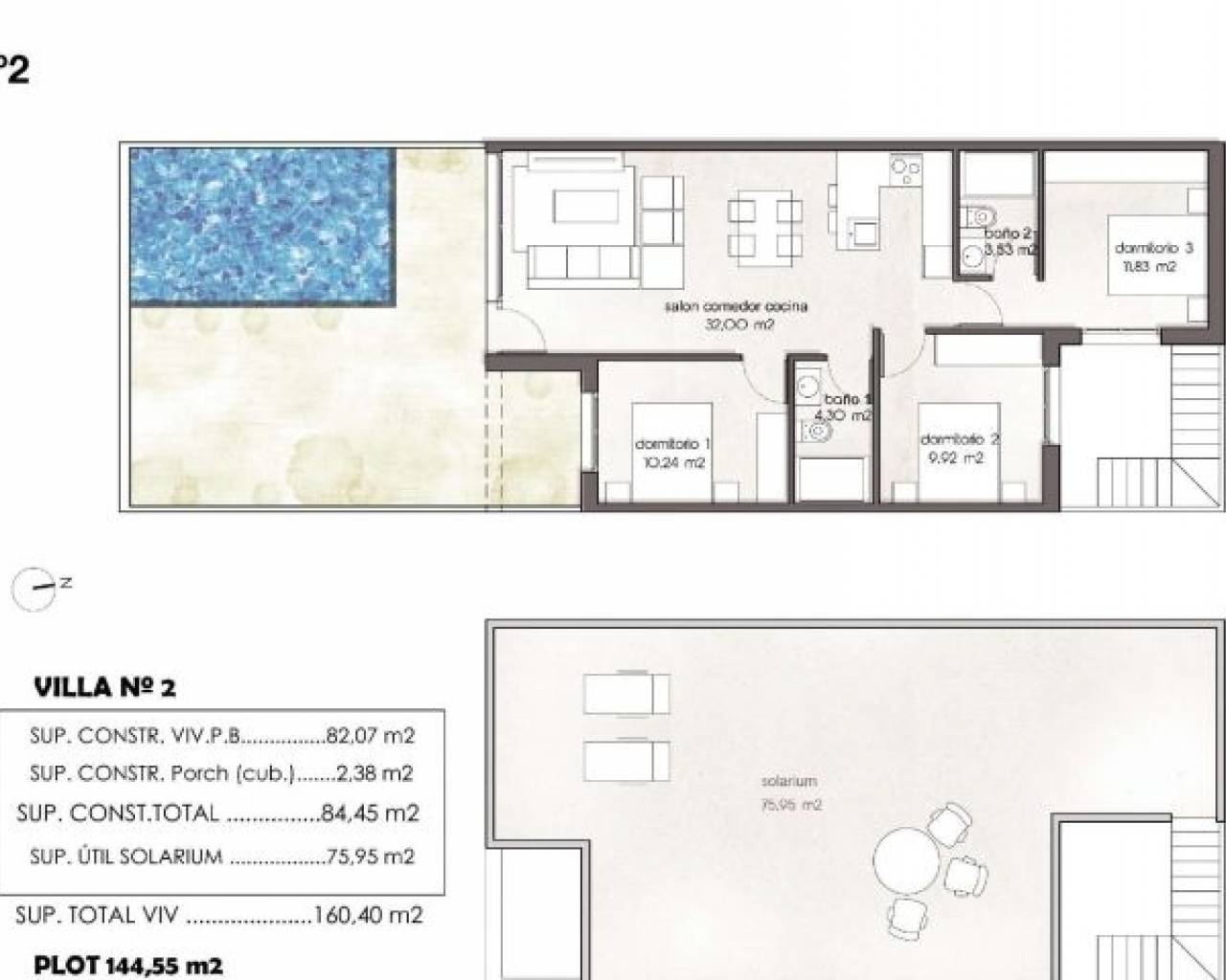 ADOSADOS DE OBRA NUEVA EN PILAR DE LA HORADADA Adosados de obra nueva situados en Pilar de la Horadada. Adosados construidas en 1 planta y dispone de solarium privado, 3 dormitorios, 2 baños, cocina americana con el salón, jardín con plaza de aparcamiento. Posibilidad de piscina privada con coste adicional. Viviendas situadas a pocos metros de todos los servicios y del centro. Pilar de la Horadada es un típico pueblo español en la parte más meridional de la Costa Blanca. La gran calle principal tiene supermercados, muchas tiendas, restaurantes y bares y algunas plazas encantadoras. Las hermosas playas de Torre de la Horadada y Mil Palmeras con paseo marítimo de arena fina está a sólo 5 minutos. En Pilar de la Horadada también hay una red bien desarrollada de carriles bici y senderos para caminar, y también hay una gran oferta de diversas actividades deportivas. El campo de golf Lo Romero, de 18 hoyos, se encuentra a un corto trayecto en coche. Los aeropuertos de Corvera (Murcia) y Alicante se encuentran a 40 y 55 minutos respectivamente.