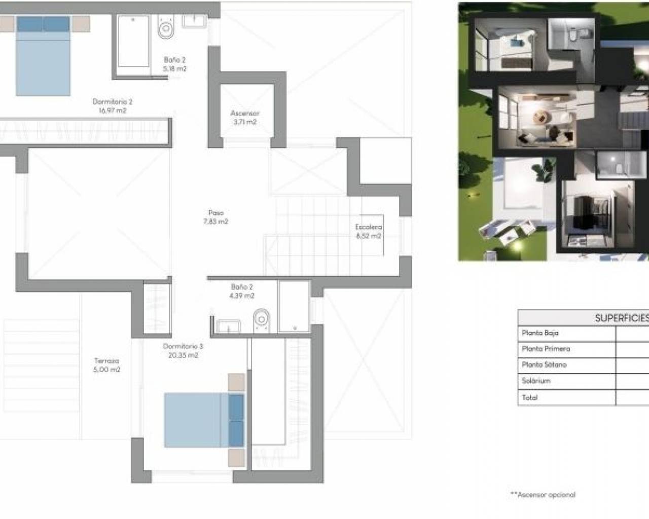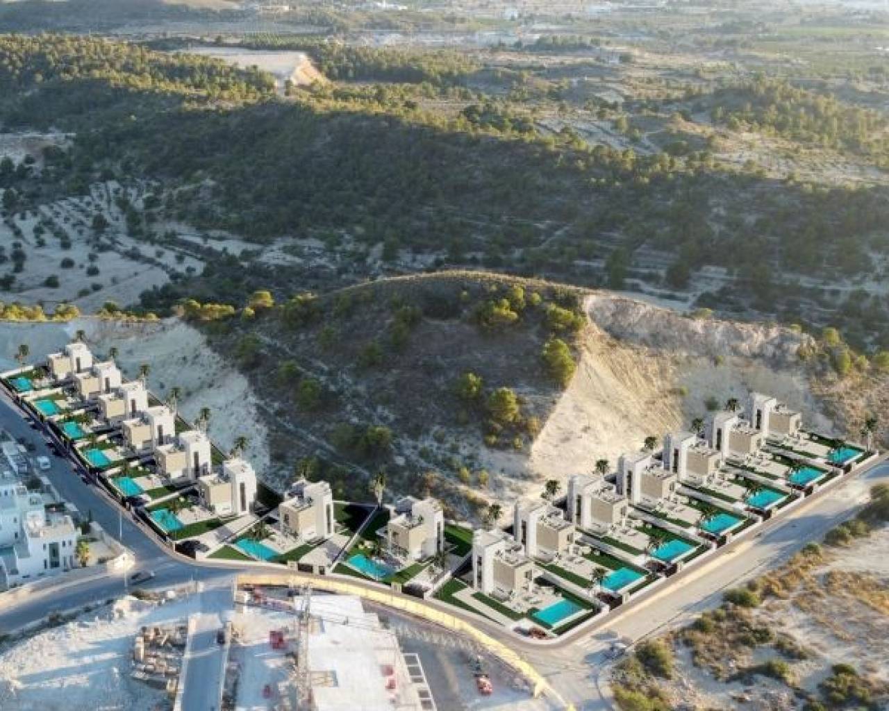VILLAS DE OBRA NUEVA EN FINESTRAT Villas de obra nueva situados en Balcon de Finestrat. Nueva construcción de 15 villas de lujo totalmente independientes en un entorno único cerca de las mejores playas del Mediterráneo y de todos los servicios. Las villas se distribuyen en 2 plantas y disponen de 3 dormitorios, 3 baños, cocina americana con salón, armarios empotrados, solarium privado, jardín con piscina y aparcamiento para 2 coches. Un sótano opcional y ascensor a un costo adicional. Villas situadas cerca de 2 campos de golf, parques temáticos, un gran centro comercial y a pocos minutos de las playas de Benidorm. Finestrat situado en la comarca de la Marina Baixa de la Costa Blanca, cerca de la vecina Benidorm y a unos 40 kilómetros de la ciudad de Alicante y del aeropuerto internacional. Benidorm está a sólo cinco minutos en coche de las propiedades y ofrece todos los servicios que pueda necesitar, incluyendo tiendas, bares, restaurantes, supermercados, bancos, farmacias y varias escuelas privadas internacionales. Cerca de las playas de Levante, Poniente y Cala de Finestrat, con más de 6km de longitud que se encuentran entre las mejores de Europa galardonadas por la Unión Europea con Banderas Azules. Todos los servicios de ocio como los parques temáticos de Aqua Natura, Terra Mítica, Terra Natura, Aqualandia y Mundomar, los campos de Golf Sierra Cortina y Villaitana, senderismo y escalada en el Puig Campana un marco natural incomparable o disfrutar de los deportes náuticos.