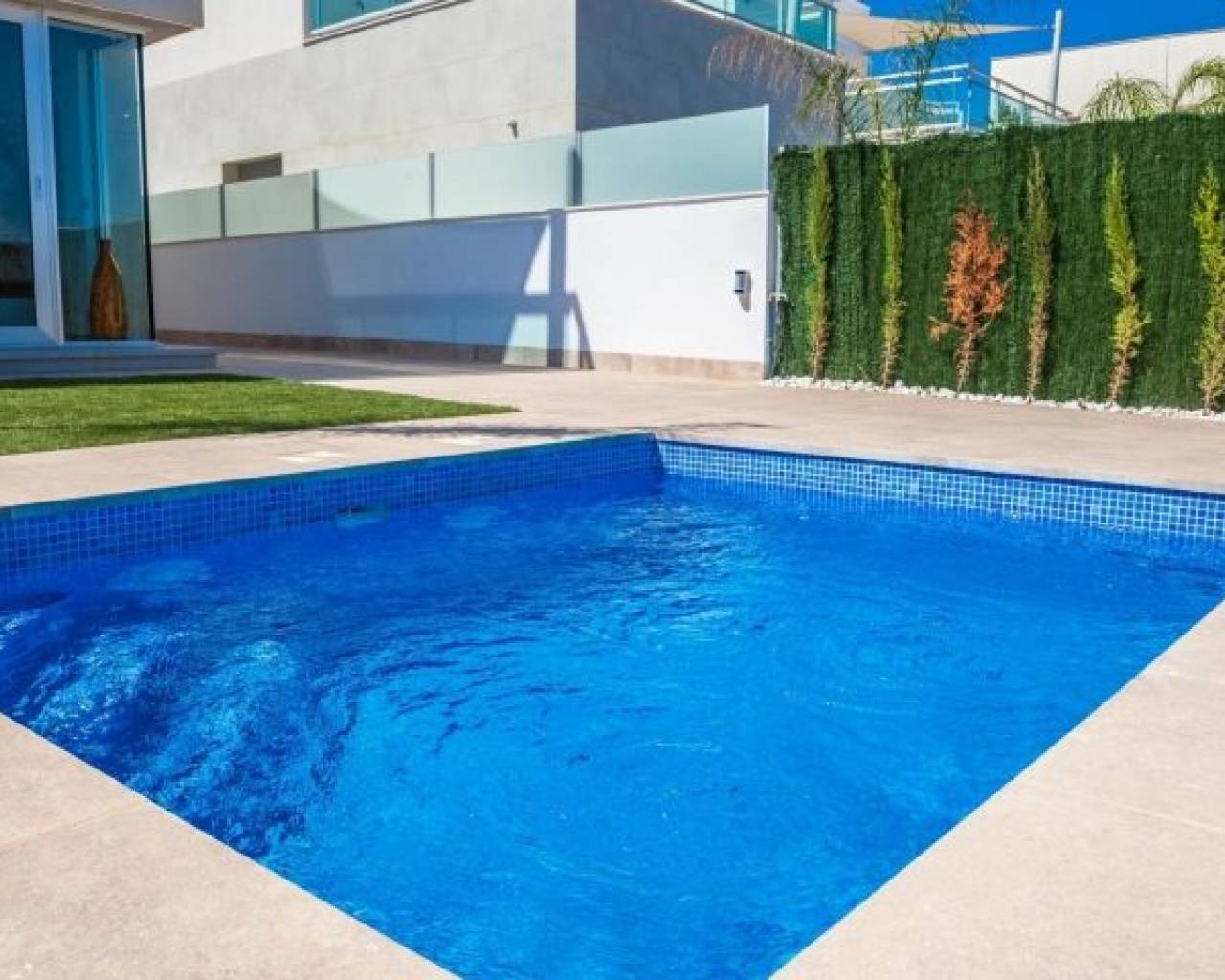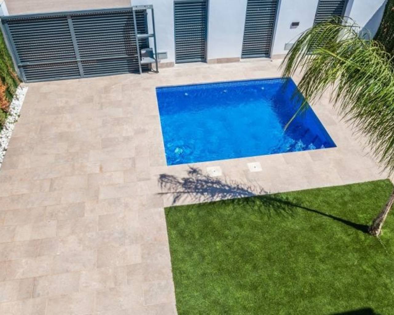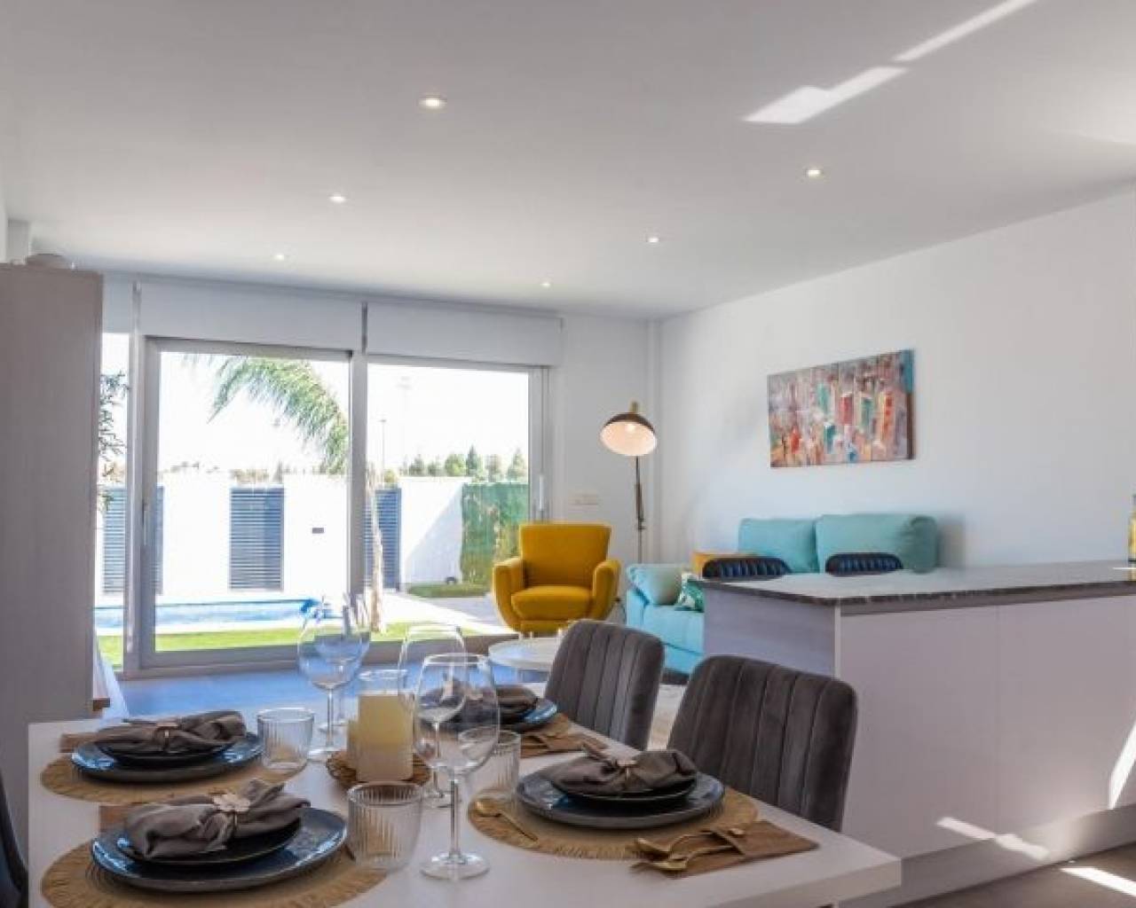 VILLAS DE OBRA NUEVA EN LOS ALCAZARES Villas de obra nueva en Los Alcazares . Hermosas villas tienen 3 dormitorios y 2 baños, cocina americana con el salón, armarios empotrados, jardín privado con piscina, garaje. Cocina equipada con fregadero de acero inoxidable, nevera, lavavajillas, vitrocerámica (3 zonas de cocción), horno y campana extractora. Electrodomésticos de cocina Siemens. Instalación completa de aire acondicionado por conductos en todas las habitaciones. Posibilidad de solarium en la azotea con coste adicional. Residencial de villas situado a 1 km de la playa y de la localidad de Los Alcázares, donde se pueden practicar diversos deportes náuticos, rodeado de varios campos de golf. La zona está conectada a través de autovía con las ciudades de Cartagena, Murcia y Alicante y el resto de playas de la Costa Cálida y la Costa Blanca. Aeropuerto de Murcia Corvera a 20 minutos en coche.