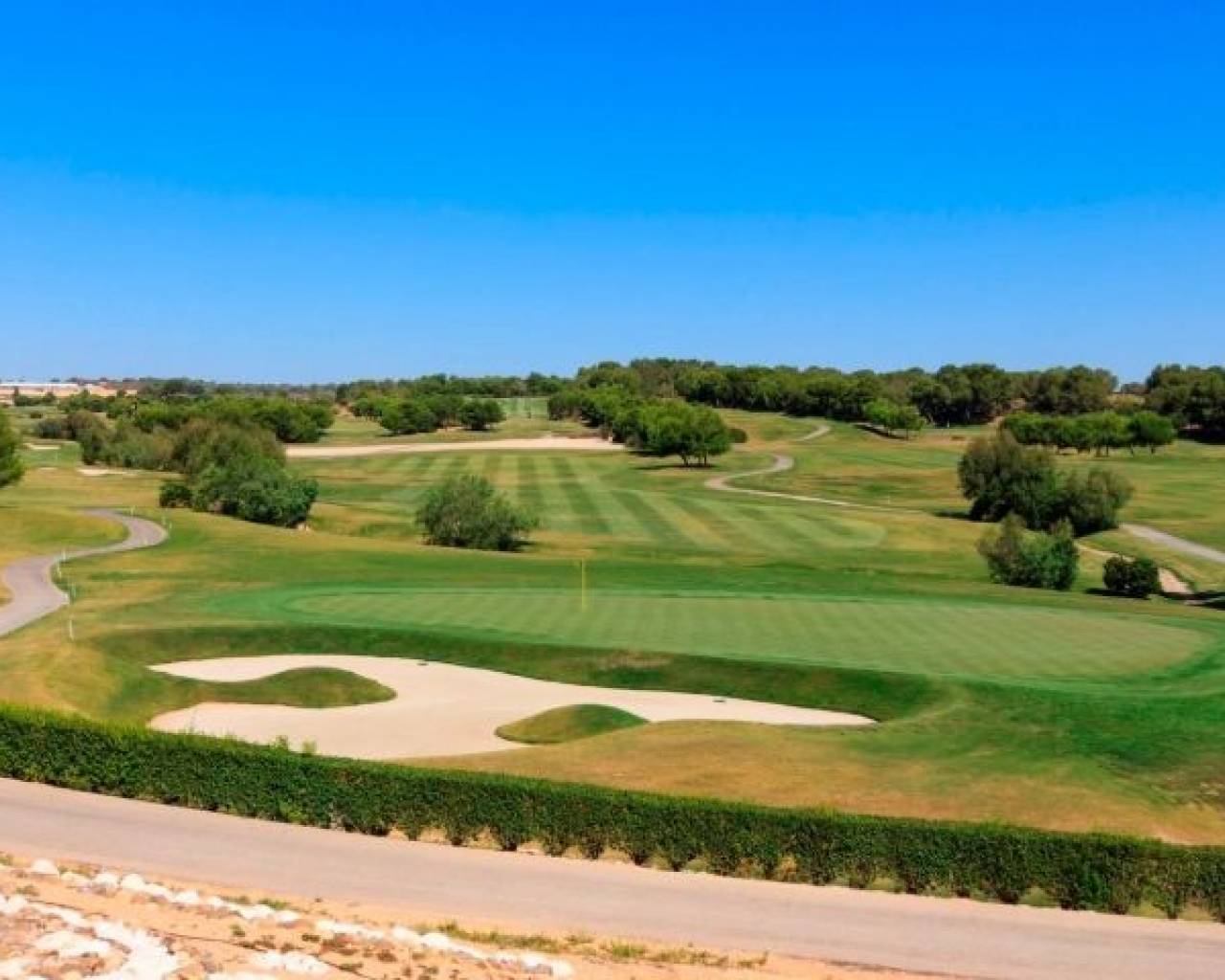 RESIDENCIAL DE OBRA NUEVA EN PILAR DE LA HORADADA JUNTO AL CAMPO DE GOLF El residencial de obra nueva es el lugar perfecto para disfrutar del estilo de vida mediterráneo junto al golf. Un exclusivo complejo residencial de apartamentos, todos con terraza, en planta baja más jardín y áticos más solarium, diseñados para ofrecer el máximo espacio, luz y confort. Además, las viviendas dispondrán de plaza de aparcamiento, piscina comunitaria y zona ajardinada. La sofisticada y moderna arquitectura utilizada, así como su cuidada selección de calidades, hacen de nuestras viviendas proyectos únicos, dirigidos a clientes exigentes, que buscan una buena inversión y calidad de vida. Lo Romero Golf Resort está situado en una zona privilegiada del municipio de Pilar de la Horadada (Alicante), en el corazón de la Costa Blanca. El campo de golf de 18 hoyos se encuentra cerca de hermosas playas de aguas cristalinas y está perfectamente comunicado por carretera con las ciudades de Alicante y Murcia, así como los aeropuertos de Corvera (Murcia) y Alicante se encuentran a 40 y 55 minutos respectivamente. Pilar de la Horadada es un típico pueblo español en la parte más meridional de la Costa Blanca. La gran calle principal tiene supermercados, muchas tiendas, restaurantes y bares y algunas plazas encantadoras. Las hermosas playas de Torre de la Horadada y Mil Palmeras con paseo marítimo de arena fina está a sólo 5 minutos.
