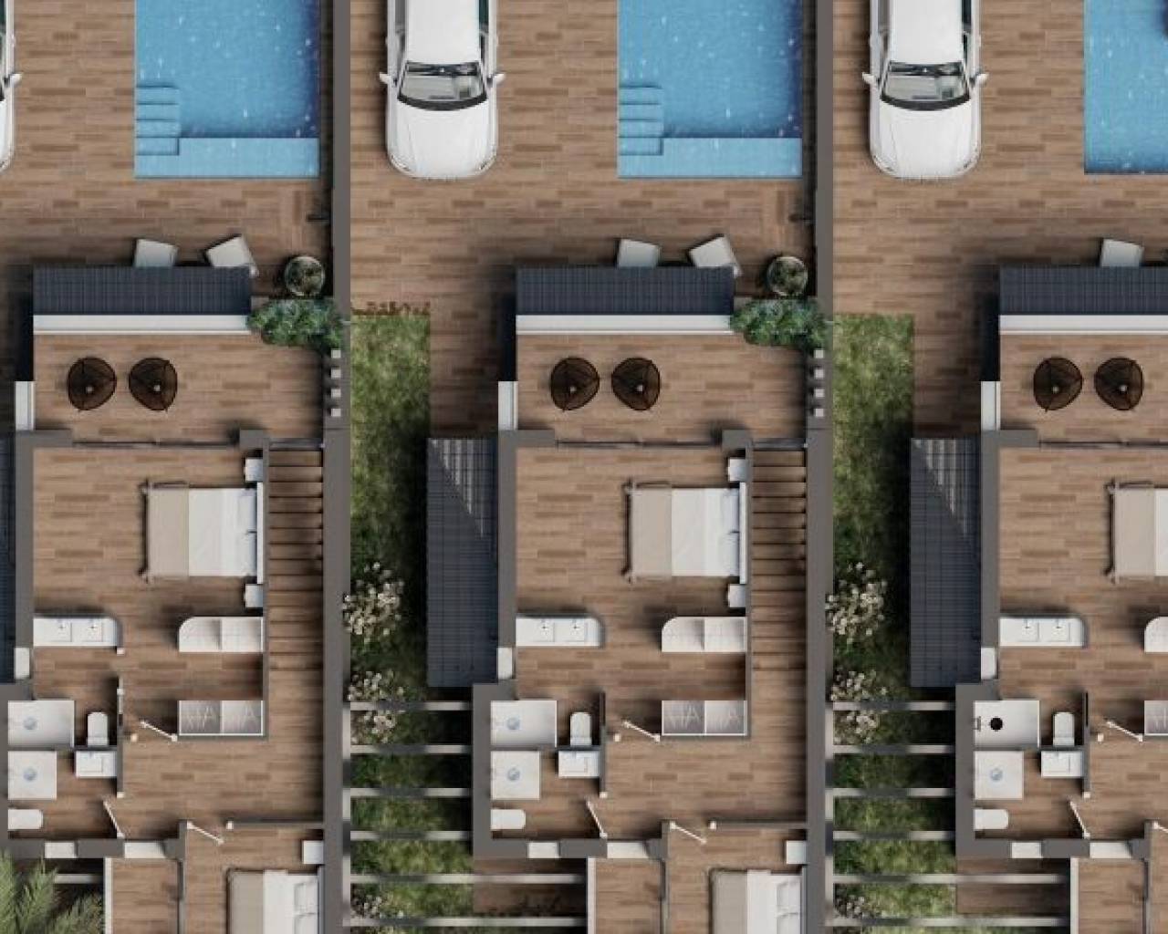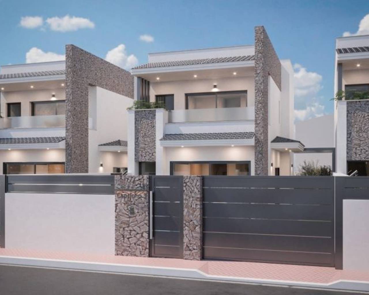 Villas de lujo en San Pedro del Pinatar - Vida moderna en una ubicación privilegiada Vista general de las impresionantes villas de nueva construcción Descubra el epítome de la vida de lujo en San Pedro del Pinatar con estas excepcionales villas de nueva construcción. Cada villa ha sido cuidadosamente diseñada con una meticulosa atención al detalle, ofreciendo interiores espaciosos e iluminados por el sol que combinan estilo y confort. Estas villas cuentan con una sala de estar de planta abierta, comedor y cocina, creando un flujo continuo en todo el espacio de vida principal. Con 3 dormitorios, incluyendo una suite principal con vestidor y baño privado, estas casas son perfectas para aquellos que buscan elegancia y funcionalidad. Espacios exteriores privados y servicios de alta gama Cada villa está situada en una parcela privada de aproximadamente 200 metros cuadrados, lo que proporciona un amplio espacio para la vida al aire libre y la relajación. La propiedad incluye una piscina privada, perfecta para disfrutar de los cálidos días mediterráneos, y una zona de aparcamiento designada. Un amplio solárium privado ofrece un hermoso espacio para tomar el sol, entretenerse o simplemente disfrutar de la tranquilidad del entorno. Estas villas ofrecen un estilo de vida de alta calidad con servicios de primera calidad y comodidades modernas en una de las zonas costeras más deseadas de España. Ubicación privilegiada en San Pedro del Pinatar San Pedro del Pinatar es conocido por sus hermosas playas, su vibrante comunidad y su proximidad a servicios esenciales y actividades de ocio. Situadas a sólo 900 m de la playa y de las instalaciones para deportes acuáticos, estas villas permiten a los residentes disfrutar de toda la belleza natural y las oportunidades recreativas de la costa del Mar Menor. Las villas también están convenientemente cerca de una amplia gama de servicios locales, incluyendo tiendas, restaurantes y bares. Los centros comerciales más grandes están a poca distancia en coche, proporcionando a los residentes un fácil acceso a una variedad de opciones de venta al por menor. Proximidad a puntos de interés clave Aeropuerto de Murcia-Corvera: Aproximadamente a 30 km de distancia, ofreciendo cómodas opciones de viajes internacionales y nacionales. Aeropuerto de Alicante: A sólo una hora en coche (unos 85 km), proporcionando acceso a numerosos destinos globales. Varios campos de golf como Lo Romero, Roda Golf o La Serena a poca distancia en coche, perfectos para los entusiastas del golf. Centros comerciales: A 10 minutos en coche del Centro Comercial Dos Mares, que ofrece varias tiendas minoristas, restaurantes y opciones de entretenimiento. Playas del Mar Menor: A sólo 900 m de las villas, estas costas de arena son ideales para relajarse, nadar y realizar actividades acuáticas. Experimente el encanto de San Pedro del Pinatar San Pedro del Pinatar ofrece el encanto de una ciudad costera tradicional española a la vez que todas las comodidades modernas. Su estratégica ubicación cerca del Mar Menor y de la Costa Cálida garantiza un fácil acceso a hermosas playas, servicios de alta calidad y una vibrante cultura local, lo que la convierte en el lugar ideal al que llamar hogar.