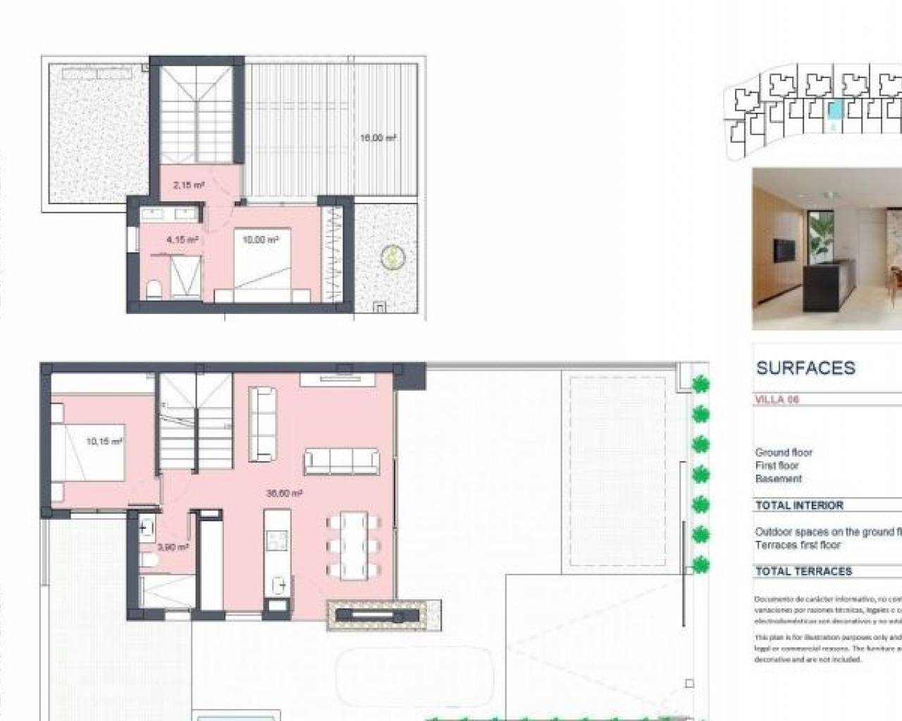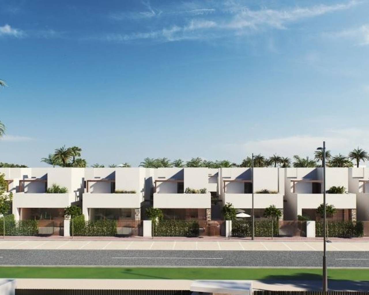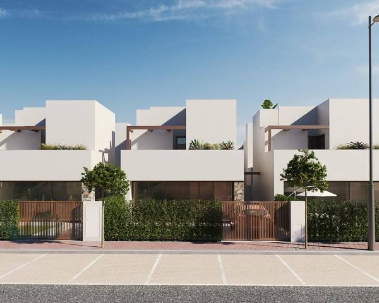 Villas de nueva construcción en un exclusivo complejo cerrado en Murcia, cerca de la playa del Mar Menor Ubicación privilegiada en el corazón de la costa murciana Descubra lujosas villas de obra nueva en un complejo privado de la región de Murcia, conocido por sus excepcionales campos de golf y su proximidad al Mar Menor. Situadas a sólo 10 minutos de hermosas playas de arena, estas villas ofrecen una mezcla perfecta de relajación costera y oportunidades de ocio. Situado cerca de Los Alcázares, una vibrante ciudad costera conocida por sus deportes acuáticos y sus restaurantes junto a la playa, este complejo ofrece fácil acceso al aeropuerto de Murcia, a sólo 22 km de distancia, y a la histórica ciudad de Cartagena, a sólo 15 km del complejo. Amplias y modernas villas con características premium Cada villa está cuidadosamente diseñada en tres plantas, proporcionando un amplio espacio y una cómoda distribución. Con 2 ó 3 dormitorios y 2 baños, estas casas son ideales tanto para familias como para parejas. La cocina abierta se funde a la perfección con el comedor y el salón, creando un ambiente luminoso y diáfano. Las características clave incluyen armarios empotrados, sótano privado, solarium opcional y jardín privado con piscina opcional y plaza de aparcamiento. Servicios de lujo y acabados de alta calidad Todas las villas están construidas con materiales y acabados de alta gama: Un espacioso sótano Suelo porcelánico interior-exterior con tratamiento antideslizante en el exterior Preinstalación de aire acondicionado por conductos Sistema de bomba de calor aerotérmica para agua caliente y suelo radiante eléctrico en baños Elegantes cocinas con armarios panelados y electrodomésticos empotrados, incluyendo vitrocerámica, campana extractora, horno integrado y microondas Paquete de iluminación LED y sistema domótico estándar para una vida moderna Persianas eléctricas en los dormitorios Estilo de vida de resort con instalaciones recreativas inigualables Este exclusivo complejo cerrado está diseñado en torno a una amplia zona verde de 126.000 m², que ofrece senderos para caminar y montar en bicicleta, instalaciones deportivas, pistas de pádel y tenis, un campo de minigolf, parques para perros y zonas de ocio. En el corazón del complejo hay un impresionante lago cristalino de 17.000 m² con playas de arena blanca, que evoca un ambiente caribeño en el corazón de Murcia. Dos islas dentro del lago cuentan con un bar y chiringuitos de playa para un retiro relajante cerca de casa. Cerca de atracciones y puntos de interés clave Esta ubicación estratégica ofrece fácil acceso a los puntos de interés cercanos, entre los que se incluyen: Playa de Los Alcázares: 4 km Aeropuerto de Murcia: 22 km Cartagena: 15 km Campos de golf en los alrededores para los entusiastas del golf Estas villas de nueva construcción en Murcia son la elección ideal para aquellos que buscan lujo, privacidad y una mezcla de estilos de vida activos y llenos de ocio, todo ello dentro de un complejo que ofrece un incomparable sentido de comunidad y tranquilidad.