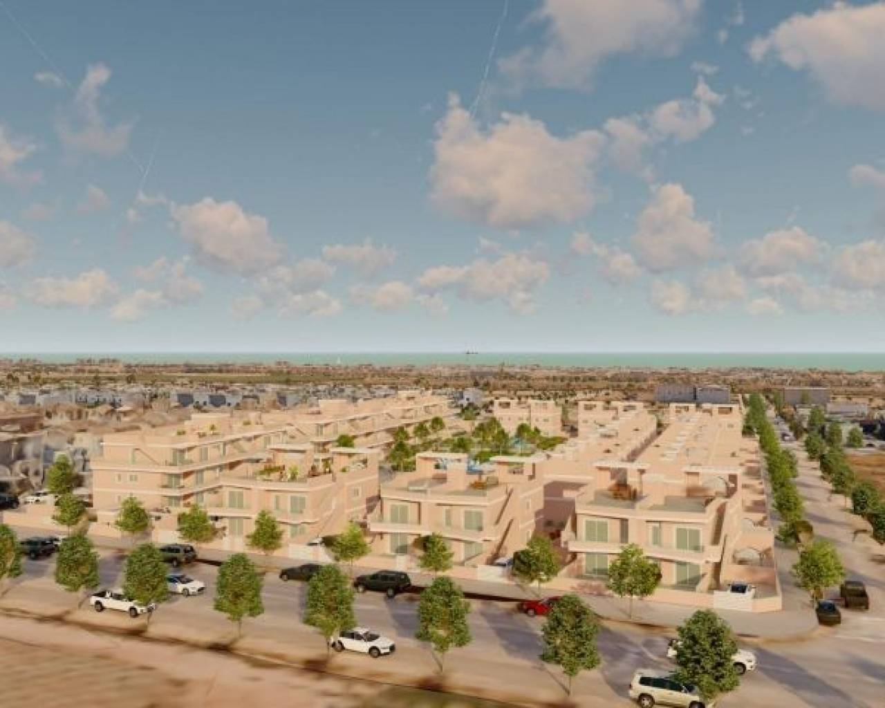 Exclusivo Residencial de Obra Nueva en Pilar de la Horadada, Costa Blanca Viviendas Modernas Cerca del Mar Descubra este nuevo complejo residencial en Pilar de la Horadada, una ubicación privilegiada en la Costa Blanca. A solo 2 km de la playa, este proyecto ofrece una amplia variedad de viviendas de 3 dormitorios y 2 baños, con aparcamiento privado incluido en el precio. El residencial cuenta con amplias zonas comunes, incluyendo una piscina comunitaria, jardines paisajísticos y una zona de juegos infantiles, ideales para el disfrute de toda la familia. Diferentes Tipologías para Adaptarse a su Estilo de Vida Esta promoción ofrece diversas opciones de vivienda: Plantas bajas con jardín privado. Apartamentos en planta intermedia con amplias terrazas. Áticos con solárium privado. Bungalows en planta baja con jardín privado. Bungalows en planta alta con jardín y solárium privado. Adosados y pareados con jardín y solárium. Todas las viviendas han sido diseñadas con un estilo moderno y funcional, utilizando materiales de alta calidad y acabados contemporáneos. Equipamiento y Calidades Las viviendas cuentan con: Preinstalación de aire acondicionado por conductos. Carpintería exterior de aluminio con rotura de puente térmico y doble acristalamiento. Puerta de acceso acorazada para mayor seguridad. Sistema de aerotermia para producción eficiente de agua caliente. Armarios empotrados con iluminación LED. Muebles de baño y mamparas incluidos. Pilar de la Horadada: Un Lugar Privilegiado para Vivir Pilar de la Horadada es un municipio costero en el extremo sur de la Costa Blanca, con un clima excepcional y una excelente calidad de vida. Su animada calle principal ofrece una amplia variedad de tiendas, supermercados, restaurantes y servicios esenciales. A solo 5 minutos en coche, encontrará las impresionantes playas de Torre de la Horadada y Mil Palmeras, con arena dorada y un encantador paseo marítimo. Además, la zona cuenta con carriles bici, rutas de senderismo y múltiples actividades deportivas. Distancias a Puntos Clave Campo de golf Lo Romero – 5 km (10 minutos en coche). Aeropuerto de Corvera (Murcia) – 40 km (40 minutos en coche). Aeropuerto de Alicante – 55 km (55 minutos en coche). Centro Comercial Zenia Boulevard – 15 km (15 minutos en coche). Puerto Deportivo Torre de la Horadada – 3 km (5 minutos en coche). Solicite Más Información Hoy Mismo No deje pasar esta oportunidad de adquirir una vivienda de obra nueva en una de las mejores zonas de la Costa Blanca. Contáctenos ahora para recibir más detalles y concertar una visita.