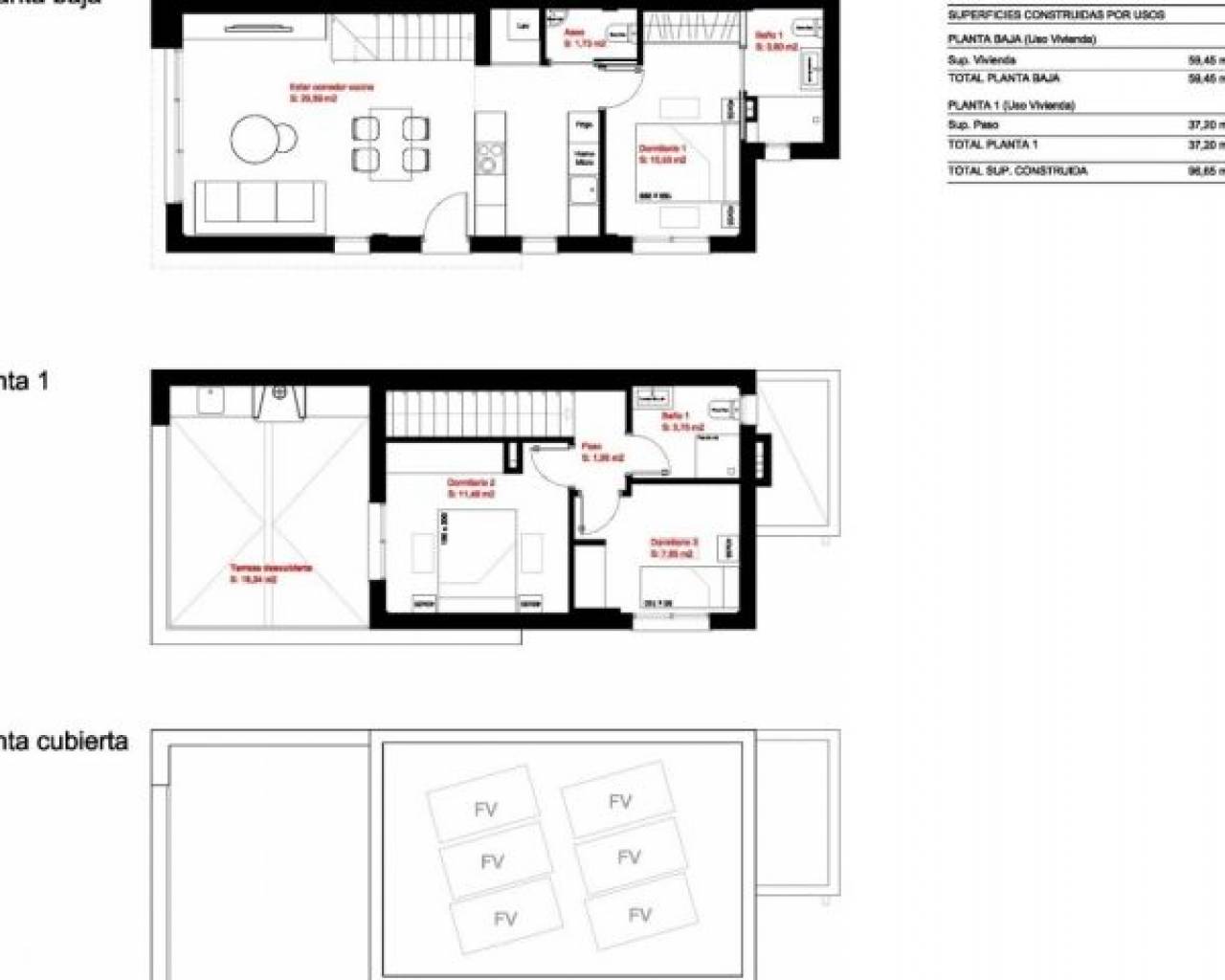 VILLAS ADOSADAS DE NUEVA CONSTRUCCIÓN EN DAYA NUEVA – ENTORNO TRANQUILO CERCA DE LA COSTA Y LOS SERVICIOS DE LA CIUDAD Presentamos hermosas villas adosadas nuevas en la tranquila y recién urbanizada zona de Daya Nueva. A un corto paseo del centro, estas casas ofrecen el equilibrio perfecto entre el encanto rural y la comodidad moderna, ideales para quienes buscan un estilo de vida relajado con fácil acceso a los pueblos cercanos y a la costa. Cada villa cuenta con tres dormitorios y dos baños, incluyendo un amplio salón-comedor de planta abierta conectado a una cocina totalmente equipada. La planta baja cuenta con un dormitorio principal con armarios empotrados y baño en suite, mientras que la planta superior ofrece dos dormitorios adicionales con armarios empotrados y un baño familiar. En el exterior, un jardín privado con piscina crea un espacio ideal para disfrutar al aire libre y disfrutar del ocio. Daya Nueva goza de una ubicación ideal en la Vega Baja, ofreciendo tranquilidad lejos del bullicio, a la vez que se encuentra cerca de importantes destinos. El encantador pueblo de Almoradí está a solo 5 minutos y ofrece una amplia gama de tiendas, mercados y servicios. Para quienes deseen explorar más, el histórico pueblo de Orihuela se encuentra a unos 15 minutos al sur, conocido por su rico patrimonio cultural y sus excelentes servicios. La vida costera está a poca distancia, con las impresionantes playas de La Marina del Pinet y Guardamar del Segura a solo 10 minutos en coche. Ambas localidades ofrecen hermosas playas de arena, animados paseos marítimos y una gran variedad de deportes acuáticos y actividades de ocio. Además, las excelentes conexiones por carretera a través de las autopistas A-70 y AP-7 permiten acceder cómodamente al Aeropuerto Internacional de Alicante en unos 25 minutos, y el Aeropuerto Internacional de Murcia también está a poca distancia. Esta ubicación ofrece una combinación excepcional de vida rural tranquila, comodidades de la ciudad cercana y fácil acceso a la hermosa costa de la Costa Blanca.