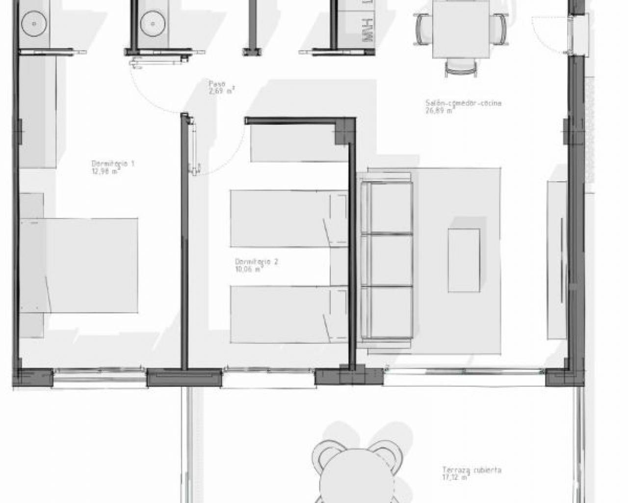 Apartamentos de nueva construcción en Vera Playa, Almería: viviendas modernas cerca del mar Vida contemporánea en Pueblo Salinas, a solo 2 km de la playa Presentamos una impresionante nueva promoción residencial situada en la codiciada zona de Vera Playa, dentro de la exclusiva urbanización Pueblo Salinas. Este moderno complejo ofrece un estilo de vida privilegiado a solo 2 km de las playas de Vera (Almería), con espectaculares vistas al mar y un tranquilo entorno mediterráneo ideal para vivir todo el año o disfrutar de las vacaciones. Viviendas elegantes con comodidad y estilo modernos Esta nueva promoción consta de 60 apartamentos de alta calidad distribuidos en 5 bloques de baja densidad, con solo dos viviendas por planta. Elija entre distribuciones de 2 o 3 dormitorios diseñadas pensando en la funcionalidad, el confort y el estilo. Las opciones incluyen: Plantas bajas con jardines privados Viviendas en plantas intermedias con amplias terrazas Áticos en la última planta con grandes soláriums que incluyen cocina de verano y pérgola con paneles solares. Todas las viviendas cuentan con: Cocinas abiertas totalmente equipadas con frigorífico integrado, lavavajillas, placa de inducción, horno, microondas y campana extractora Espacios diáfanos y luminosos con iluminación LED en toda la vivienda (excepto en los dormitorios) Persianas motorizadas de aluminio en los dormitorios Baños con acabados modernos, incluyendo calefactores para toallas, platos de ducha con mamparas de cristal y muebles empotrados Preinstalación de aire acondicionado por conductos Sistema aerotérmico para una producción eficiente de agua caliente Puerta de entrada de seguridad Excepcionales servicios comunitarios Los residentes disfrutarán de acceso a una amplia gama de servicios diseñados para mejorar el confort y el ocio, entre los que se incluyen: Dos piscinas al aire libre perfectas para los meses de verano Una piscina cubierta climatizada para uso durante todo el año Plaza de aparcamiento privada y trastero incluidos con cada propiedad Preinstalación para la recarga de vehículos eléctricos en las zonas de aparcamiento Ubicación privilegiada con excelentes conexiones Vera Playa es un popular destino costero conocido por sus amplias playas de arena y su estilo de vida relajado. La ubicación de la urbanización ofrece fácil acceso a los servicios y atracciones esenciales: Playa: 2 km Desert Springs Golf Resort: 8 km Centro de Vera: 5 km Puerto deportivo y restaurantes de Garrucha: 6 km Parque Comercial Mojácar: 10 km Aeropuerto de Almería: 85 km (1 hora en coche) Haga de Vera Playa su nuevo hogar Tanto si busca una residencia permanente, un refugio para las vacaciones o una inversión inteligente, estos apartamentos de nueva construcción ofrecen un valor inigualable en una de las zonas más deseadas de la Costa de Almería. Póngase en contacto con nosotros hoy mismo para obtener más información y programar su visita.
