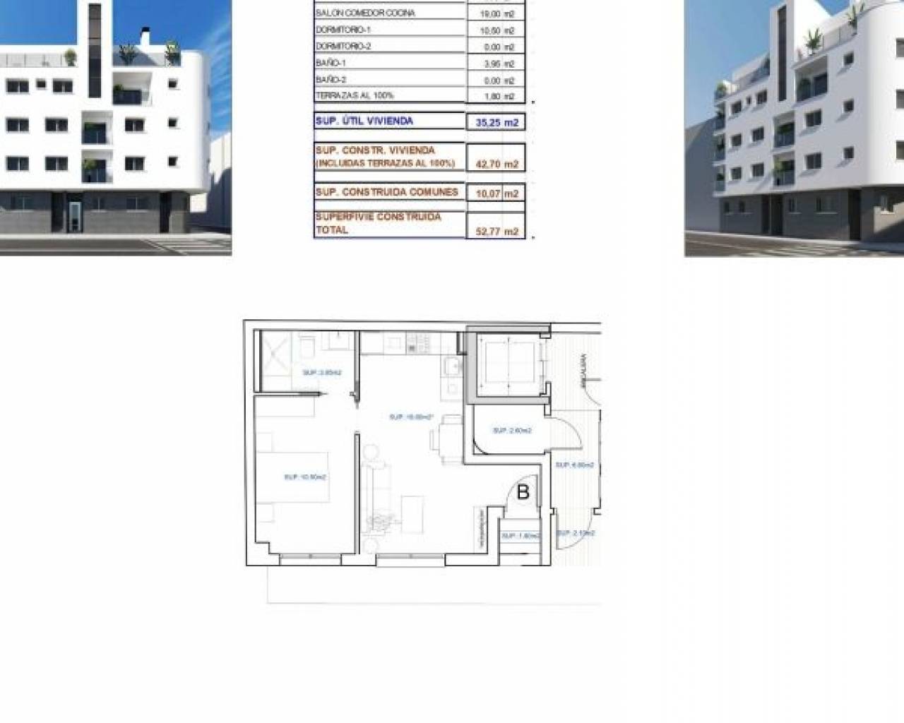 APARTAMENTOS DE OBRA NUEVA EN TORREVIEJA Apartamentos y áticos de obra nueva en Torrevieja. Residencial de obra nueva de 12 exclusivos apartamentos y áticos de 1 y 2 dormitorios, 1 y 2 baños, con cocina americana y salón, amplios armarios empotrados, baños completos con suelo radiante. Todas las persianas de aluminio motorizadas. Puerta de entrada blindada con cerradura de seguridad. Preinstalación de aire acondicionado y calefacción. Complejo residencial de nueva construcción con diseño moderno y acabados de alta calidad cuenta con un precioso solarium comunitario. Torrevieja es una ciudad española de la provincia de Alicante, en la Costa Blanca. Es conocida por su clima típicamente mediterráneo y su costa. Tiene paseos marítimos con complejos turísticos a lo largo de sus playas de arena. El pequeño Museo del Mar y de la Sal alberga exposiciones sobre la historia pesquera y salinera de la ciudad. En el interior, el Parque Natural de las Lagunas de La Mata-Torrevieja cuenta con senderos y dos lagunas saladas, una rosa y otra verde. El aeropuerto de Alicante está a 40 minutos y el de Murcia, a 1 hora.