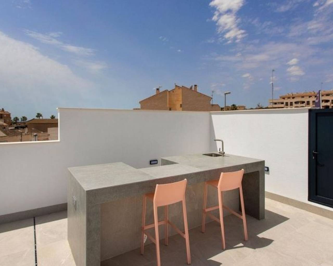 VILLAS PAREADAS DE OBRA NUEVA EN SUCINA Villas pareadas de obra nueva de estilo contemporáneo con un diseño puro y elegante, con una distribución orientada a la luz mediterránea que invade todo el interior de la vivienda. Con zonas de día abiertas en las que la cocina se une al salón, creando un ambiente contiguo delimitado por una isla central, una zona increíble para disfrutar del desayuno o de una comida todos los días. El salón-comedor se une al porche y a la terraza de la piscina, creando un único espacio. Esta villa dispone de 3 dormitorios, 2 baños y un coqueto aseo exterior para dar servicio a la zona de la piscina. El dormitorio principal es muy luminoso, con baño en suite, vestidor y acceso directo a la terraza principal de la casa, donde se encuentra la piscina. El increíble solarium en la parte superior de la casa, la hacen única e ideal para disfrutar del sol todo el año. Un proyecto actual, elegante y construido con calidades a la altura de su diseño, que nos brinda una oportunidad única para una excelente calidad de vida, con espacios abiertos y aire puro. Sucina es un típico pueblo español a pocos kilómetros de las playas de la Costa Cálida y el Mar Menor. En los últimos años ha habido un amplio desarrollo como la popularidad de este hermoso pueblo ha crecido. El aeropuerto de Murcia está a sólo 25 km, y a través de la autopista AP-7, Pista Mediterráneo, el aeropuerto de Alicante está a sólo 45 minutos. Aunque pequeño, las instalaciones del pueblo han crecido para satisfacer las necesidades de una población cada vez mayor y donde el comercio artesanal sigue vivo y bien. Si usted es un amante del golf, aquí tiene una amplia selección de campos de golf en la zona, el más cercano está a sólo 4 km de distancia.