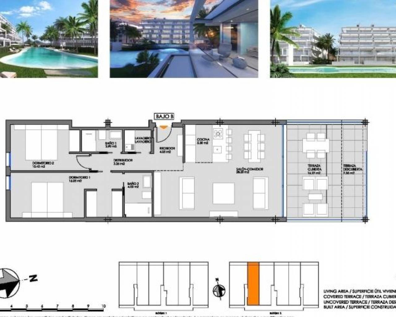 COMPLEJO RESIDENCIAL DE OBRA NUEVA EN MAR DE CRISTAL Moderno complejo residencial de apartamentos y áticos de nueva construcción situado muy cerca del paseo marítimo y de las largas y bonitas playas de arena de Mar de Cristal. Puede elegir entre apartamentos de planta baja con jardín privado, apartamentos de planta media con terraza y áticos con solarium privado. Las viviendas tienen 2 o 3 dormitorios y 2 baños. Los apartamentos tienen un diseño moderno, presentando una zona de estar de planta abierta, que combina la cocina, el comedor y el salón, en un gran espacio con acceso a la terraza. El dormitorio principal tiene un baño privado. Construidos con acabados de primera calidad, armarios empotrados, preinstalación de aire acondicionado por conductos, un trastero y una plaza de aparcamiento subterráneo. Todas las necesidades diarias, como supermercados, bares y restaurantes, están disponibles todo el año y se encuentran cerca del complejo. Mar de Cristal tiene hermosas playas de arena, un centro de tenis, puerto deportivo, supermercados, bares y restaurantes. El parque nacional de Calblanque, donde encontrará largas playas vírgenes de arena blanca, así como el famoso La Manga Club y la bulliciosa ciudad de Los Belones están a 5 minutos en coche de la villa. El aeropuerto de Murcia está a 25 minutos y el de Alicante a 1 hora en coche. También puede visitar las ciudades históricas de Cartagena y Murcia.