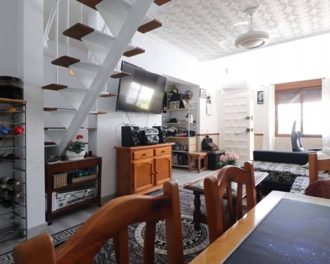 Esta casa adosada de dos dormitorios con orientación sureste en Torreta III se encuentra junto al impresionante lago salado natural, a solo unos minutos a pie de una variedad de cafeterías, bares y restaurantes. El supermercado Carrefour y el centro comercial Habaneras están a solo 5 minutos en coche, mientras que las hermosas playas de Torrevieja se encuentran a solo 10 o 15 minutos. La propiedad se distribuye en dos plantas: la sala de estar principal en la planta baja y las escaleras que conducen a la primera planta. En la planta baja hay una cocina independiente equipada y un práctico aseo. En la planta superior, encontrará dos dormitorios dobles y un moderno baño familiar con ducha. En el exterior, la casa ofrece un jardín delantero de baldosas con aparcamiento privado y una cochera cubierta. Además, incluye trastero, ventiladores de techo y aire acondicionado para mayor comodidad. Ubicada en la Costa Blanca Sur, esta es una gran oportunidad para una casa de vacaciones de bajo mantenimiento o residencia permanente en una zona bien comunicada.