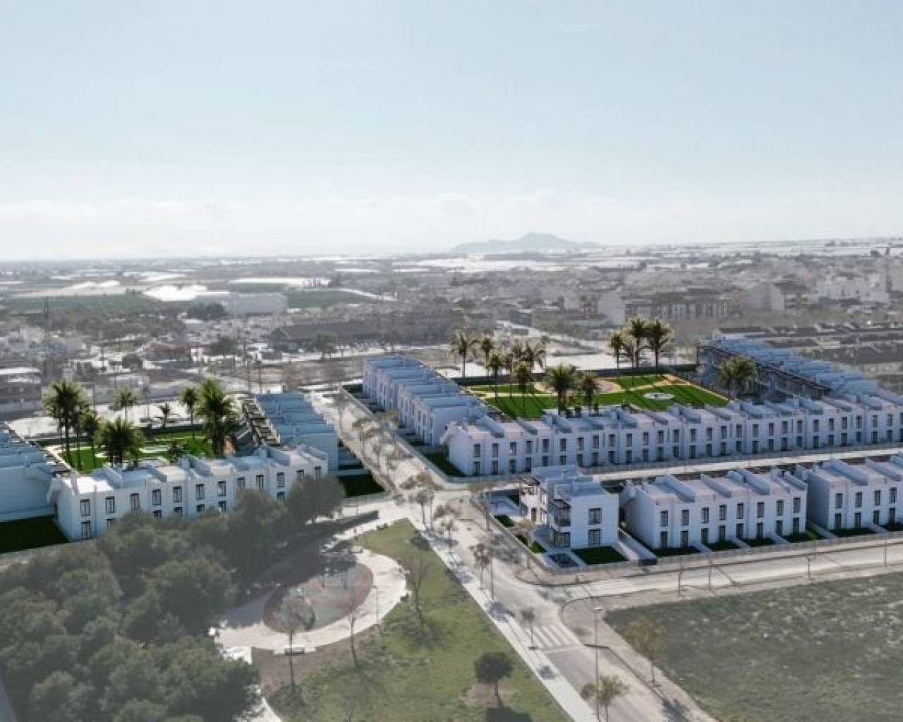 Bungalows de obra nueva en Pilar de la Horadada Viviendas modernas cerca de la playa Descubra este exclusivo complejo residencial de nueva construcción en Pilar de la Horadada, que ofrece bungalows y pareados a menos de 2 km de la playa. Diseñadas para ofrecer confort y estilo, estas viviendas son una excelente oportunidad para disfrutar de la vida en la Costa Blanca. Viviendas amplias y con estilo Esta promoción ofrece viviendas de 2 o 3 dormitorios con 2 baños y aparcamiento privado. Elija entre: Bungalows en planta baja con jardín privado. Bungalows en planta alta con solarium privado. Pareados con sótano y amplias parcelas. Cada propiedad está construida con materiales de alta calidad y modernos acabados, incluyendo: Instalación de aire acondicionado por conductos. Carpintería exterior de aluminio, doble acristalamiento y persianas de aluminio inyectado. Puerta de entrada de seguridad para mayor tranquilidad. Sistema de aerotermia para producción eficiente de agua caliente. Armarios empotrados en dormitorios. Baños totalmente equipados con muebles y mamparas de ducha. Características exclusivas de la comunidad Este complejo residencial privado cuenta con una hermosa piscina comunitaria y jardines paisajísticos, creando un espacio ideal para la relajación. Situado a las afueras del centro de la ciudad, los residentes pueden ir andando a supermercados, restaurantes, bares, colegios y otros servicios esenciales. Ubicación privilegiada en Pilar de la Horadada Pilar de la Horadada es una encantadora ciudad española en la parte más meridional de la Costa Blanca. Ofrece una vibrante calle principal con numerosas tiendas, supermercados, restaurantes y plazas pintorescas. Las impresionantes playas de Torre de la Horadada y Mil Palmeras están a sólo 5 minutos, con arena fina y dorada y un pintoresco paseo marítimo. La ciudad también ofrece carriles bici y rutas de senderismo bien desarrolladas, además de una gran variedad de actividades deportivas. Cómodo acceso a destinos clave Campo de golf Lo Romero - 5 km (10 minutos en coche). Aeropuerto de Corvera (Murcia) - 40 km (40 minutos en coche). Aeropuerto de Alicante - 55 km (55 minutos en coche). Centros Comerciales (La Zenia Boulevard) - 15 km (15 minutos en coche). Puerto Deportivo Torre de la Horadada - 3 km (5 minutos en coche). Asegure hoy la casa de sus sueños No pierda esta fantástica oportunidad de poseer una vivienda a estrenar en una ubicación privilegiada. Póngase en contacto con nosotros hoy mismo para obtener más información y concertar una visita.
