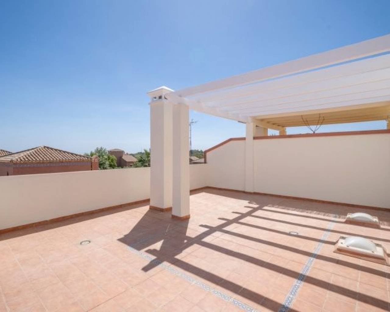 Ubicada en la prestigiosa Ciudad de las Comunicaciones, esta acogedora casa quad combina comodidad, luminosidad y un entorno tranquilo. La vivienda, construida en 2007, cuenta con 63 m² distribuidos en un salón con cocina integrada y chimenea, dos dormitorios con armarios empotrados —uno de ellos con baño en suite— y un segundo baño completo. En el exterior ofrece un porche orientado al este desde el que se divisa la piscina comunitaria, además de aparcamiento privado en la parcela. Uno de los mayores atractivos de la propiedad es su amplio solárium de 47 m², perfecto para disfrutar del sol y de las vistas despejadas. La urbanización, totalmente vallada, dispone de jardines comunitarios muy cuidados y piscina, lo que convierte este lugar en un entorno ideal tanto para vivir todo el año como para disfrutar de las vacaciones.