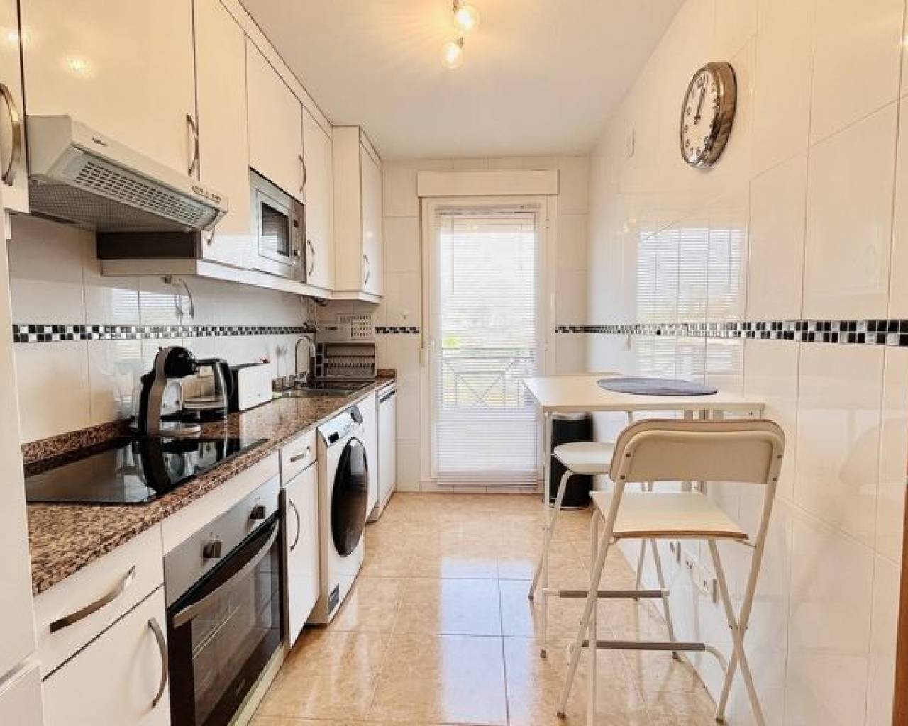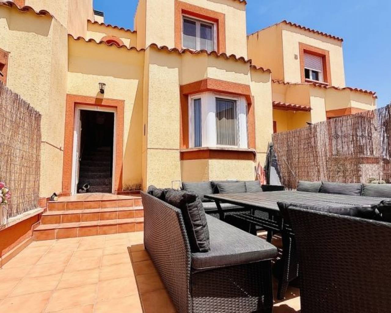 Esta hermosa casa adosada de 3 dormitorios y 2 baños se encuentra en una tranquila comunidad en el corazón de Lomas de Cabo Roig. Gracias a su orientación sur, la propiedad disfruta de la luz natural durante todo el día, creando un ambiente cálido y acogedor. Al entrar, le da la bienvenida una amplia sala de estar que se conecta a la perfección con una cocina totalmente equipada, perfecta tanto para el día a día como para recibir invitados. La casa se vende completamente amueblada, lo que permite una transición fluida e inmediata. El dormitorio principal ofrece serenas vistas al mar, un remanso de paz para relajarse. Salga a la terraza privada para disfrutar de la brisa costera y las pintorescas vistas. Una característica destacada de esta casa adosada es el amplio sótano, que refleja el tamaño de la sala de estar principal. Este versátil espacio ofrece infinitas posibilidades, ya sea que visualice una oficina en casa, un gimnasio o una vivienda adicional. La vida al aire libre es igualmente impresionante, con patios delantero y trasero, perfectos para cenar al aire libre o tomar el sol. La piscina comunitaria está a solo unos pasos, ofreciendo un refrescante escape durante los meses más cálidos. En cuanto a la ubicación, se encuentra a solo 10 minutos a pie de bares, tiendas y restaurantes locales, así como del recién establecido centro comercial de Lomas de Cabo Roig. El famoso bulevar La Zenia está a unos 20 minutos a pie, un centro de compras y entretenimiento. Para los amantes de la playa, las prístinas costas de Orihuela Costa están a tan solo 5 minutos en coche. Esta propiedad representa una oportunidad excepcional para disfrutar de un relajado estilo de vida mediterráneo, ya sea como residencia permanente, escapada vacacional o inversión.
