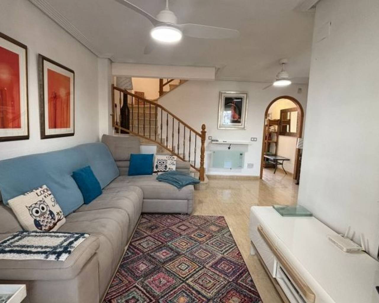 ¡¡¡CASA IMPECABLE PARA VIVIR TODO EL AÑO!!! Si buscas calidad, espacio, diseño y acabado, ¡¡¡ÉSTA ES TU CASA!!! ¡¡¡Lo tiene TODO!!! Situada en zona residencial tranquila, andando a todo tipo de Servicios, como Parada de Bus, Centro Comercial Los Dolses, Centro Comercial Zenia Boulevard, Campo de Golf de Villamartin, a 3 km de Playa de La Zenia. La vivienda se encuentra en complejo cerrado con Piscina y Jardines. Dispone de Terraza Jardín frontal con espacio para coche, Hall, dormitorio doble amplio, Baño completo, Salón muy amplio con Cocina amplia con Ventana y Terraza soleada con acceso directo a Piscina. En Planta superior dispone de Baño completo y dos dormitorios. Uno de ellos es muy amplio, con Terraza amplia acristalada soleada. En Planta superior dispone de 2 Terrazas, una con Vistas al Mar y a Piscina. Muy Buena Inversión. Muy Bien cuidada y decorada.