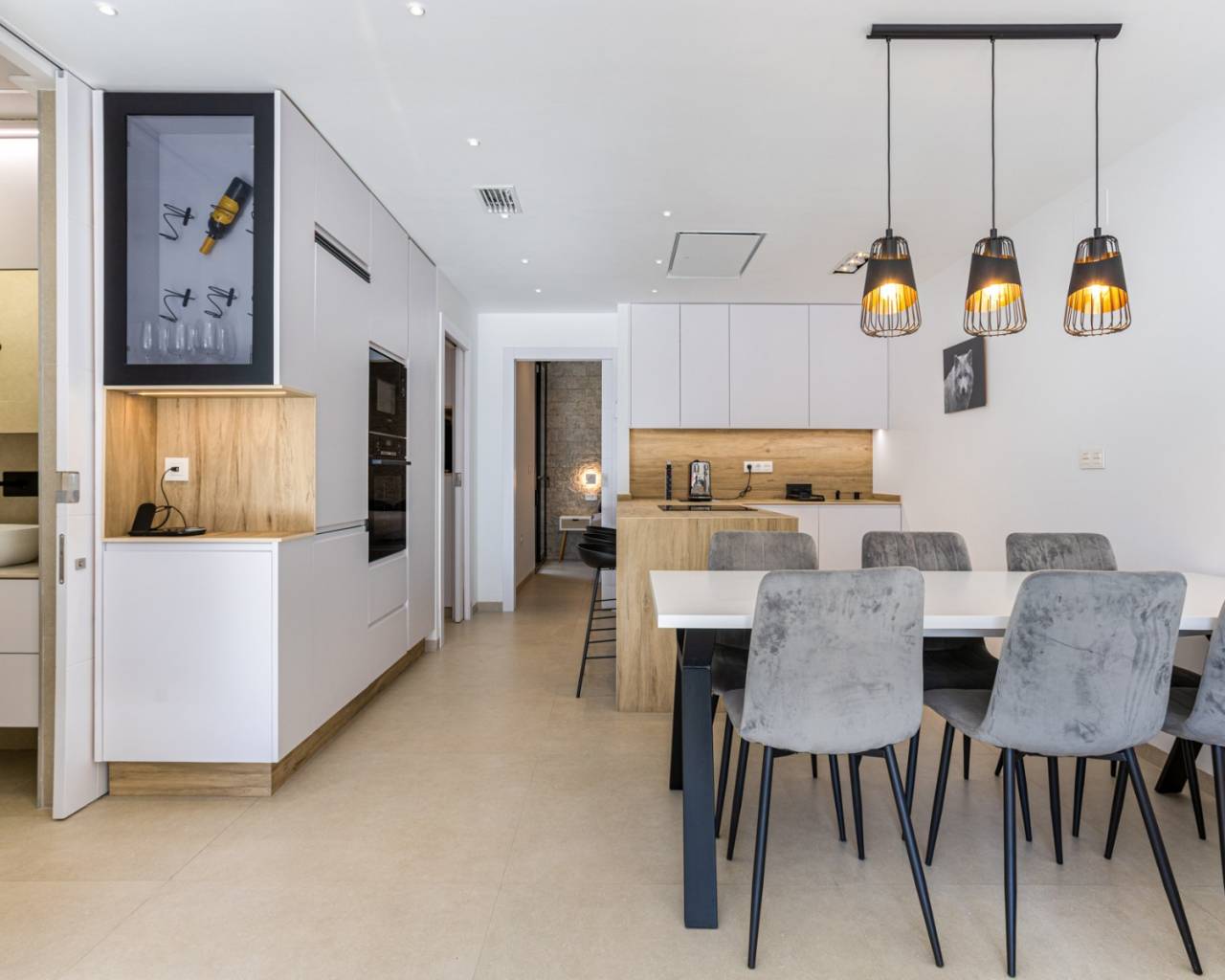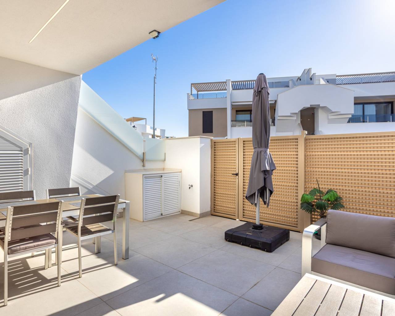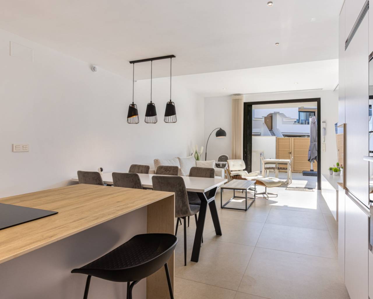 Descubra este hermoso apartamento en planta baja en una de las zonas más deseadas de San Pedro del Pinatar, a pocos minutos del mar y rodeado de todas las comodidades que necesita para una vida cómoda y tranquila o la escapada perfecta. Esta casa de 80 m² presume de un diseño funcional y moderno. Cuenta con tres dormitorios con armarios empotrados, dos baños y una cocina abierta que se integra a la perfección con el salón-comedor, creando un espacio amplio y luminoso, perfecto para reuniones familiares o con amigos. El tercer dormitorio es particularmente único: se accede a él a través de una mampara totalmente corredera que se transforma en una sala de estar adicional en segundos. El salón se abre directamente a una cómoda terraza privada, perfecta para disfrutar del desayuno al aire libre, relajarse con un libro o disfrutar de las cálidas tardes mediterráneas. Servicios que marcan la diferencia: Una piscina comunitaria rodeada de vegetación ofrece un refrescante descanso en los días más calurosos. El agua se calienta mediante paneles solares compartidos, lo que permite su uso durante todo el año. Parking privado en la terraza. Espacio de almacenamiento para espacio de almacenamiento adicional Calefacción por suelo radiante en baños Se ha instalado aire acondicionado (central) para garantizar comodidad durante todo el año. Se entrega amueblado y equipado con electrodomésticos, listo para vivir sin complicaciones. Ubicación ideal: A tan solo 6 minutos en coche de las playas del Mar Menor y del Mar Mediterráneo. A 3 minutos a pie de supermercados, tiendas, restaurantes y zonas recreativas. A 30 minutos del Aeropuerto Internacional de Murcia A 15 minutos de varios campos de golf La ubicación orientada al este proporciona una excelente ventilación y luz natural durante todo el día, manteniéndolo fresco en verano y cálido en invierno. Esta propiedad es perfecta como residencia principal, segunda residencia o inversión para alquiler vacacional. ¡No pierdas la oportunidad de vivir junto al mar y disfrutar de todas las comodidades!