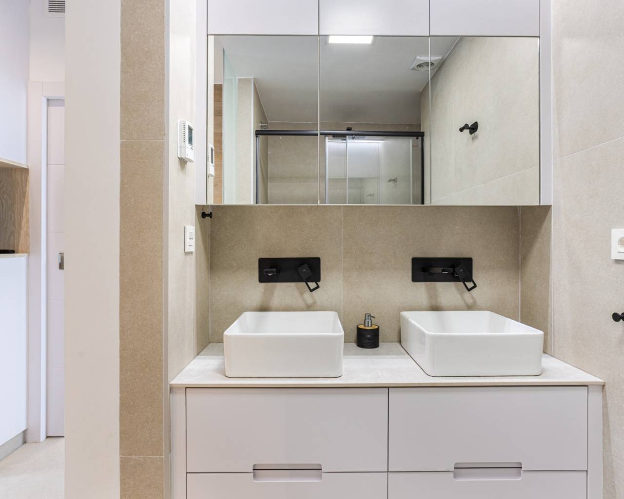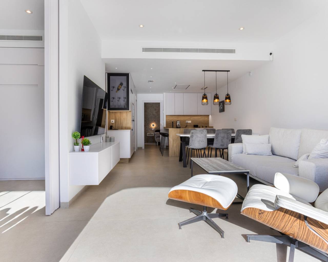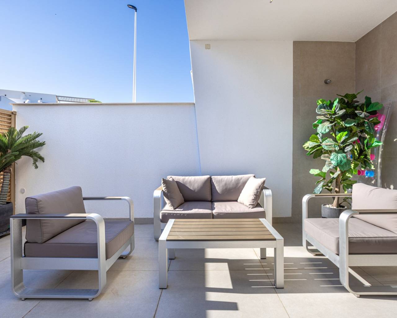 Descubra este hermoso apartamento en planta baja en una de las zonas más deseadas de San Pedro del Pinatar, a pocos minutos del mar y rodeado de todas las comodidades que necesita para una vida cómoda y tranquila o la escapada perfecta. Esta casa de 80 m² presume de un diseño funcional y moderno. Cuenta con tres dormitorios con armarios empotrados, dos baños y una cocina abierta que se integra a la perfección con el salón-comedor, creando un espacio amplio y luminoso, perfecto para reuniones familiares o con amigos. El tercer dormitorio es particularmente único: se accede a él a través de una mampara totalmente corredera que se transforma en una sala de estar adicional en segundos. El salón se abre directamente a una cómoda terraza privada, perfecta para disfrutar del desayuno al aire libre, relajarse con un libro o disfrutar de las cálidas tardes mediterráneas. Servicios que marcan la diferencia: Una piscina comunitaria rodeada de vegetación ofrece un refrescante descanso en los días más calurosos. El agua se calienta mediante paneles solares compartidos, lo que permite su uso durante todo el año. Parking privado en la terraza. Espacio de almacenamiento para espacio de almacenamiento adicional Calefacción por suelo radiante en baños Se ha instalado aire acondicionado (central) para garantizar comodidad durante todo el año. Se entrega amueblado y equipado con electrodomésticos, listo para vivir sin complicaciones. Ubicación ideal: A tan solo 6 minutos en coche de las playas del Mar Menor y del Mar Mediterráneo. A 3 minutos a pie de supermercados, tiendas, restaurantes y zonas recreativas. A 30 minutos del Aeropuerto Internacional de Murcia A 15 minutos de varios campos de golf La ubicación orientada al este proporciona una excelente ventilación y luz natural durante todo el día, manteniéndolo fresco en verano y cálido en invierno. Esta propiedad es perfecta como residencia principal, segunda residencia o inversión para alquiler vacacional. ¡No pierdas la oportunidad de vivir junto al mar y disfrutar de todas las comodidades!